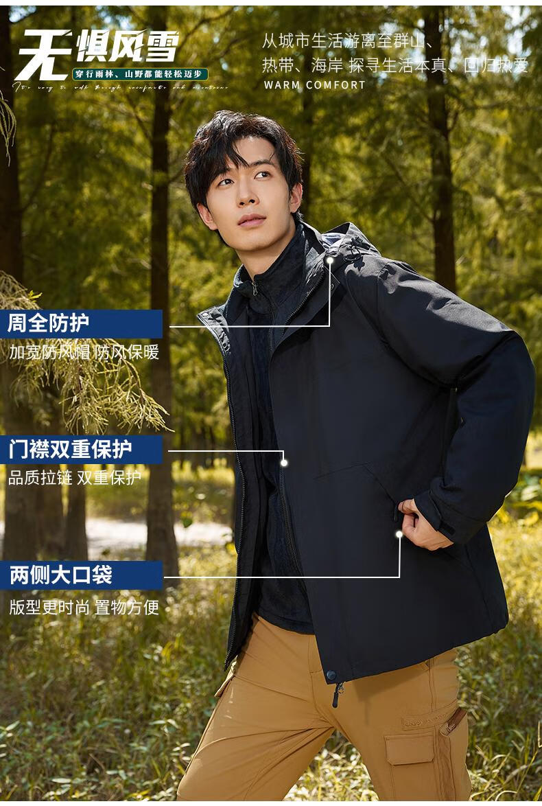 奥义驰冲锋衣可拆卸防风水三合一银狐羽绒保暖两件套户外工作服定制logo 深灰色 4XL