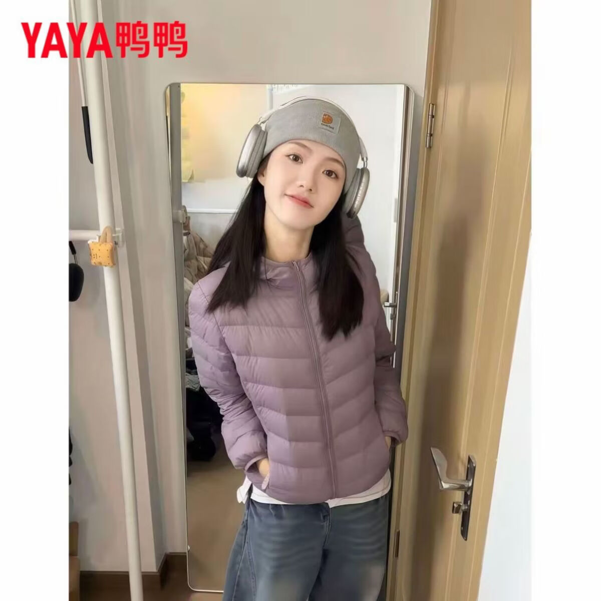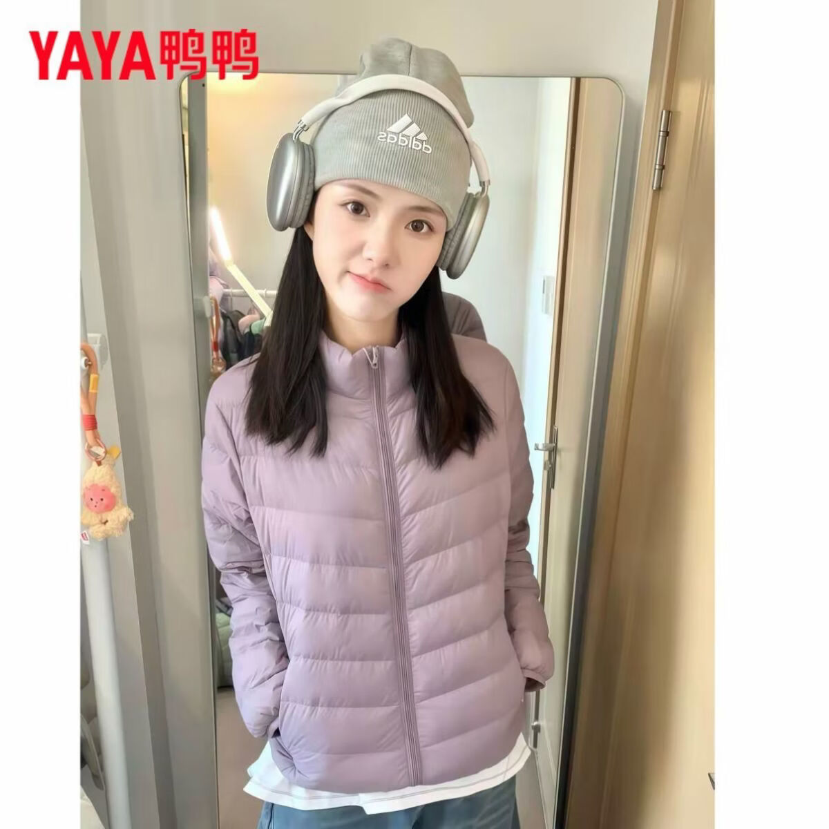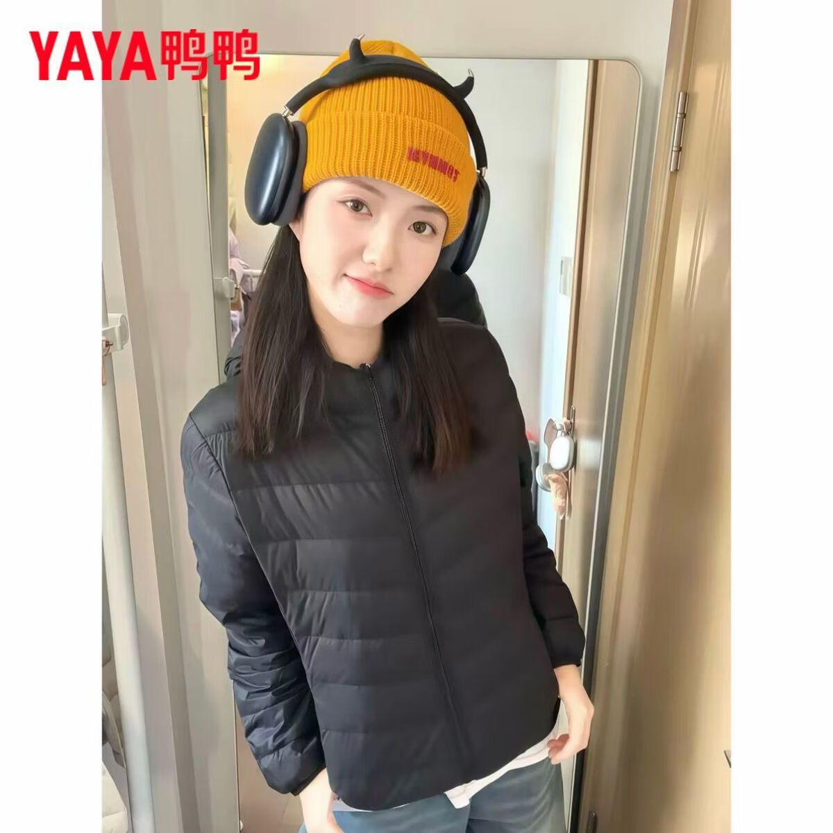 鸭鸭(YAYA)轻薄排骨羽绒服女短款秋冬新款保暖百搭时尚纯色立领外套 黄色(立领) S 80-90斤