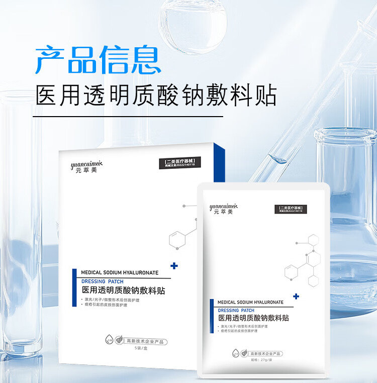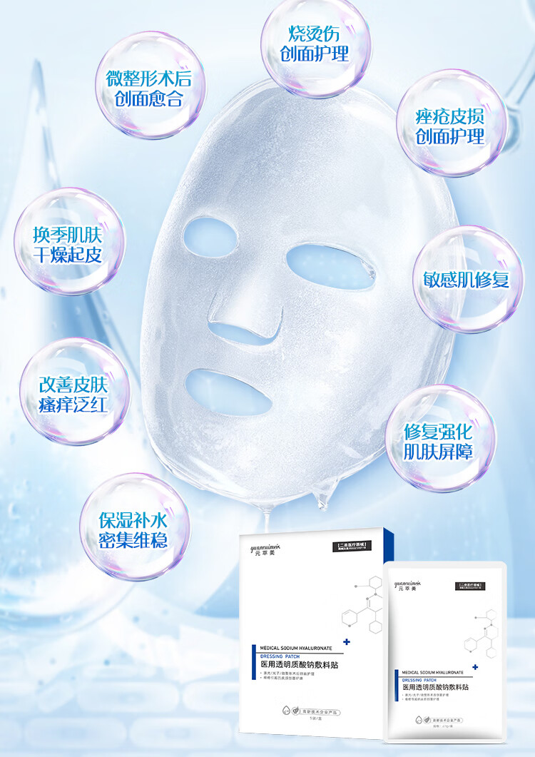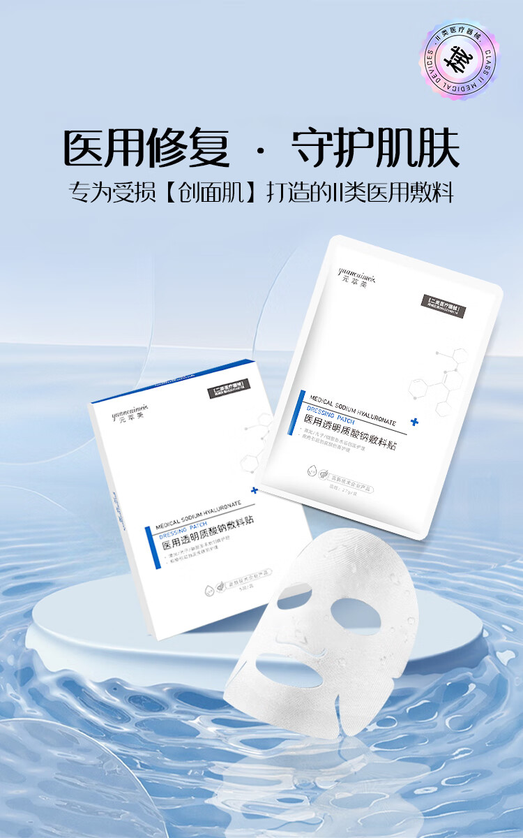 元萃美医用面膜修复补水术后修复肌肤屏障二类械字号敏感肌晒伤修复 术后补水修复5盒-25片