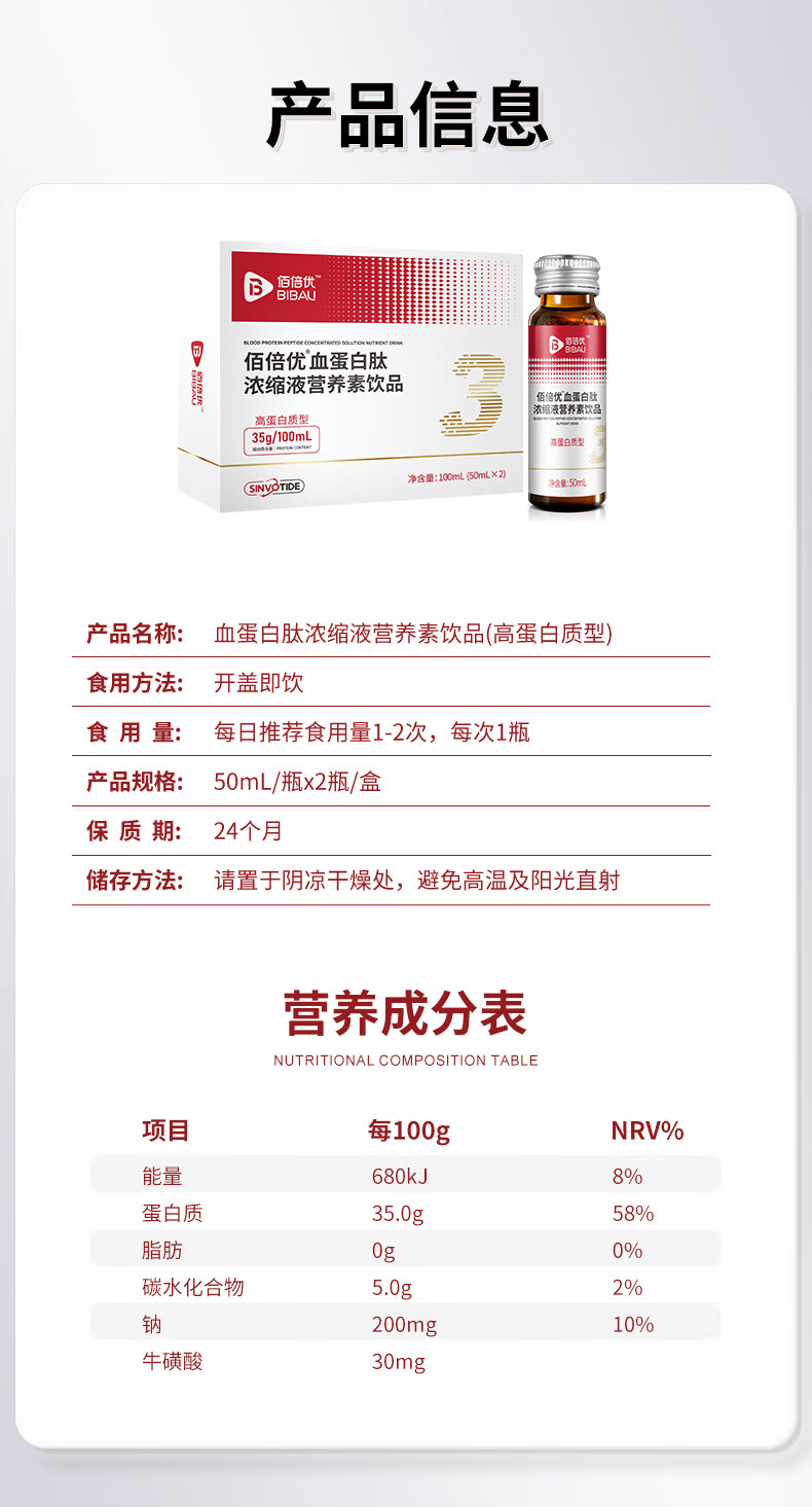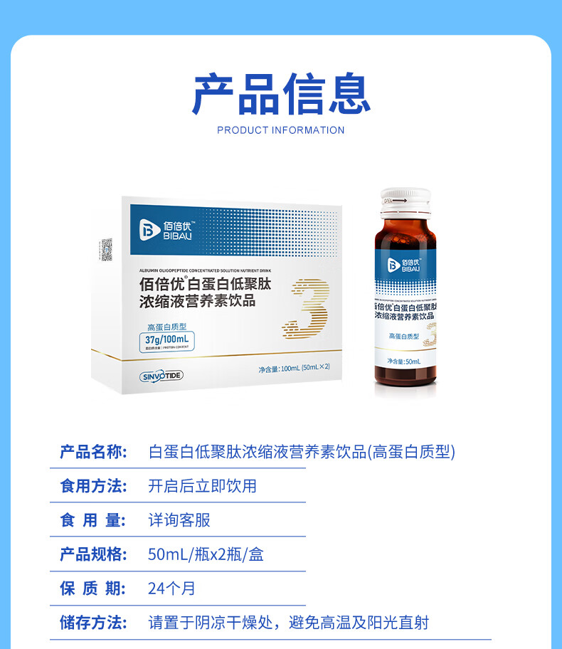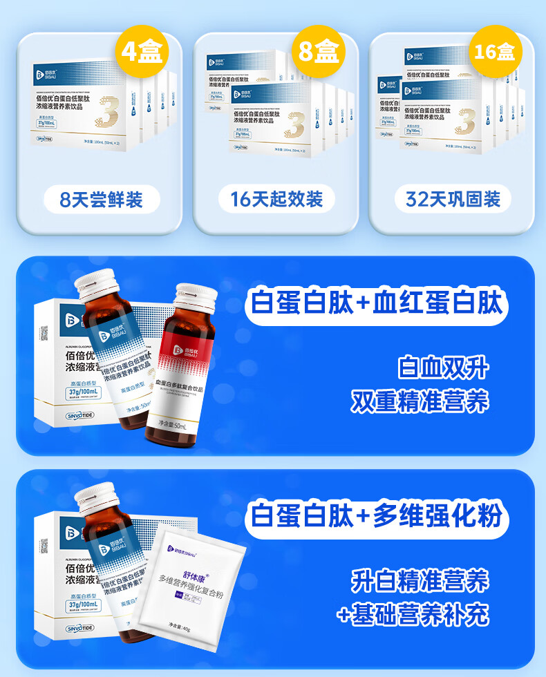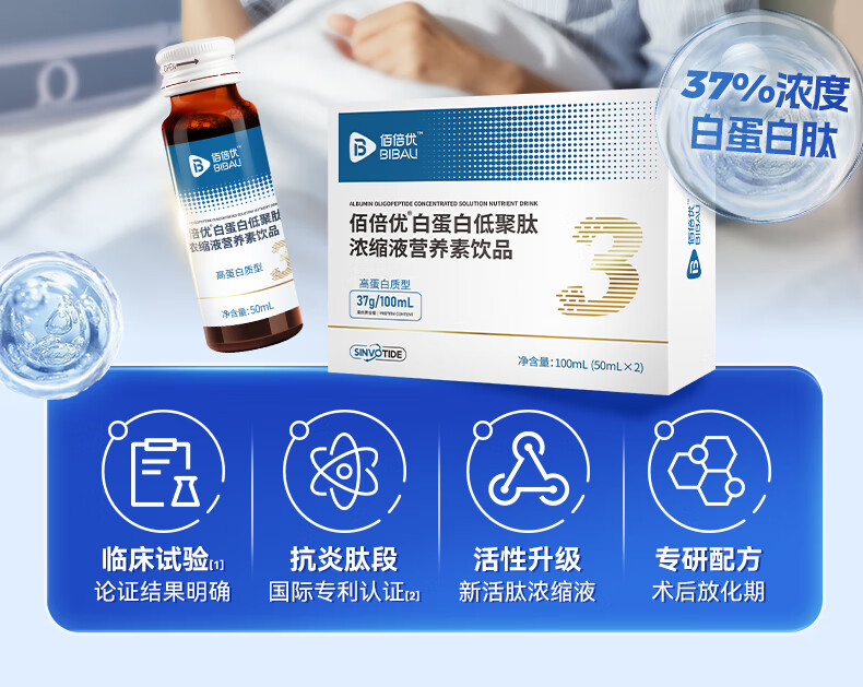 佰倍优【院内同款】37%白蛋白肽口服液术前后放化疗中老年营养送礼 【白蛋白低聚肽浓缩液】 2瓶*4盒