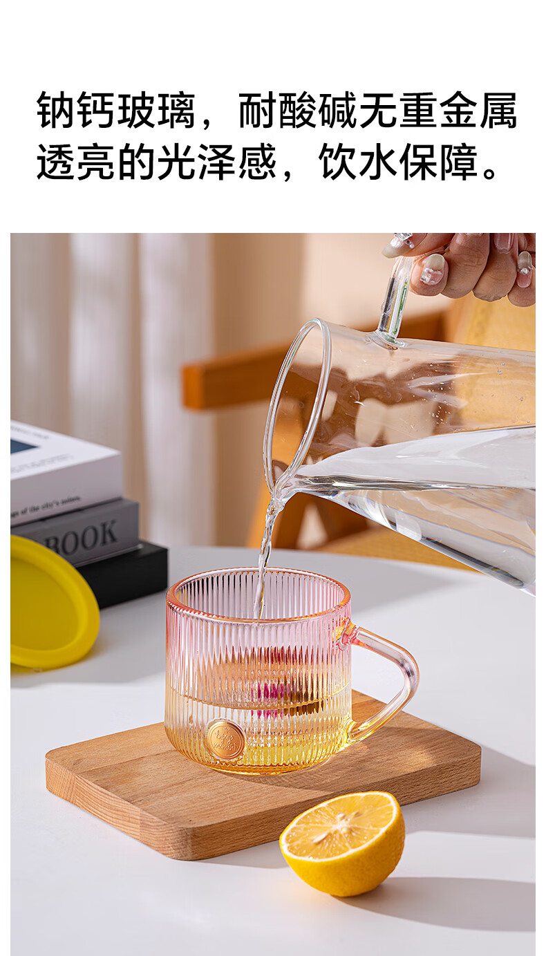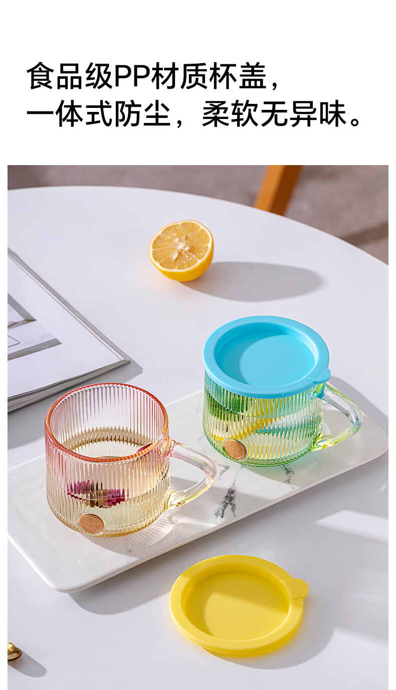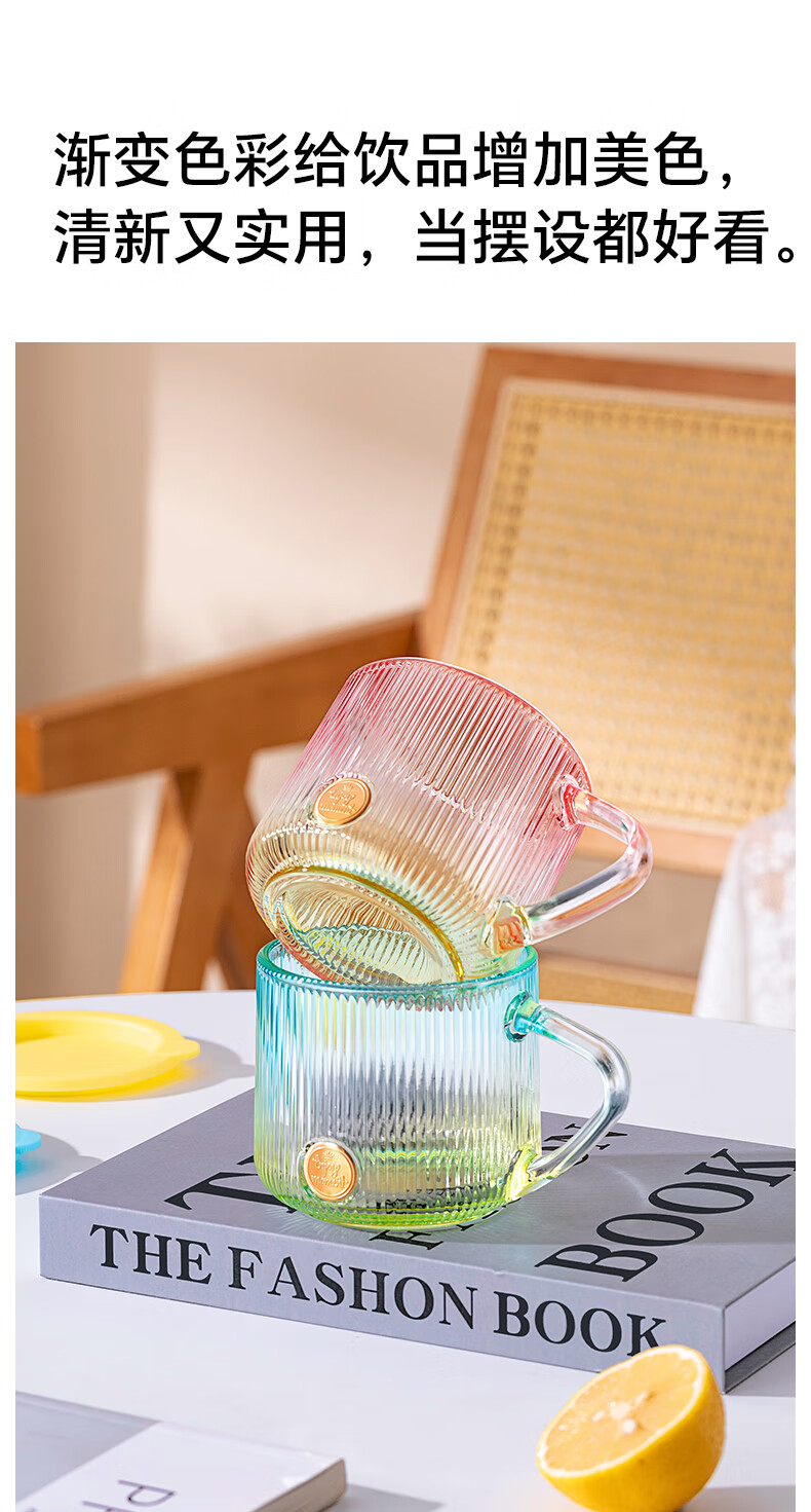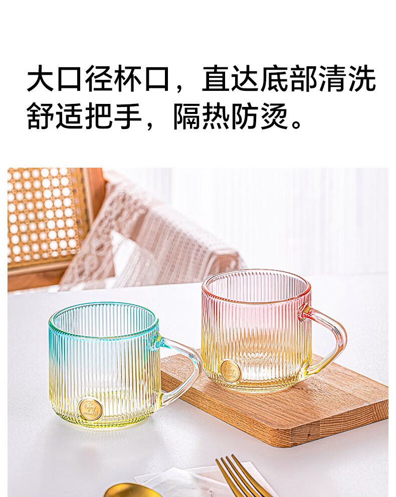 LOVWISHins风竖纹玻璃杯带把水杯家用饮料杯高颜值马克杯高级感咖啡杯子 乐映竖纹把杯【混色】350ml*2