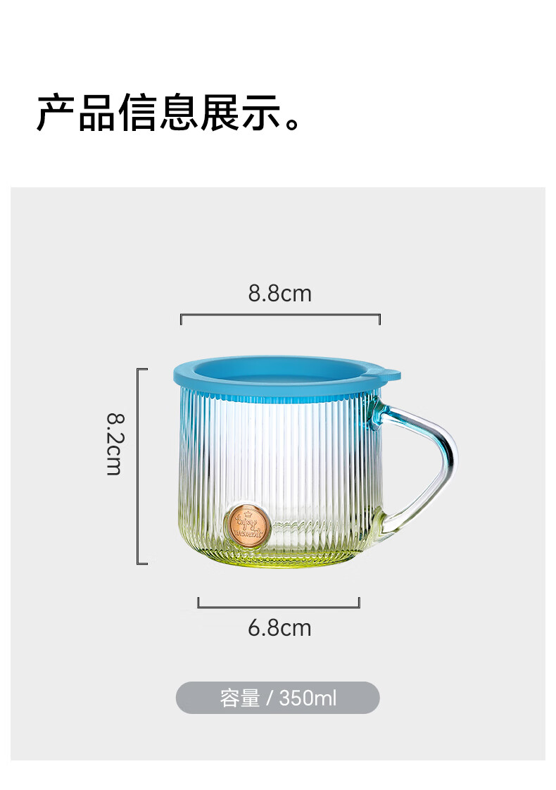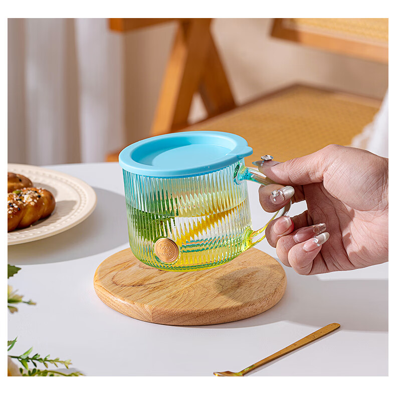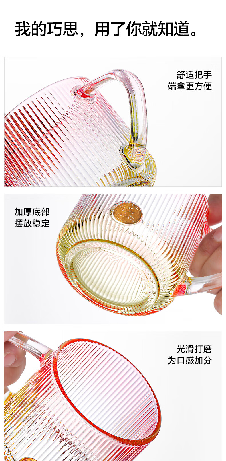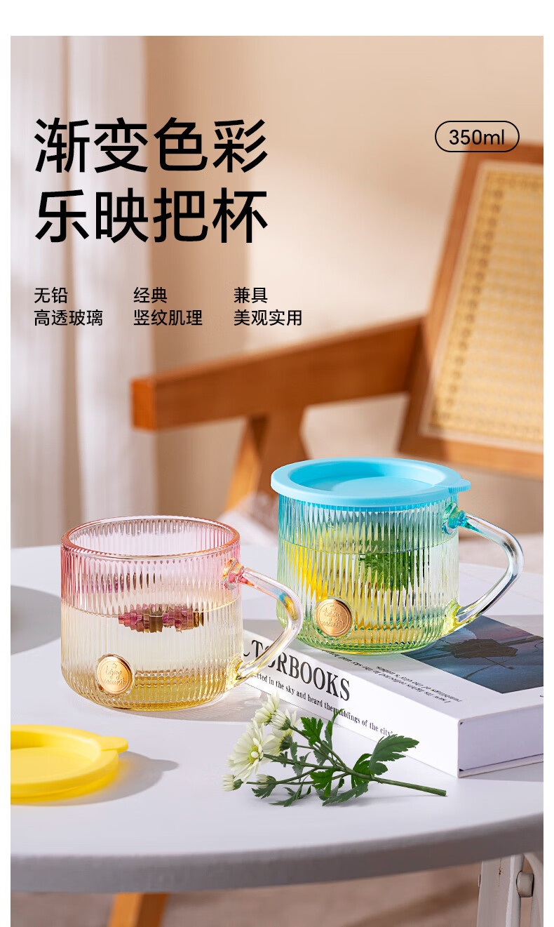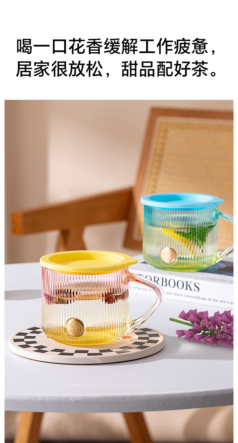 LOVWISHins风竖纹玻璃杯带把水杯家用饮料杯高颜值马克杯高级感咖啡杯子 乐映竖纹把杯【混色】350ml*2