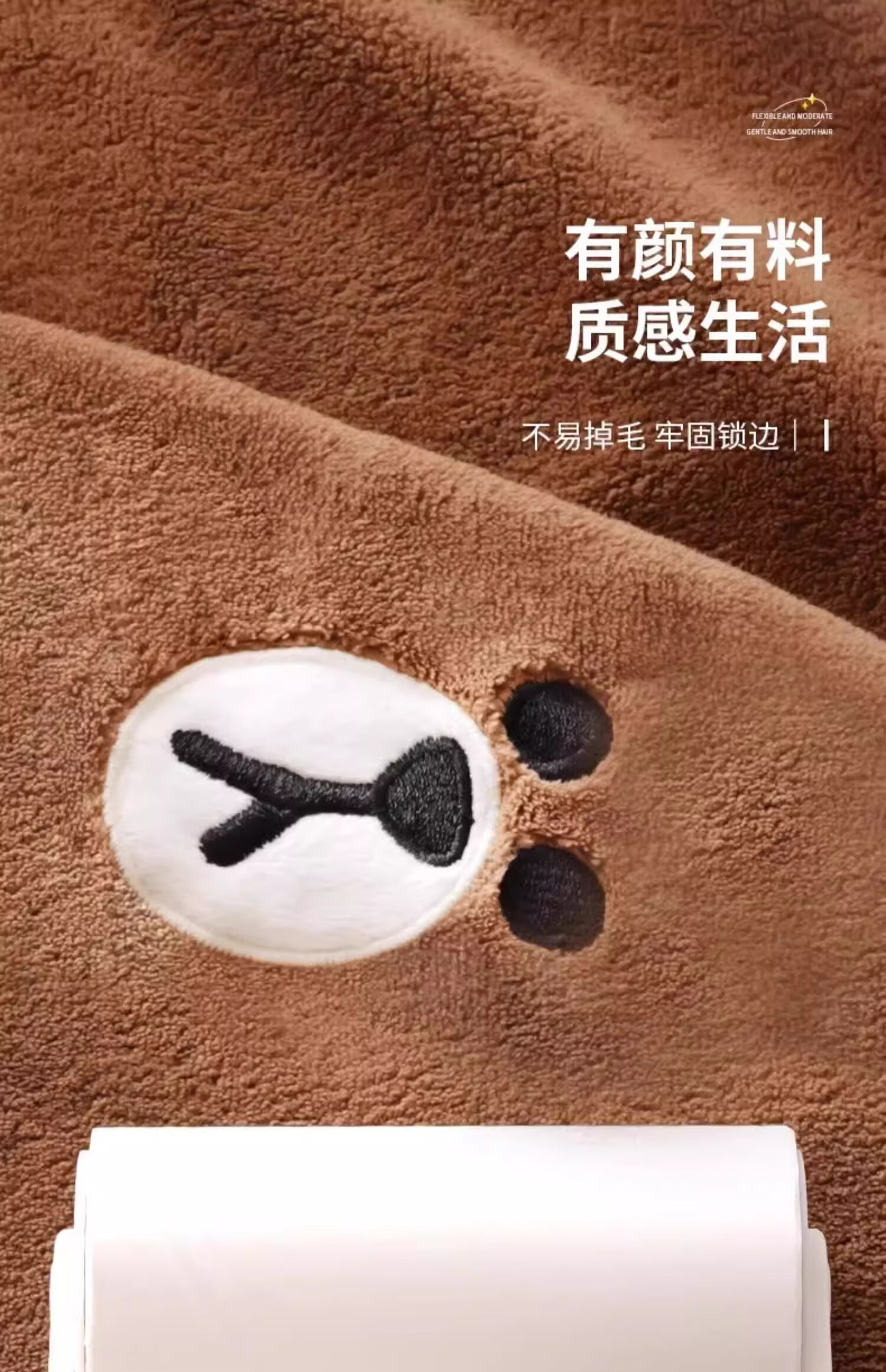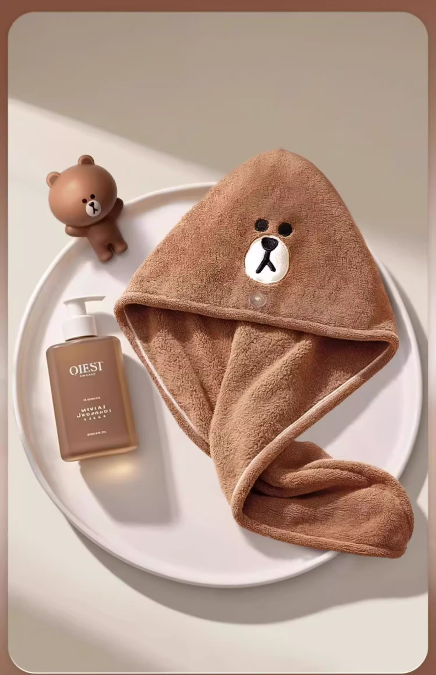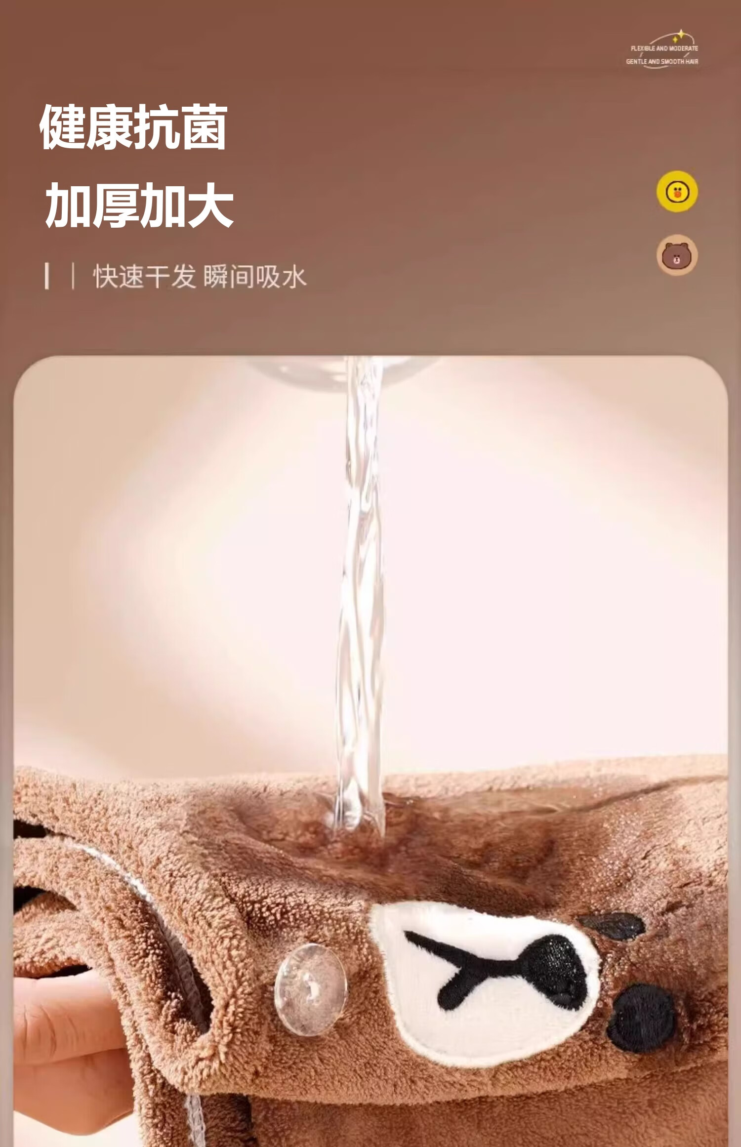Creative art干发巾包头巾浴帽洗澡防水干发帽女超强吸水加厚加大毛巾浴巾发箍 布朗熊干发帽【亲肤吸水】