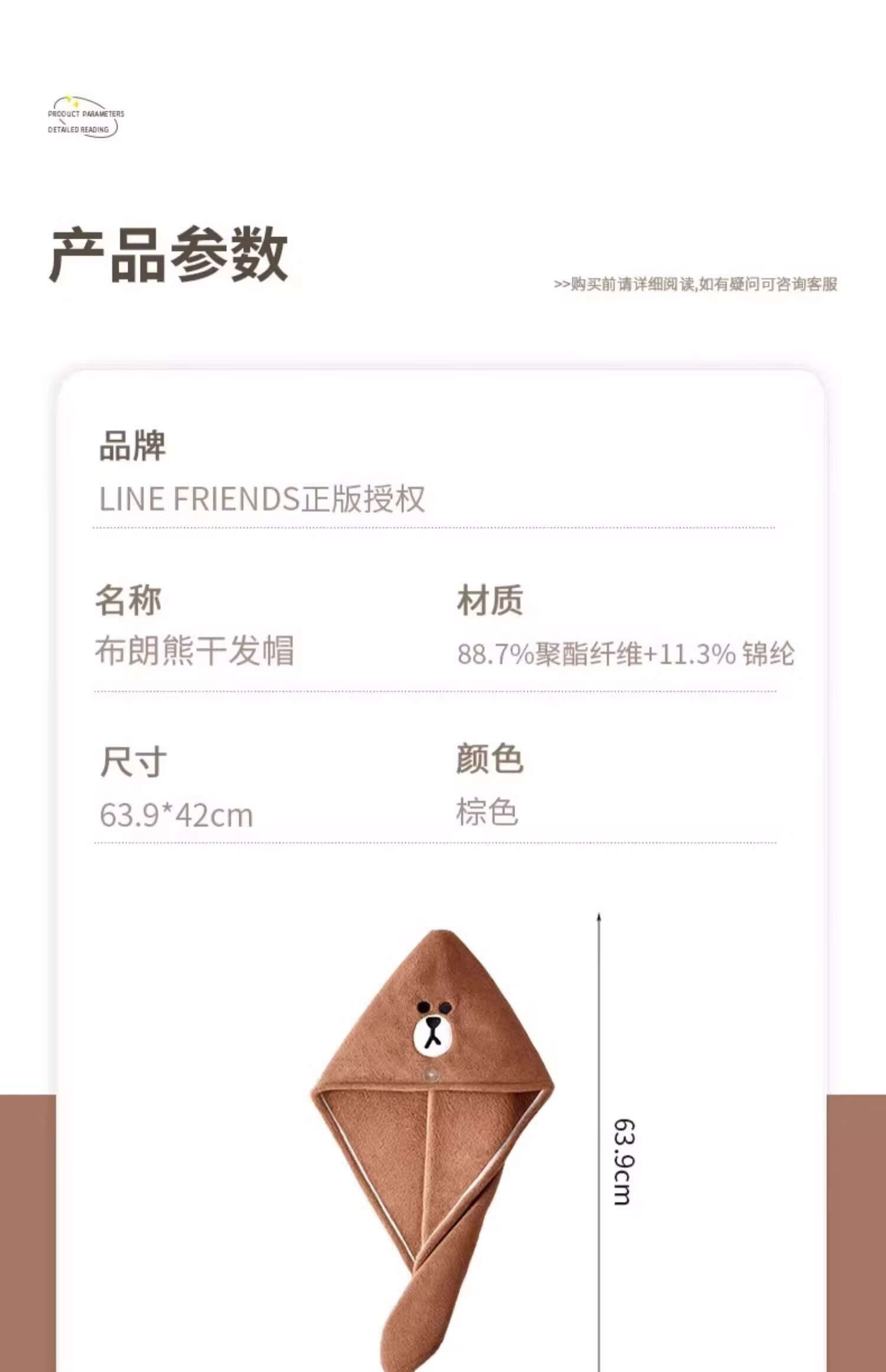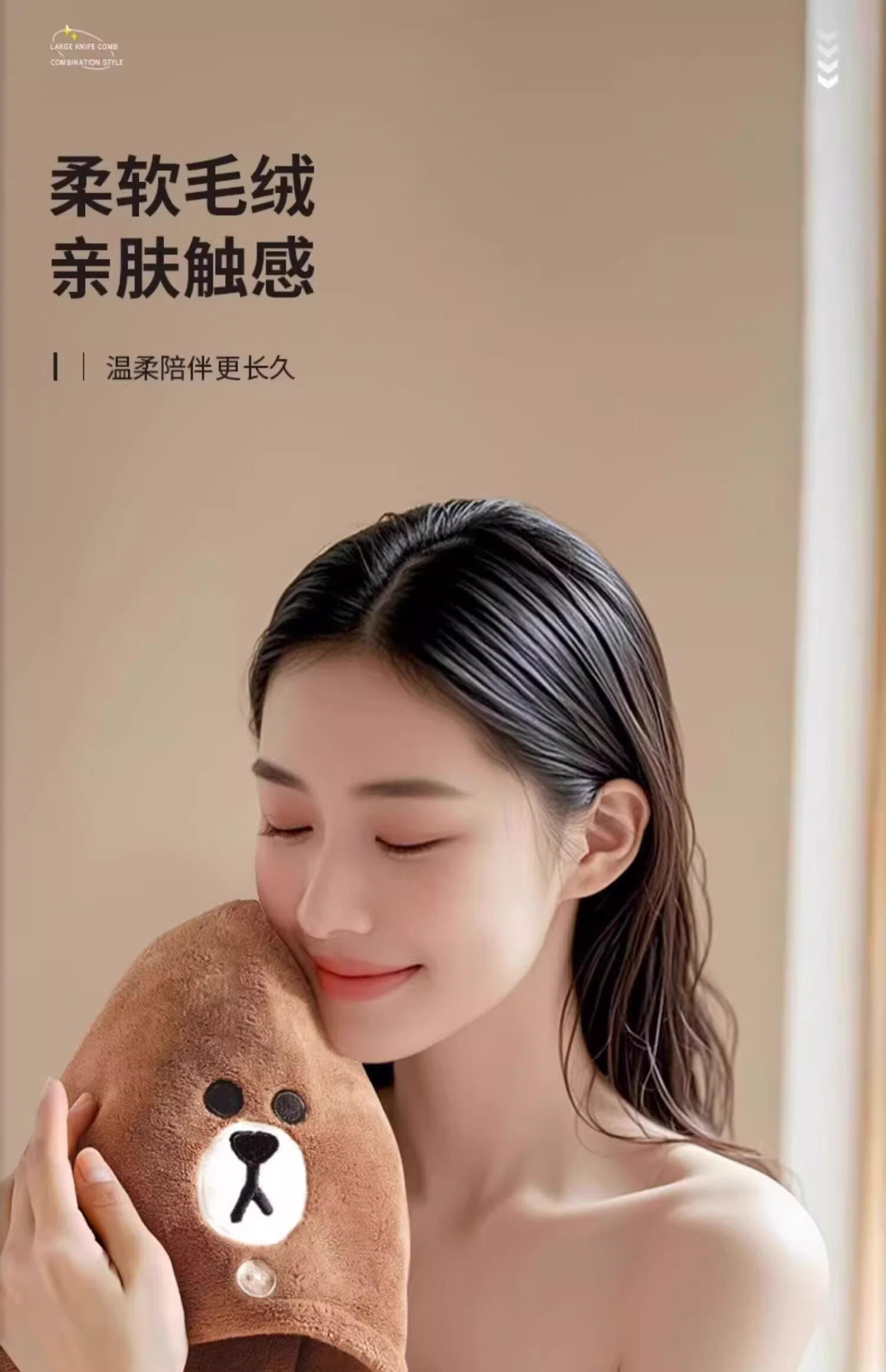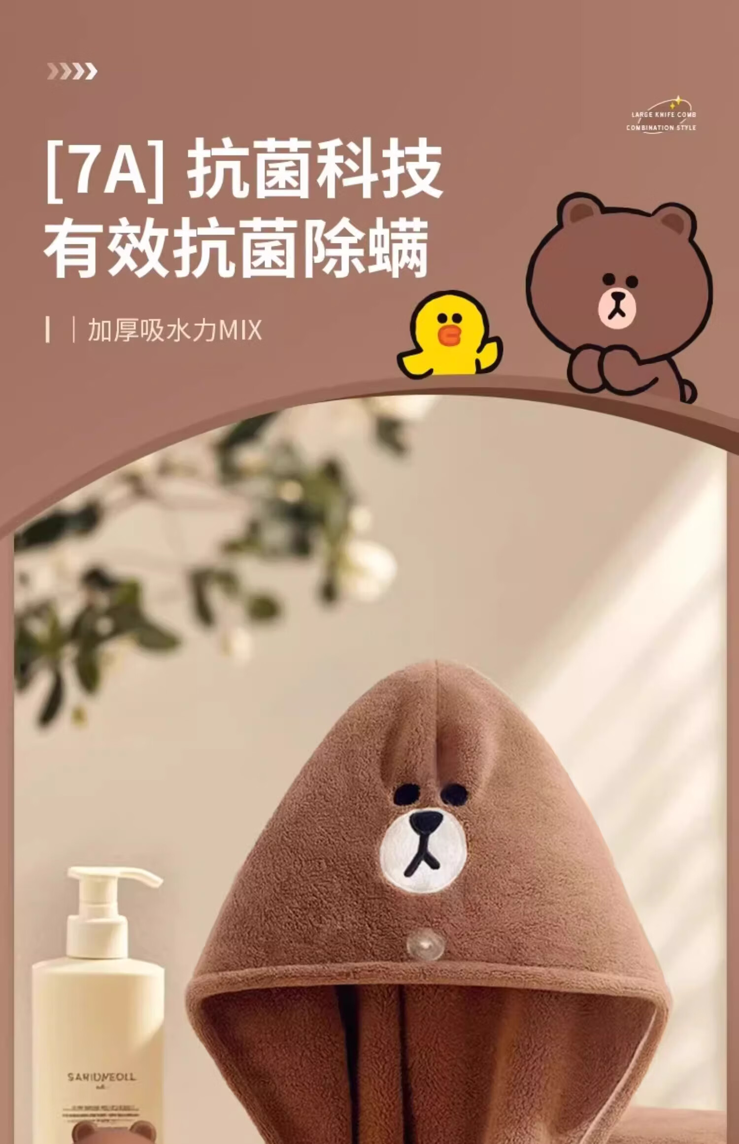 Creative art干发巾包头巾浴帽洗澡防水干发帽女超强吸水加厚加大毛巾浴巾发箍 布朗熊干发帽【亲肤吸水】