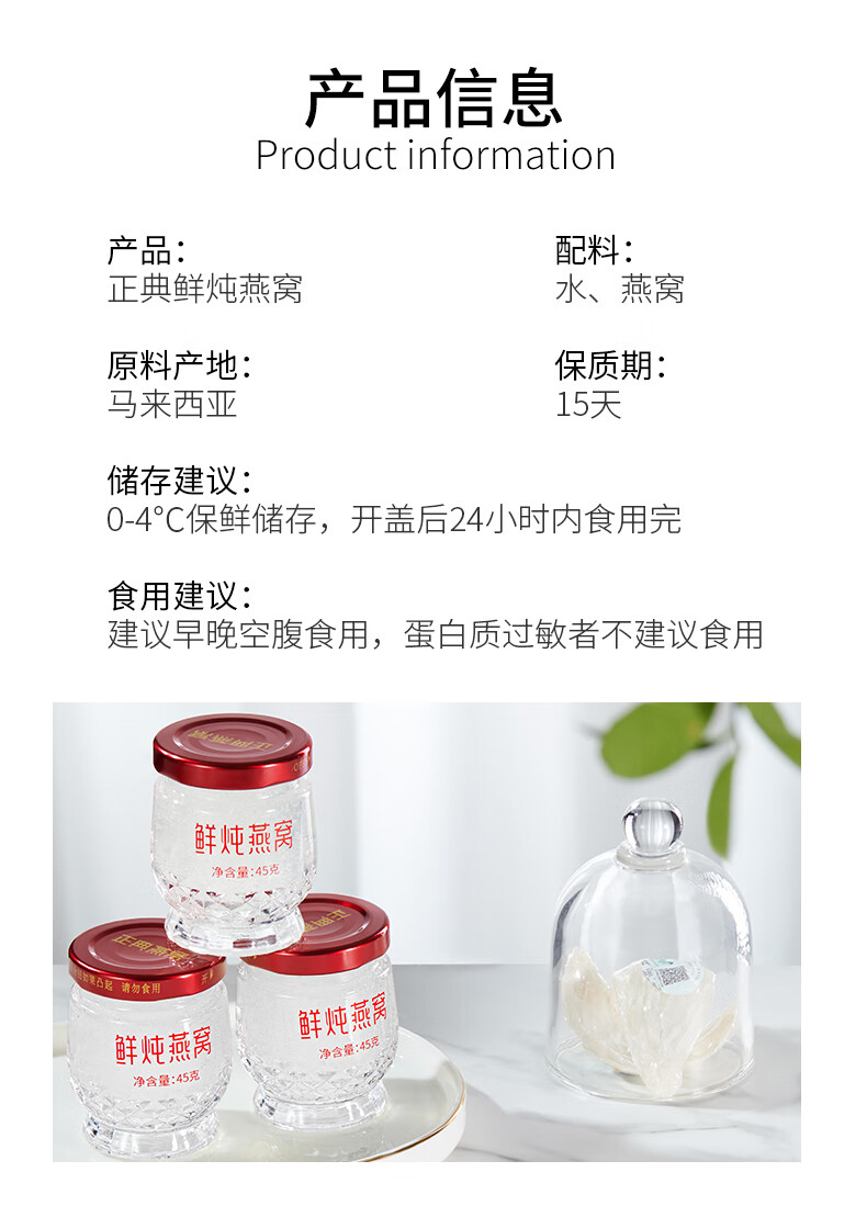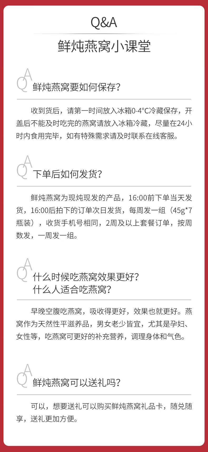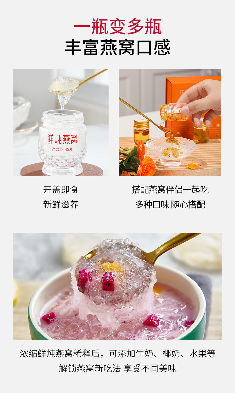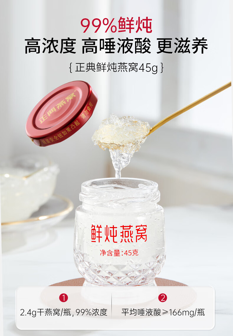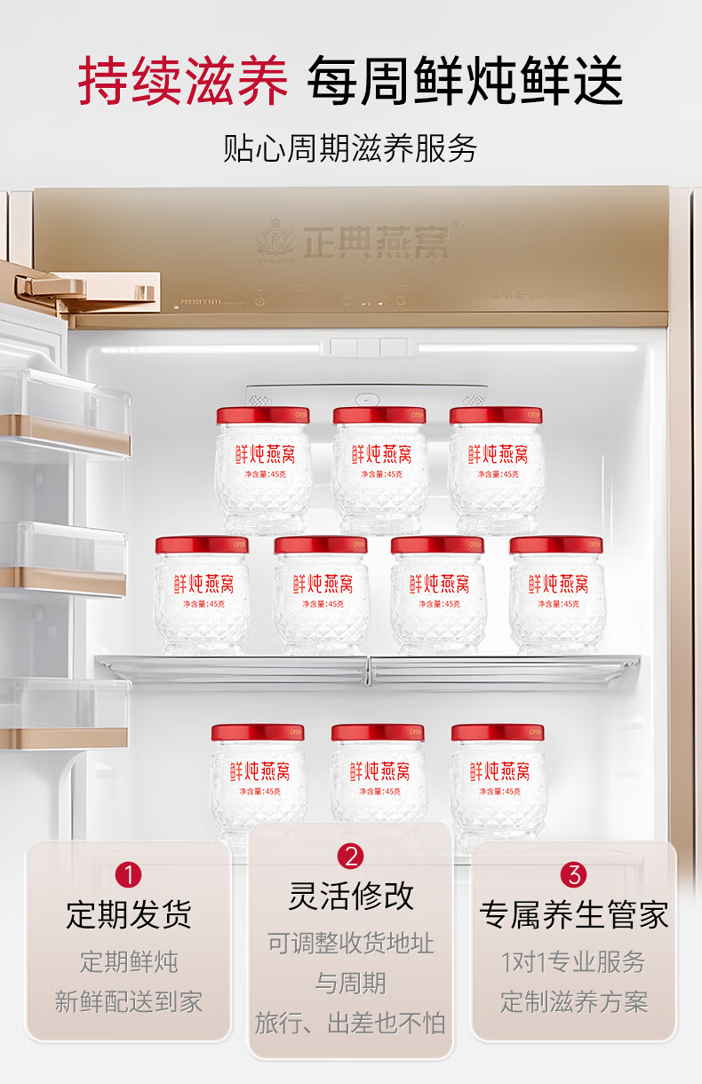 正典燕窝鲜炖燕窝无糖即食孕妇老人滋补品礼品【新年礼物】 (周套餐)99%浓度鲜炖45g*7瓶