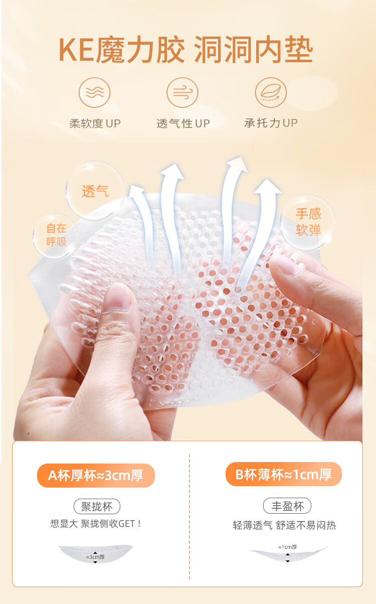 夏.娃.之.秀性感内衣聚拢防下垂收副乳上托洞洞杯小胸显大蕾丝文胸罩 湘妃粉 85B /38B(薄模杯约1CM)