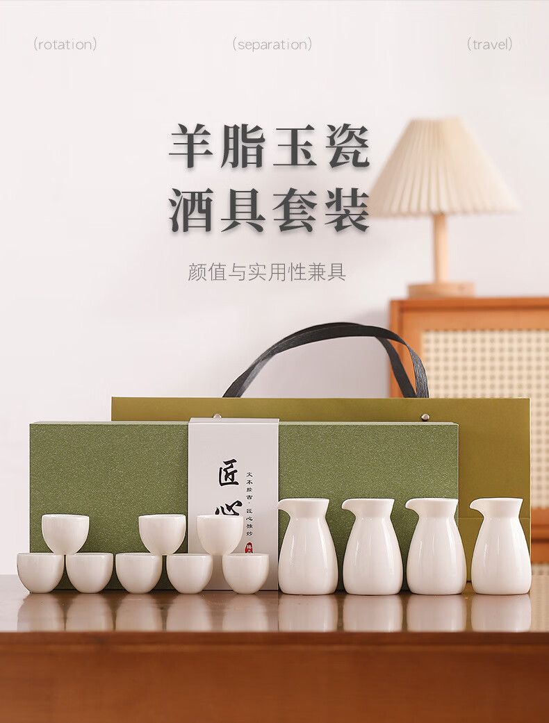胖东来同款陶瓷酒具白酒杯套装分酒器中式礼盒古风家用白酒分酒壶 3壶6杯(万里山河)