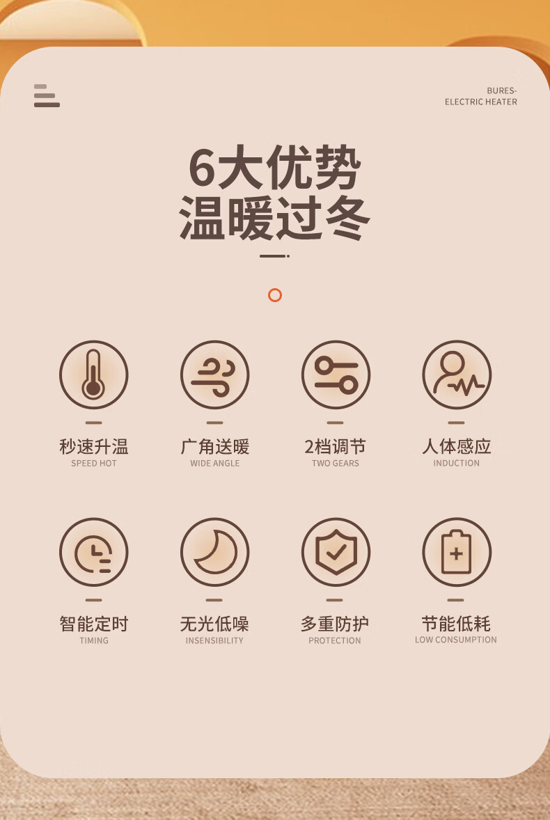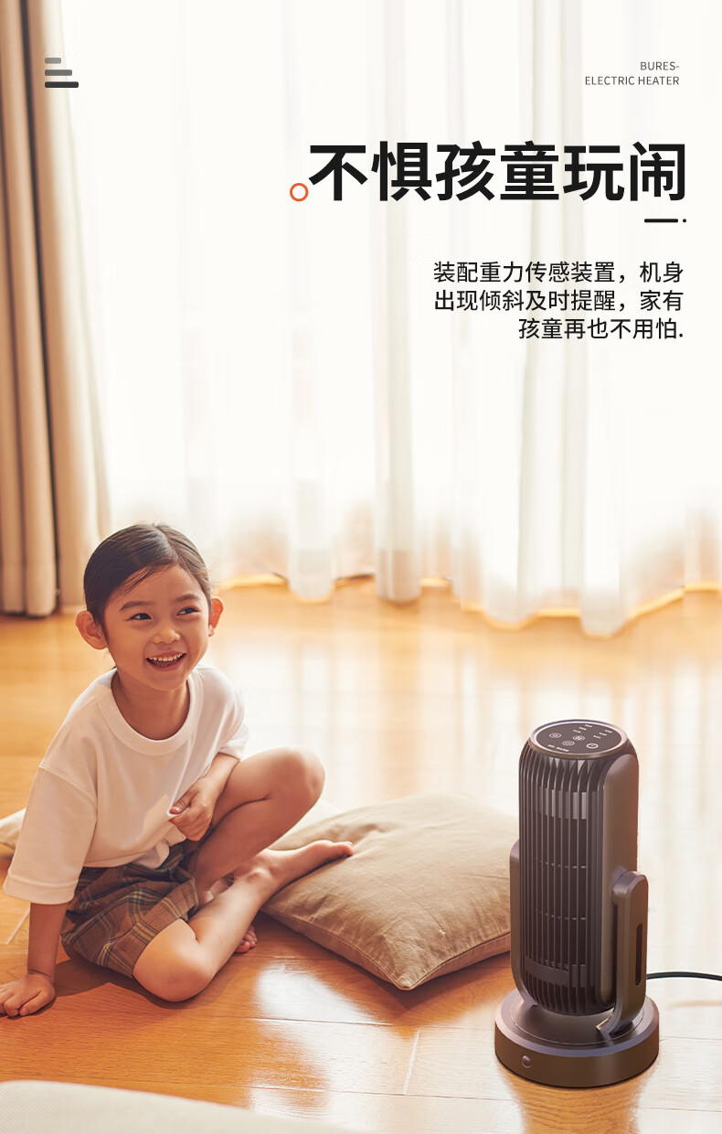 bures百而思取暖器暖风机石墨烯电热家用暖气大面积30平方全屋速热神器婴儿浴室客厅办公室内热风升温 【智能旗舰版】3秒速热 人走机停
