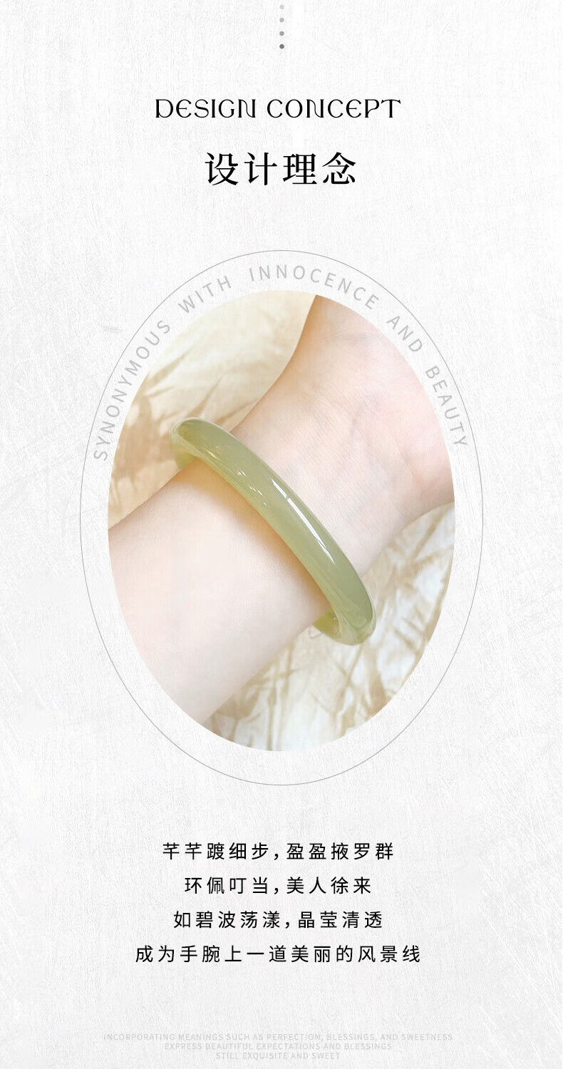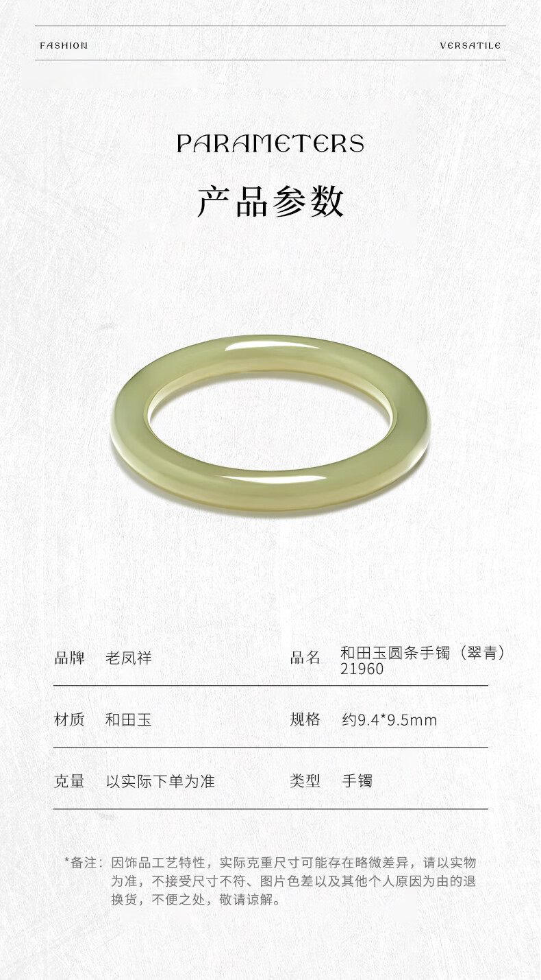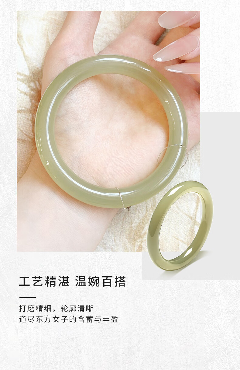 老凤祥翠青色和田玉圆条手镯平安镯玉镯子送女友老婆新年生日礼物 和田玉圆条翠青手镯(#56-58)