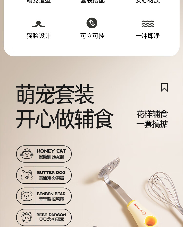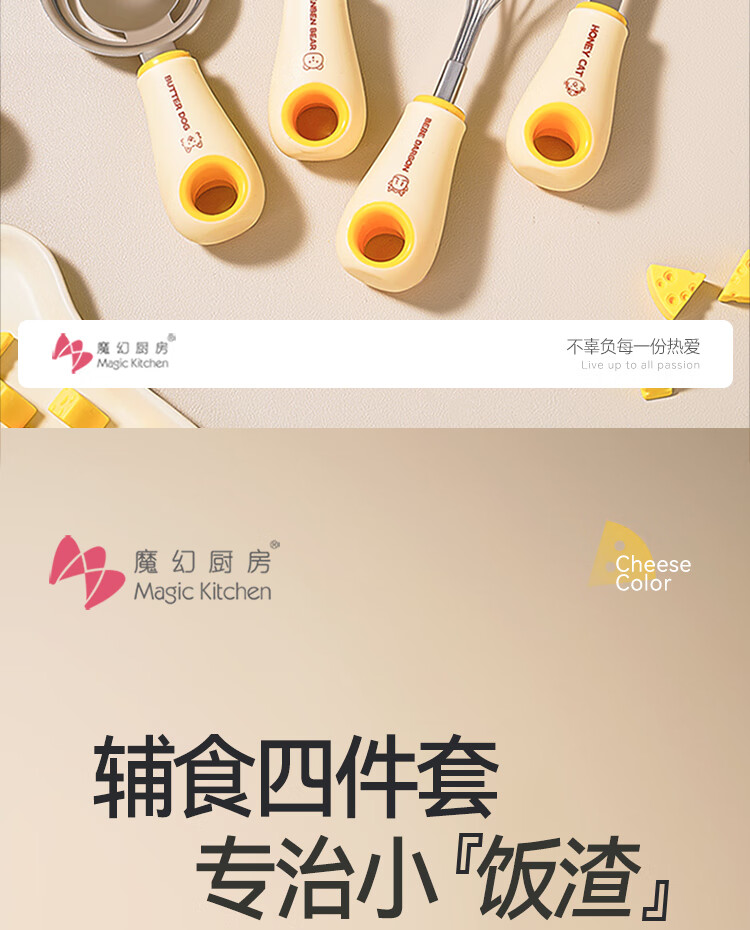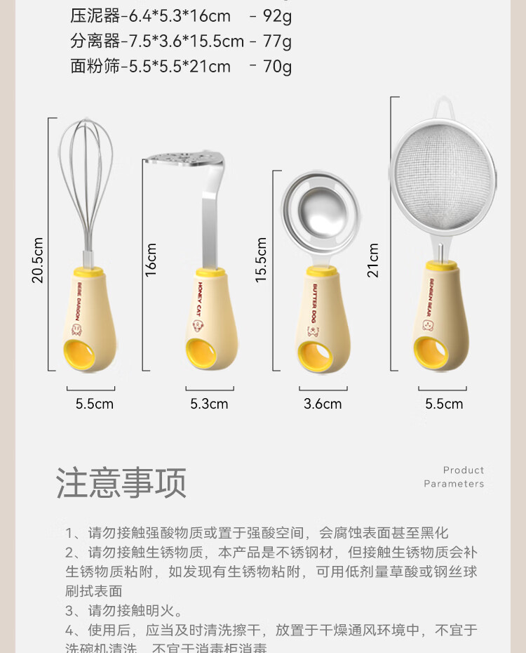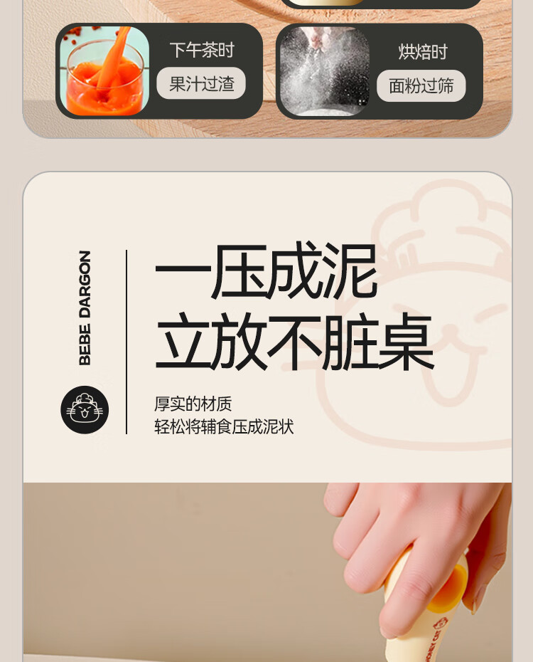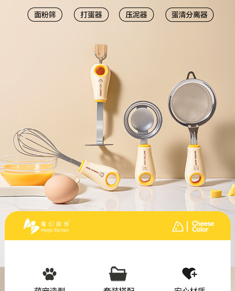 魔幻厨房辅食工具全套漏勺宝宝婴儿过滤网筛豆浆漏勺面粉筛压泥器分离器 辅食四件套|滤网+压泥+分离+打蛋