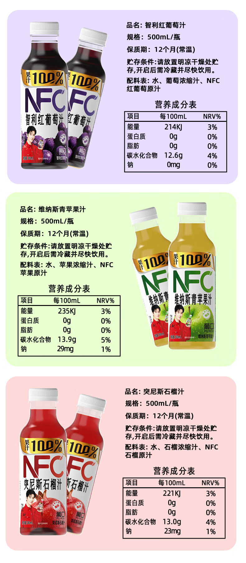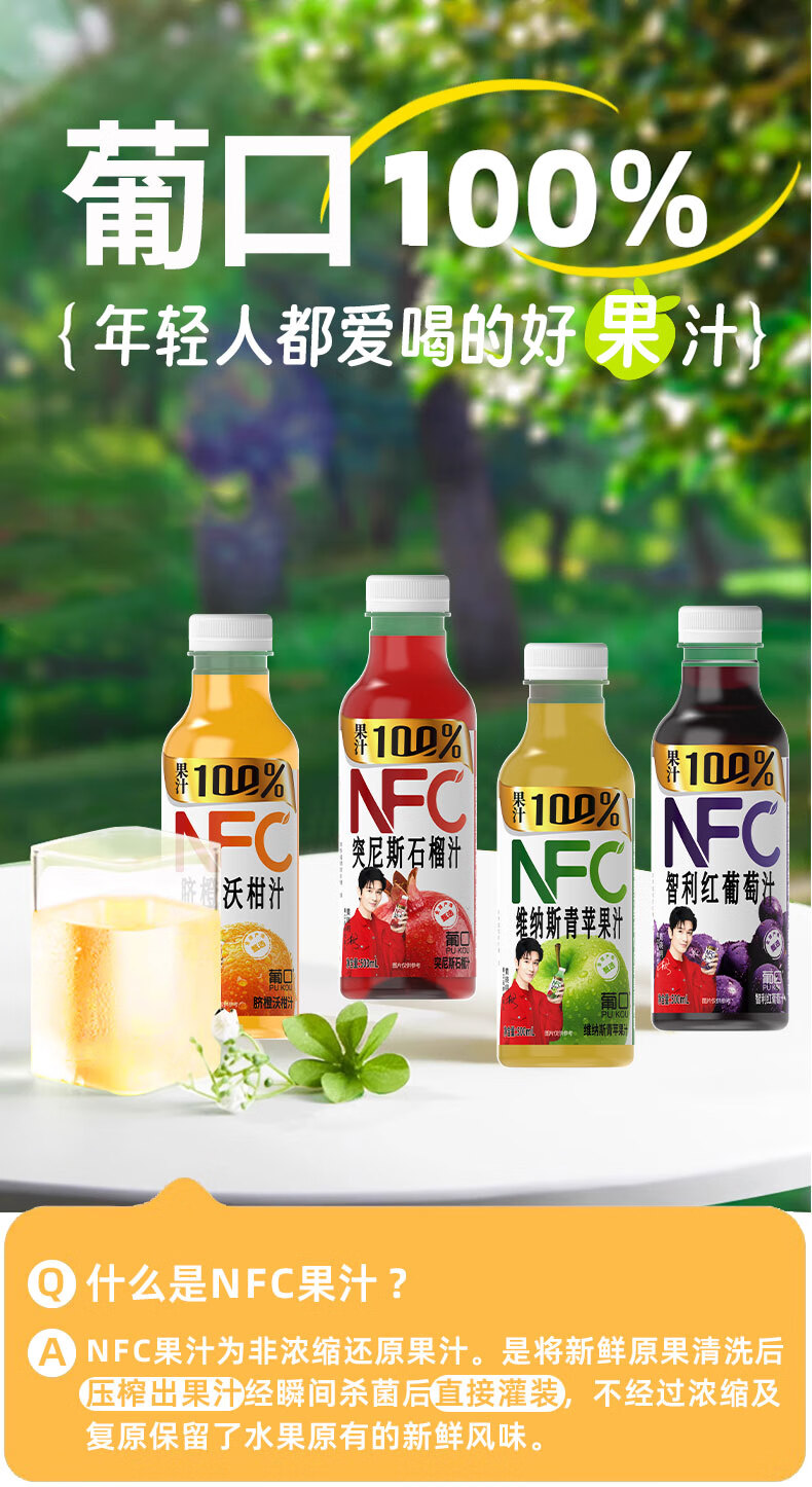 葡口100%果汁青苹果沃柑石榴红葡萄汁500ml*15瓶/箱 椰子水420ml*15瓶 现货速发破损包赔