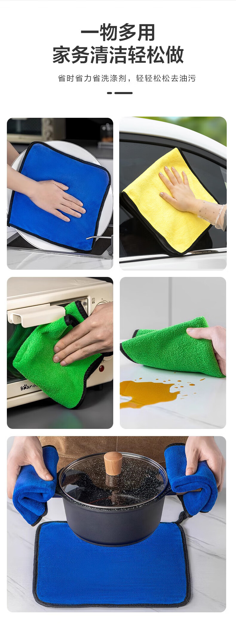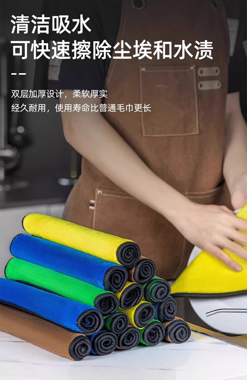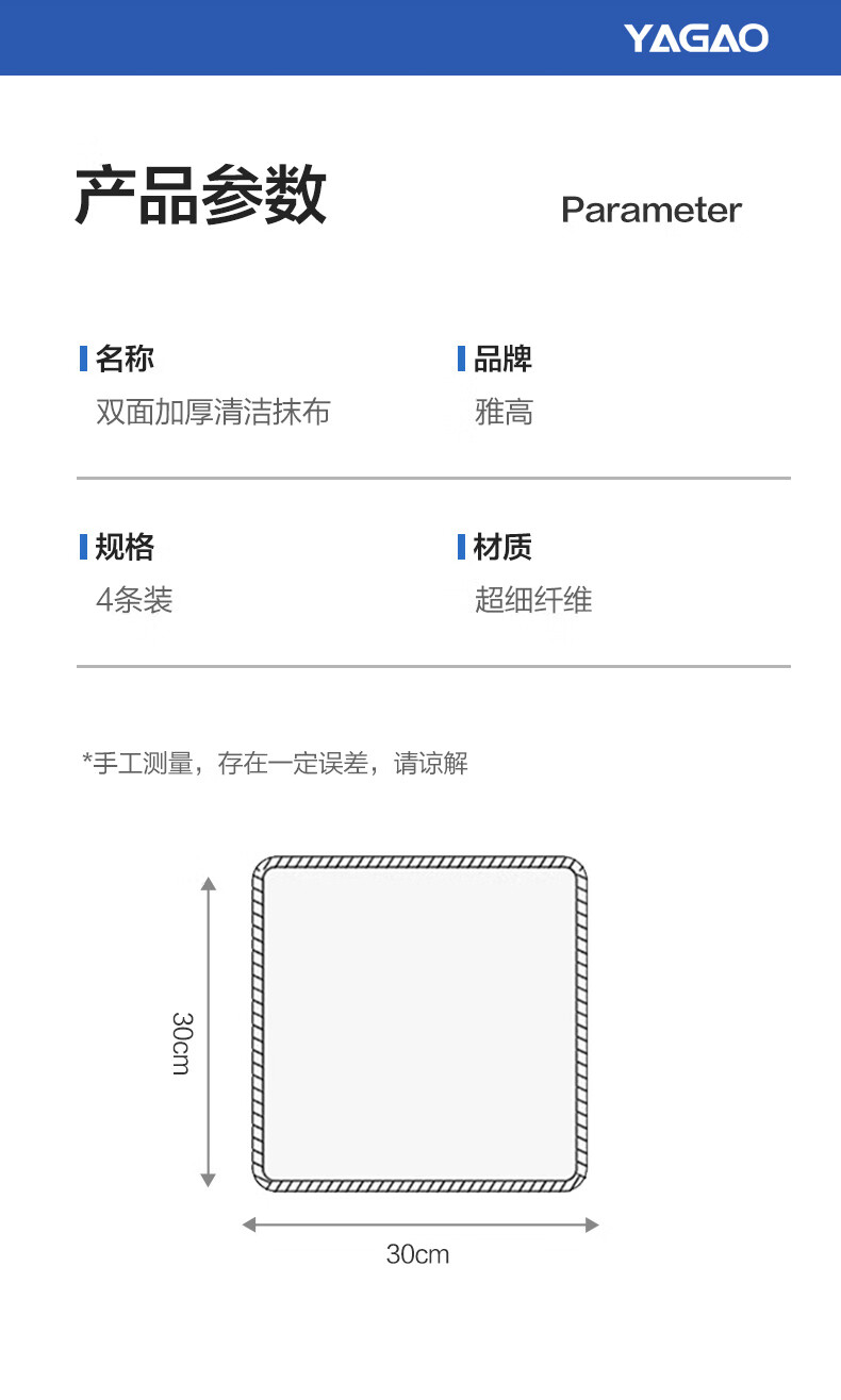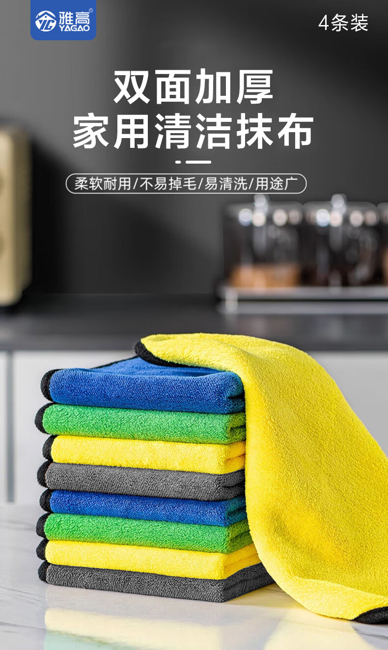 雅高抹布30*30cm4条装涤棉百洁布大号擦车擦玻璃毛巾