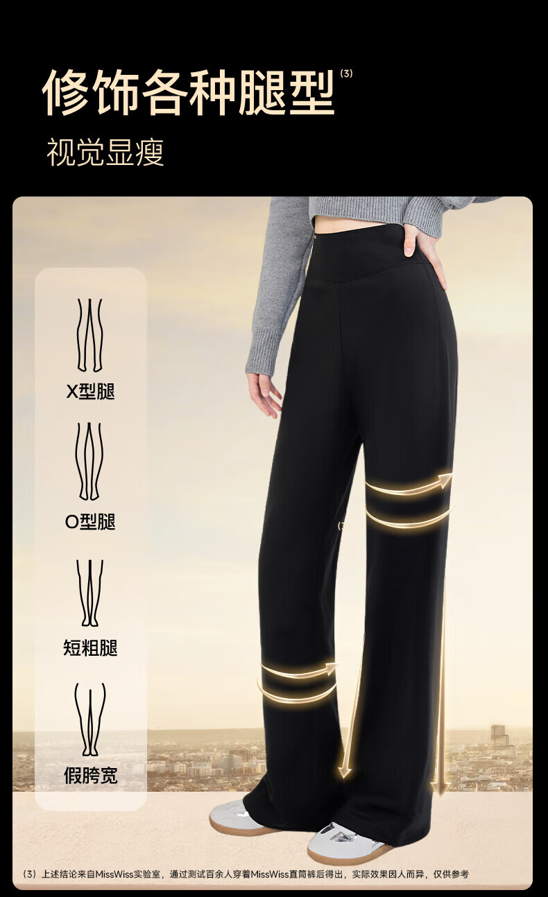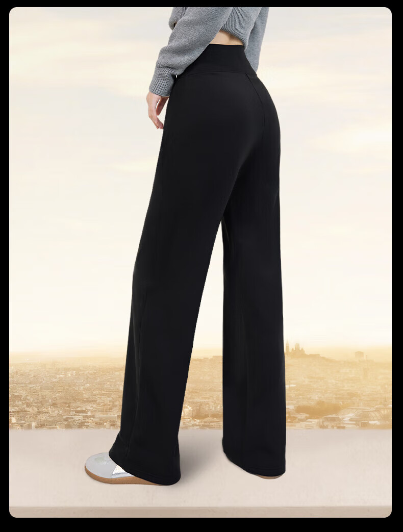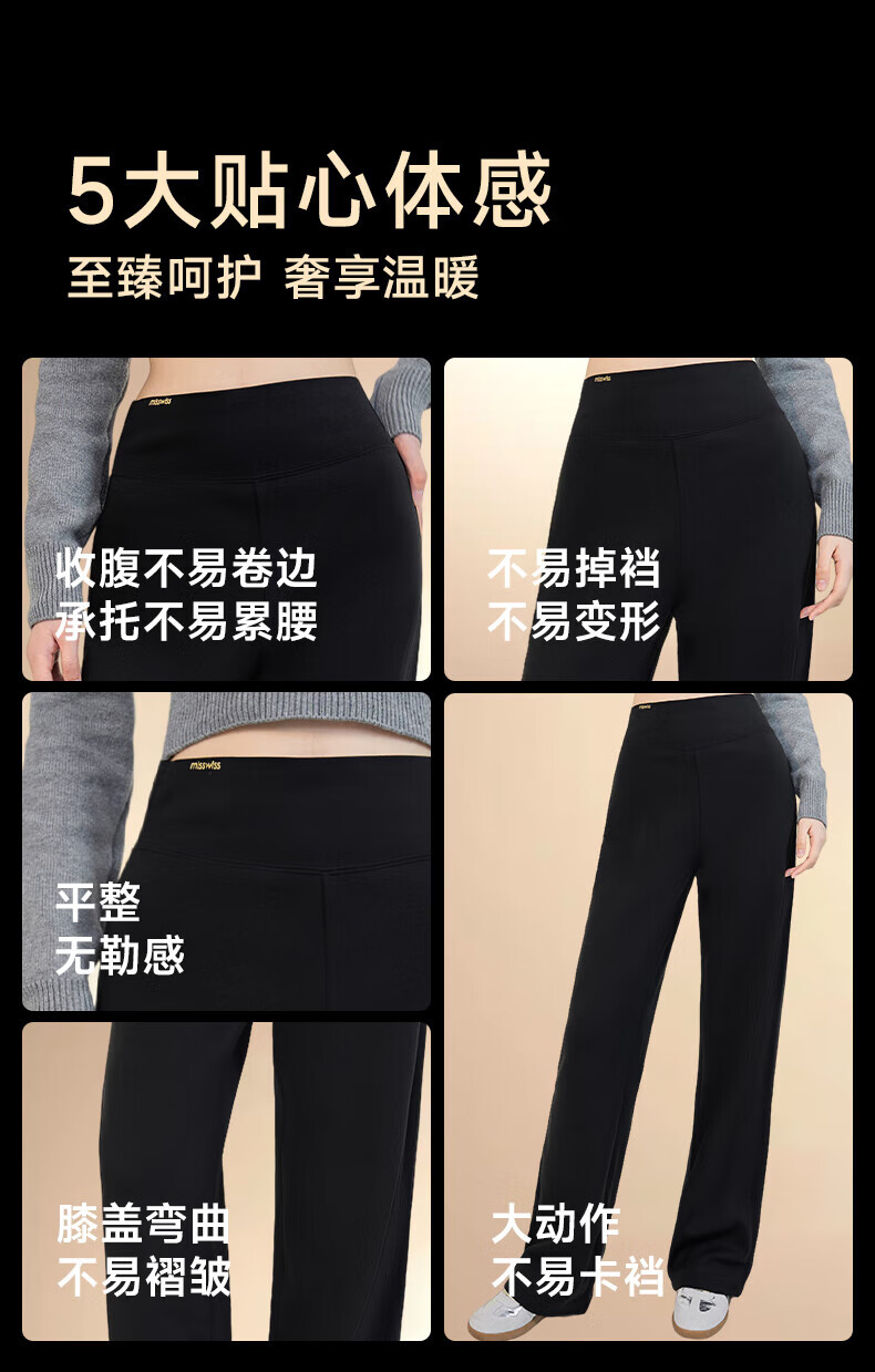 MissWiss收腹直筒裤子女秋冬款加绒长裤百搭显瘦小个子保暖休闲裤 女神黑【常规版】加绒款 S