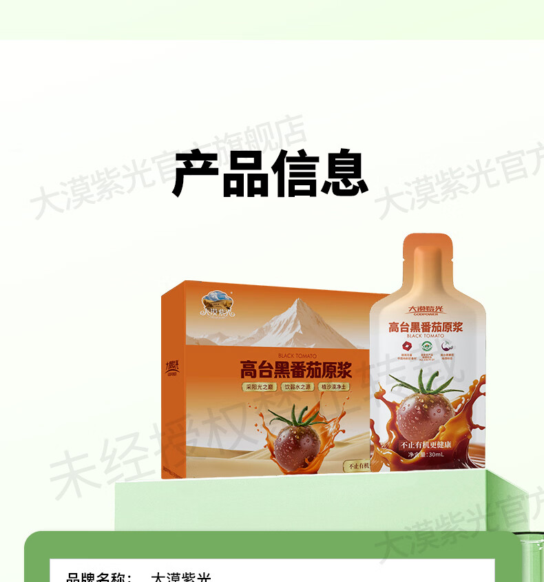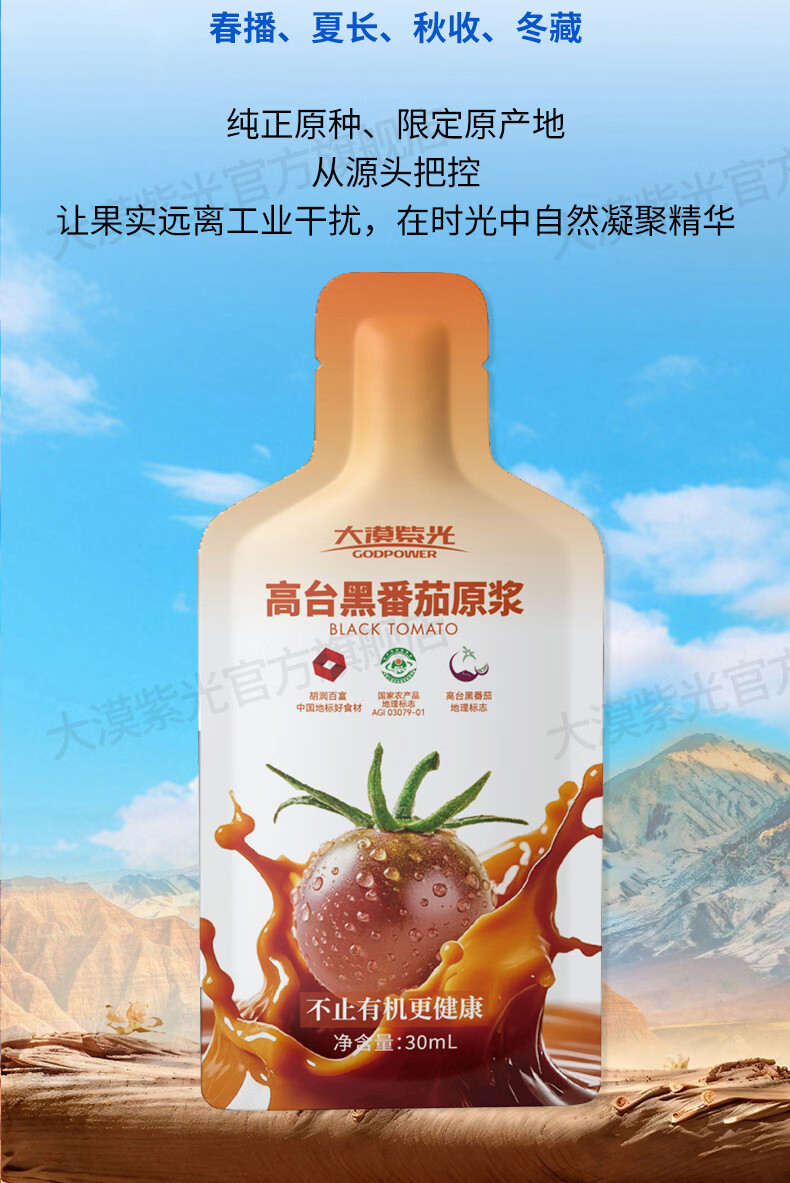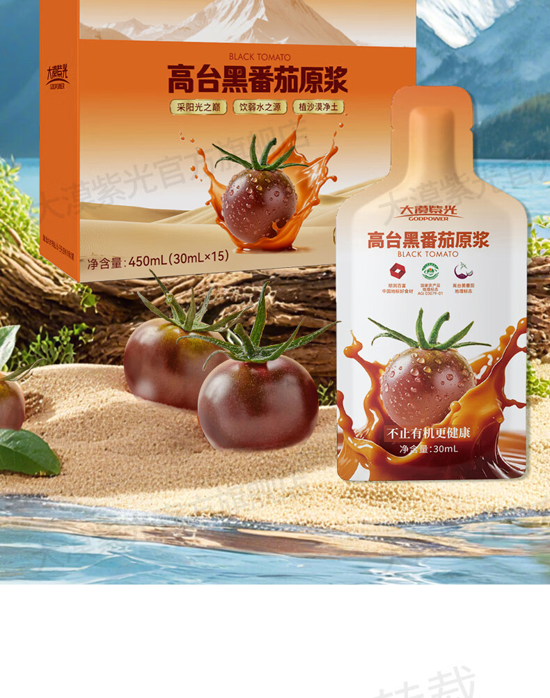 大漠紫光沙漠100%黑番茄原浆 含原花青素纯水果汁饮品饮料30ml*15袋 【送礼复购推荐】黑番茄原浆2大盒+送5袋共35袋