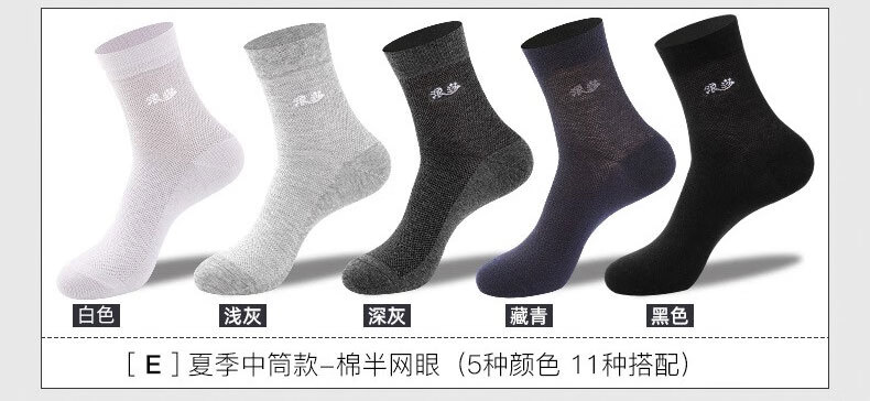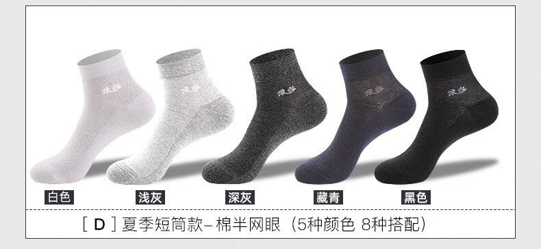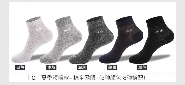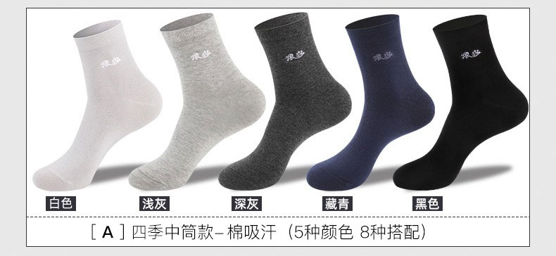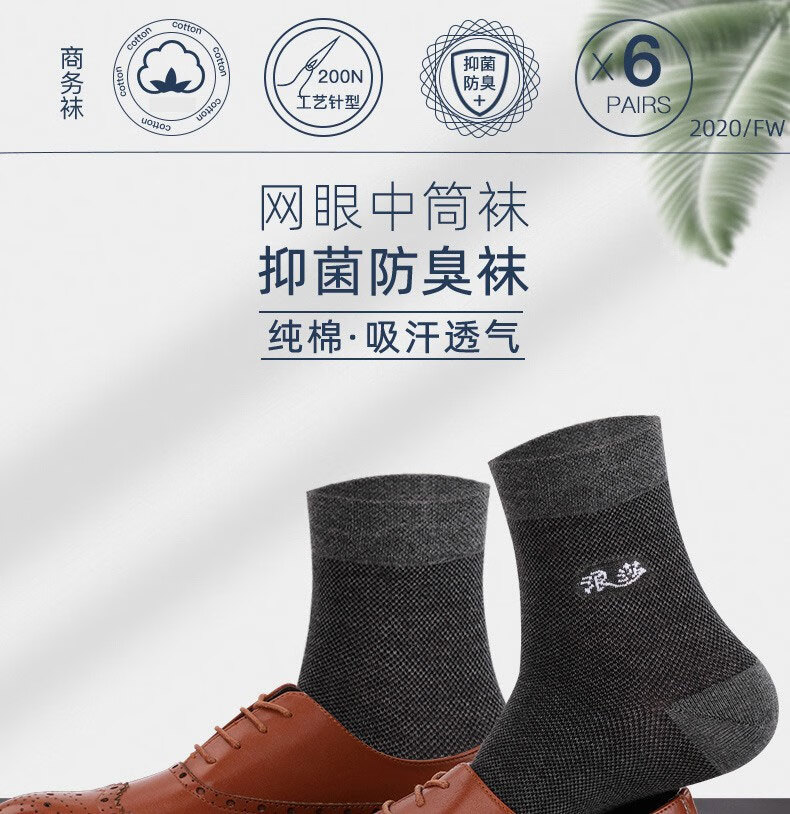 浪莎袜子男纯棉夏季薄款全棉吸汗夏天舒适透气运动休闲男士中筒棉袜子 商务纯棉(2黑2深灰2藏青) 6双 6双装