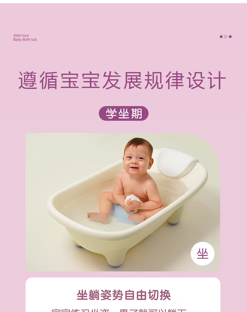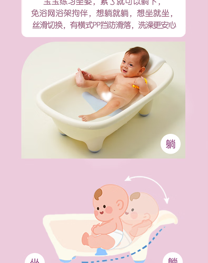 MYKODA可坐可躺婴儿洗澡盆儿童浴盆新生儿童用品宝宝洗澡浴盆神器 可坐可躺可防滑单浴盆【香草浴盆】