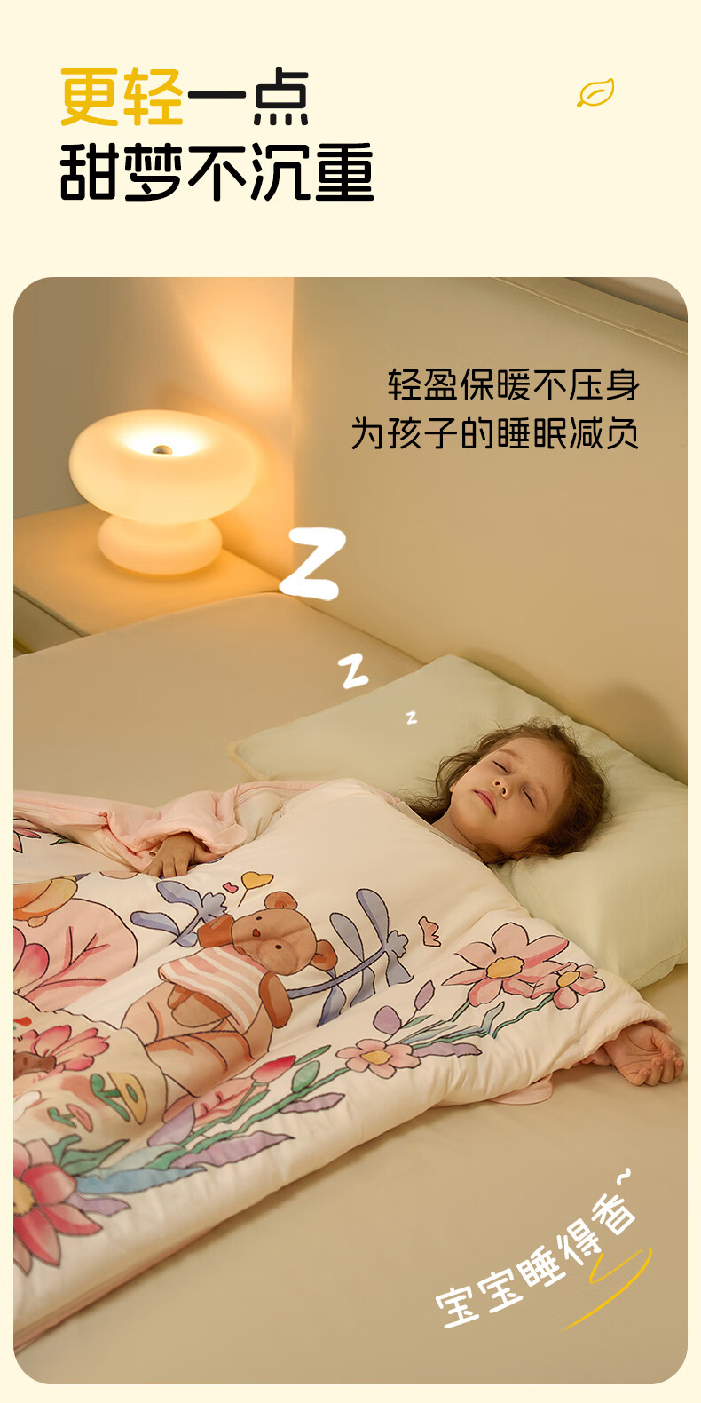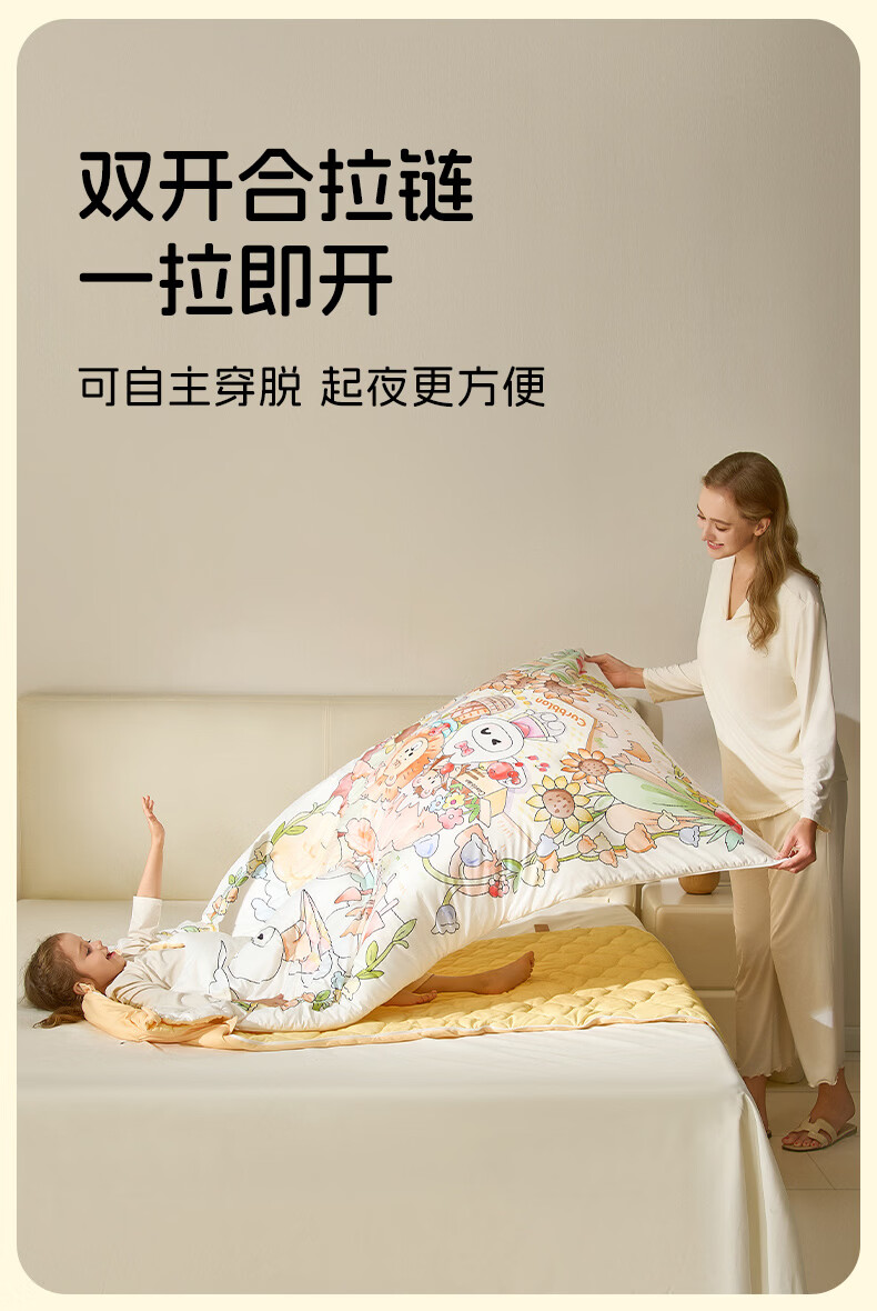 卡伴儿童防踢被【吉娜宝宝同款】秋冬加厚防踢澳洲羊毛桑蚕丝被子睡袋 繁花童趣【粉色】 中码1.5-6岁 建议身高120内 【75*140cm】3.7斤