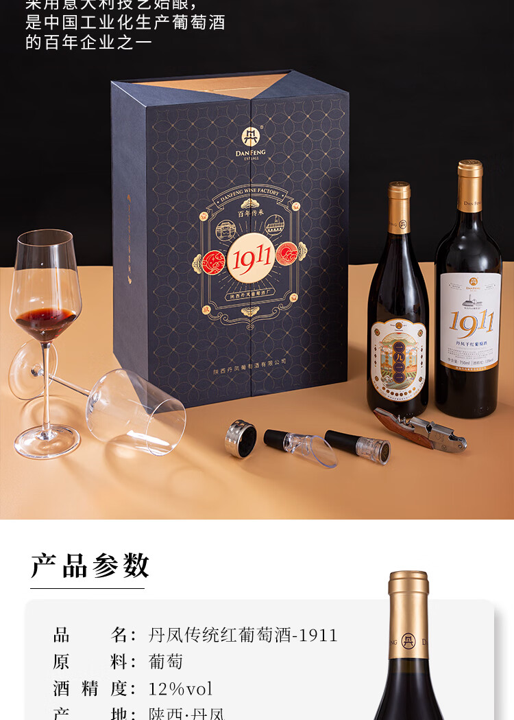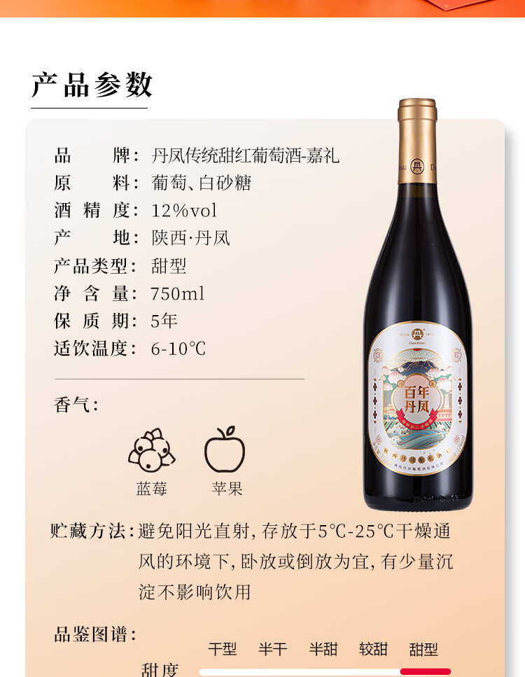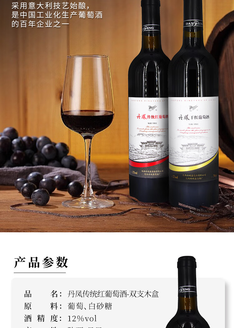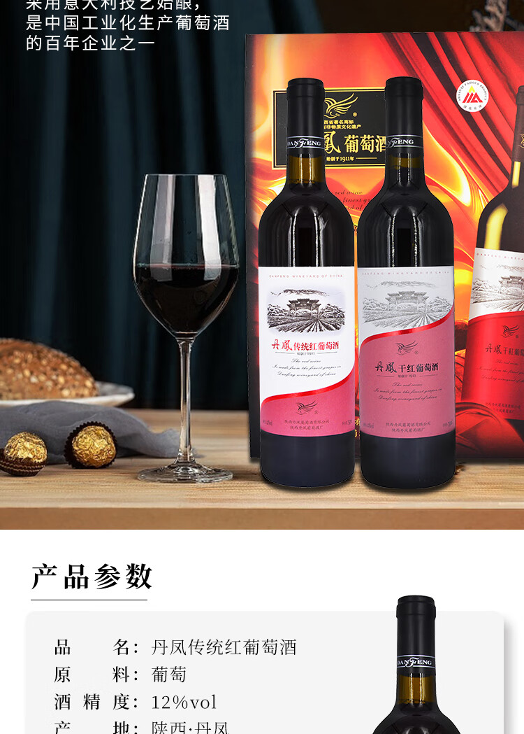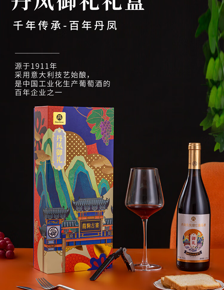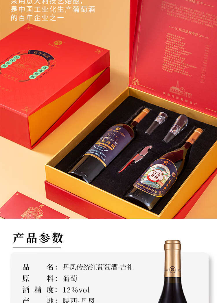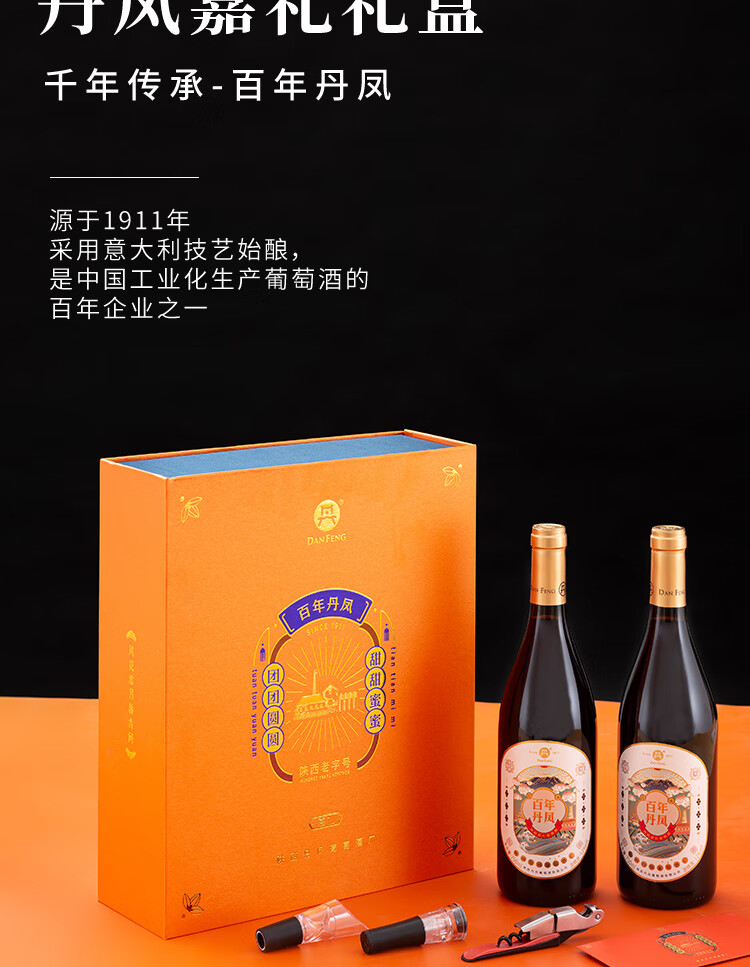 丹凤【年货节】丹凤葡萄酒 礼盒装红酒 过节送礼 中华老字号 吉礼干甜组合750ml*2【不知对方喜好选他没错】