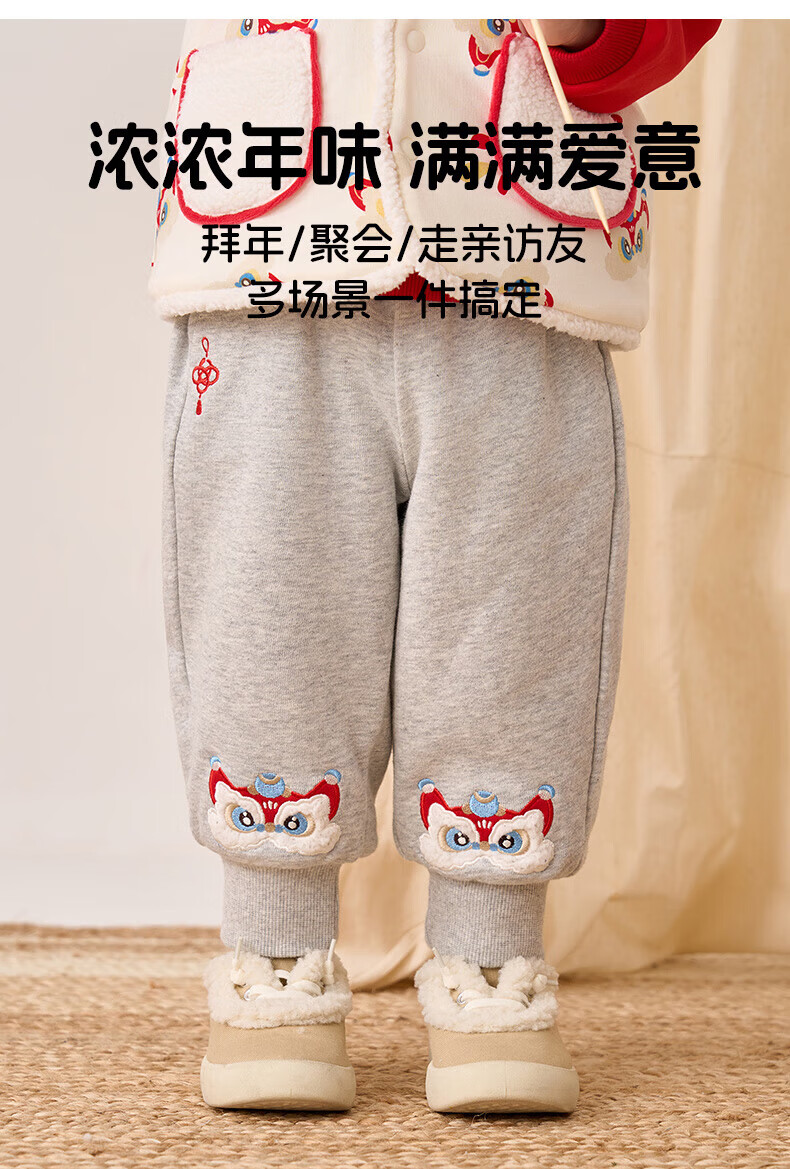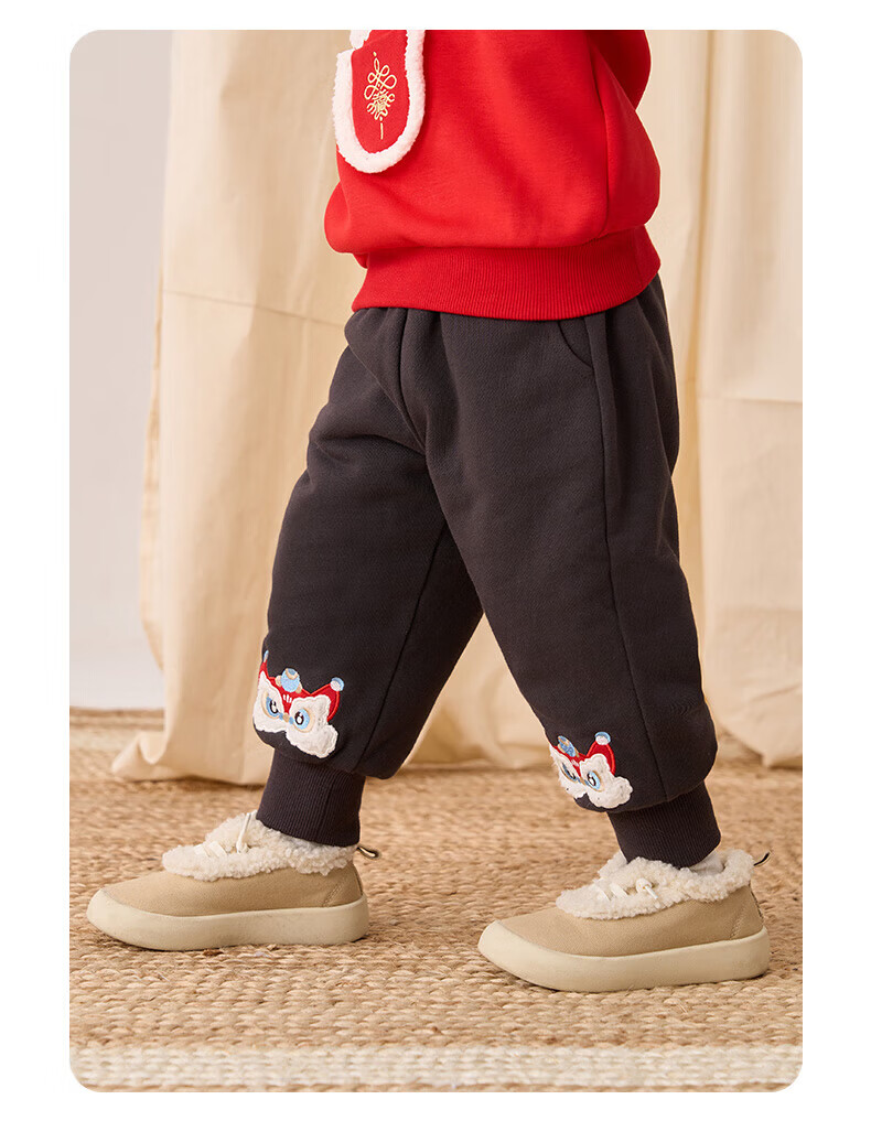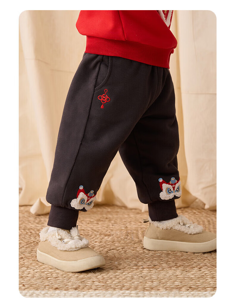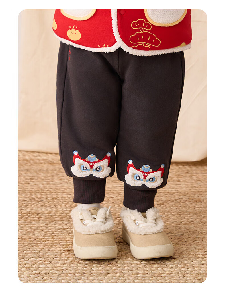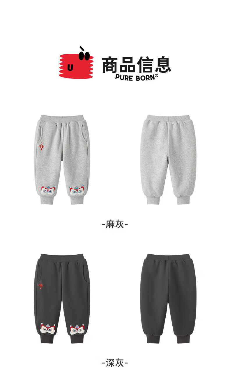 博睿恩(Pureborn)男女宝宝新年长裤秋冬新款小童加绒儿童保暖加厚裤子 深灰 110