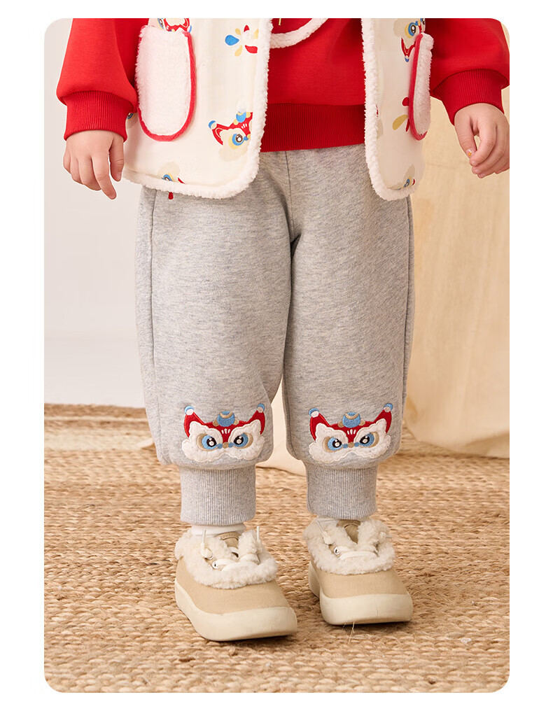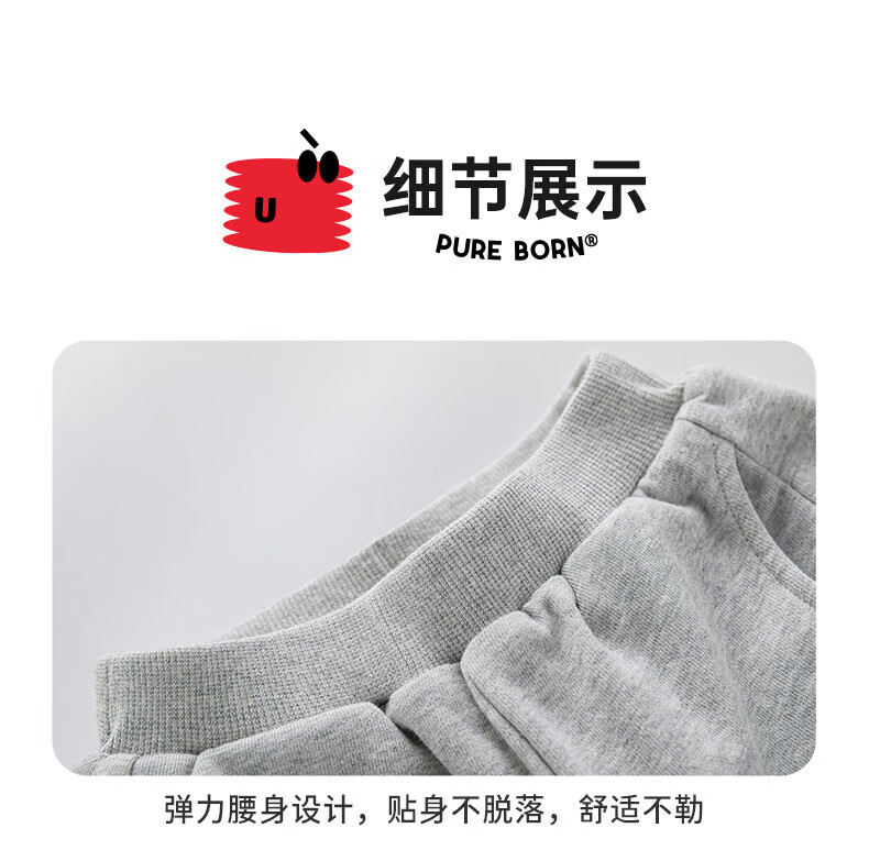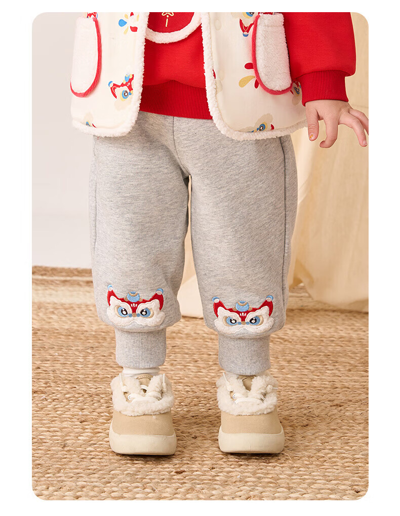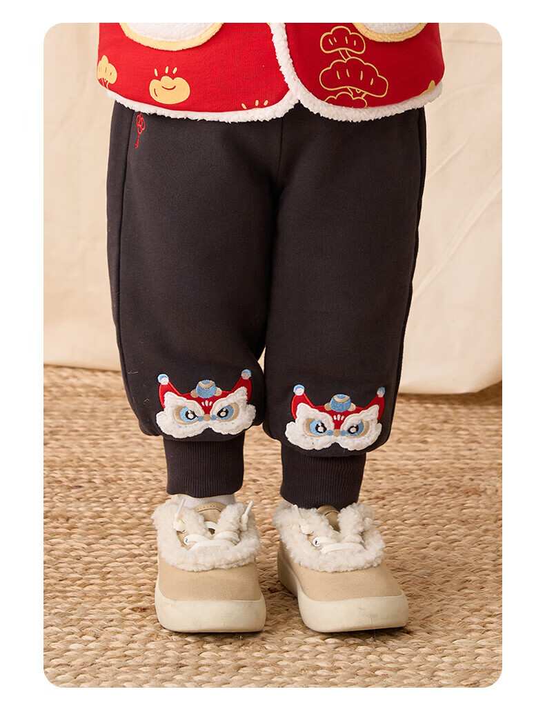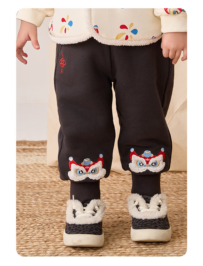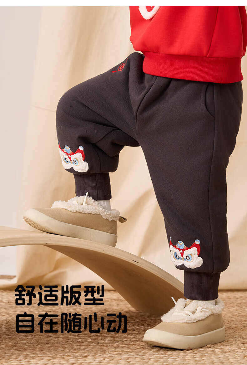 博睿恩(Pureborn)男女宝宝新年长裤秋冬新款小童加绒儿童保暖加厚裤子 深灰 110