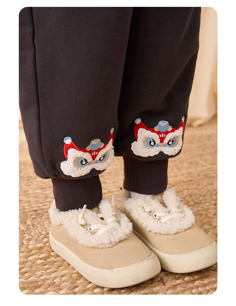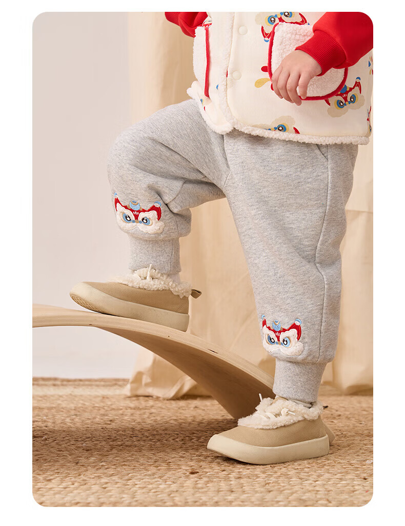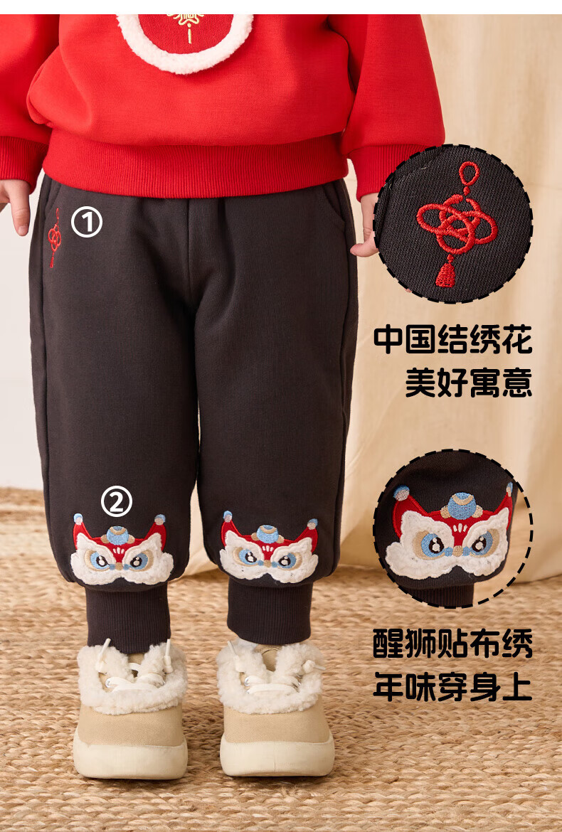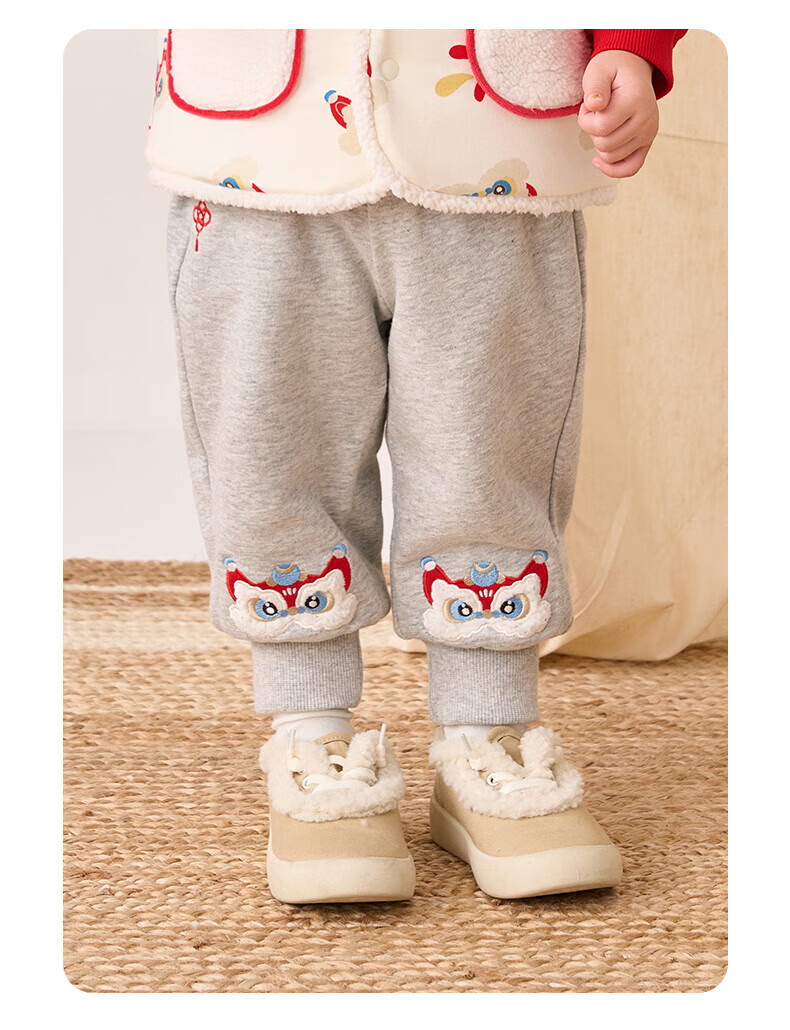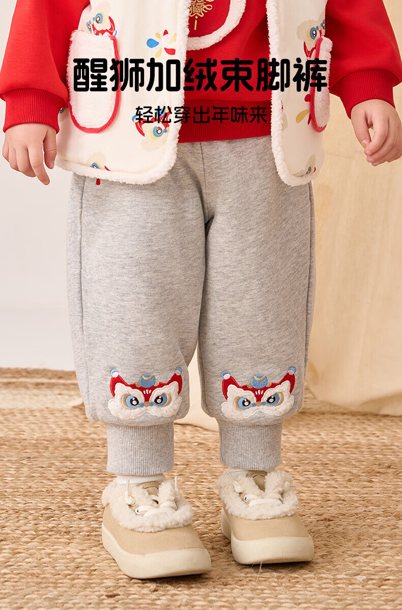 博睿恩(Pureborn)男女宝宝新年长裤秋冬新款小童加绒儿童保暖加厚裤子 深灰 110