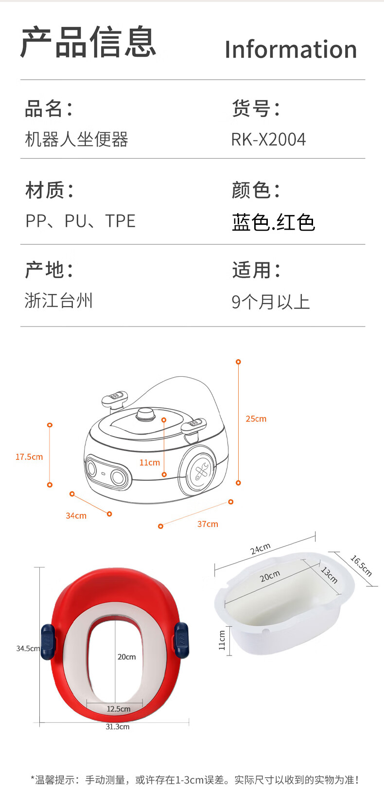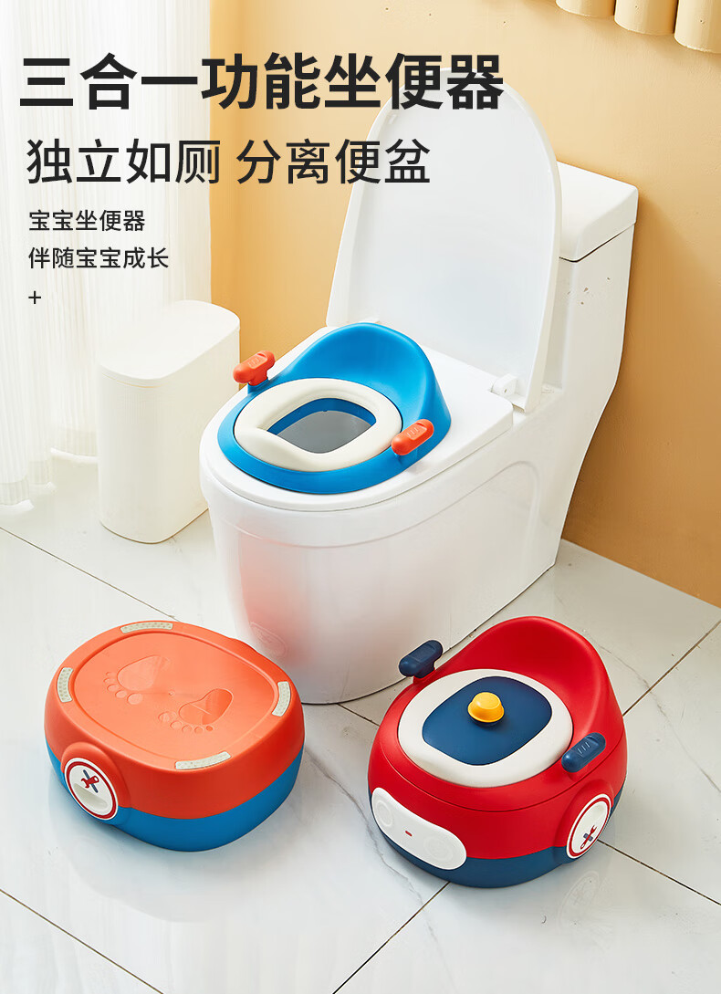日康(rikang)儿童马桶 宝宝座便器婴儿便盆 PU垫三合一功能 【25款升级前挡】PU垫X2004-9 红