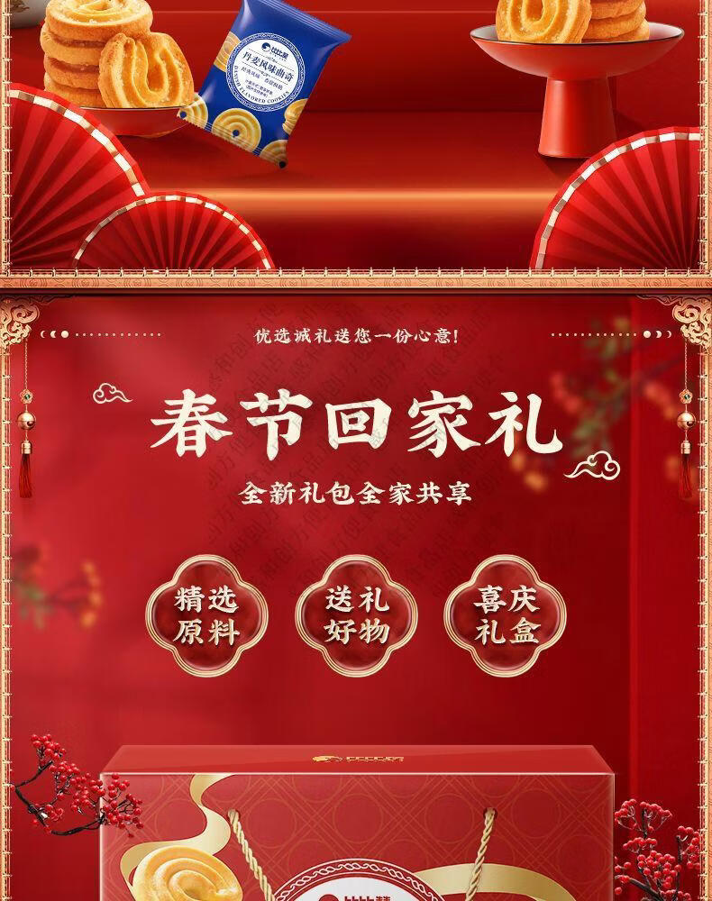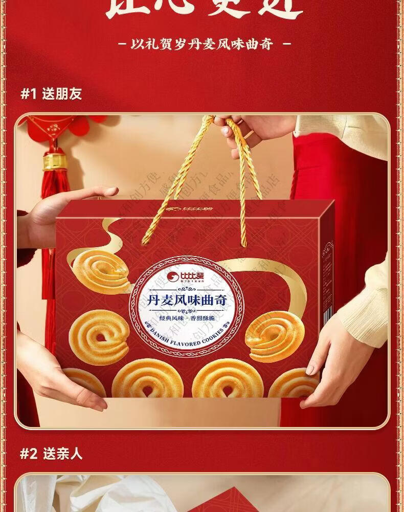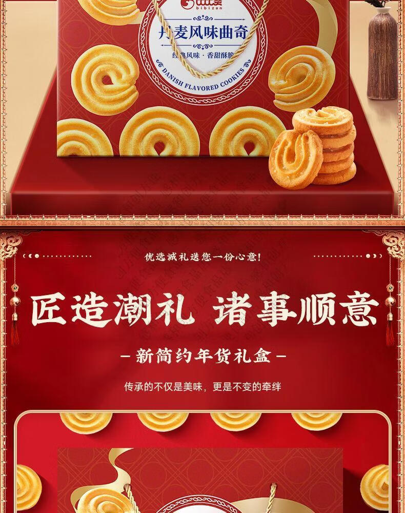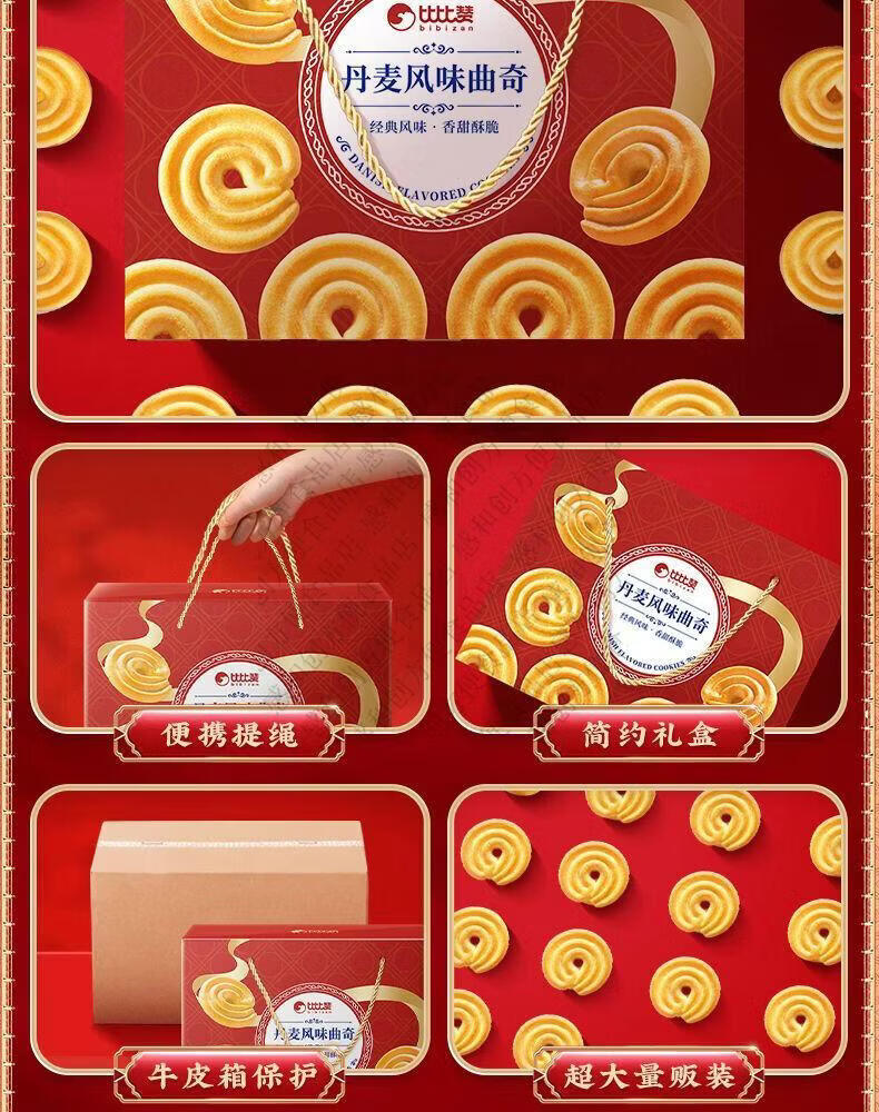 比比赞曲奇饼干礼盒丹麦风味曲奇过年货送礼解馋休闲零食小吃批发 丹麦曲奇饼礼盒1000g*1盒