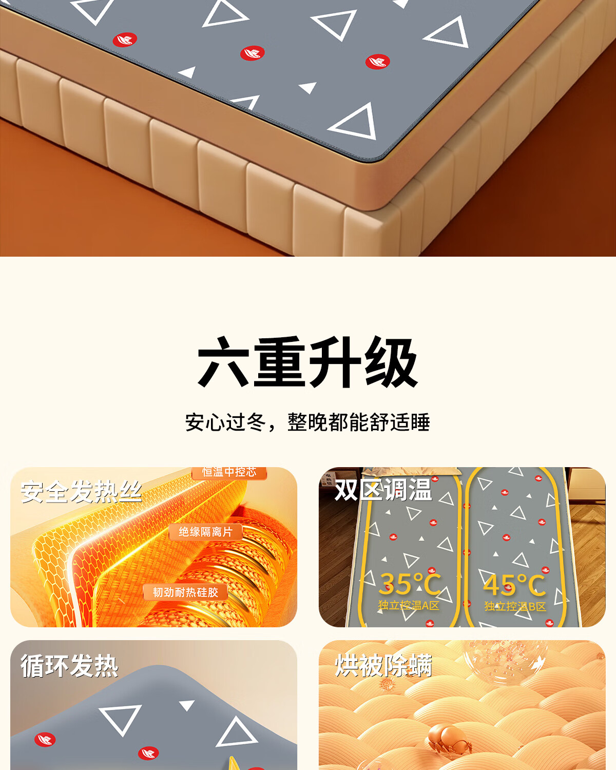 长城电热毯双人双控智能除螨石墨烯加热安全速热自动断电家用床上用品 加厚葵花绒【A类母婴可用】 180*120cm【恒温速热】【一键除螨】