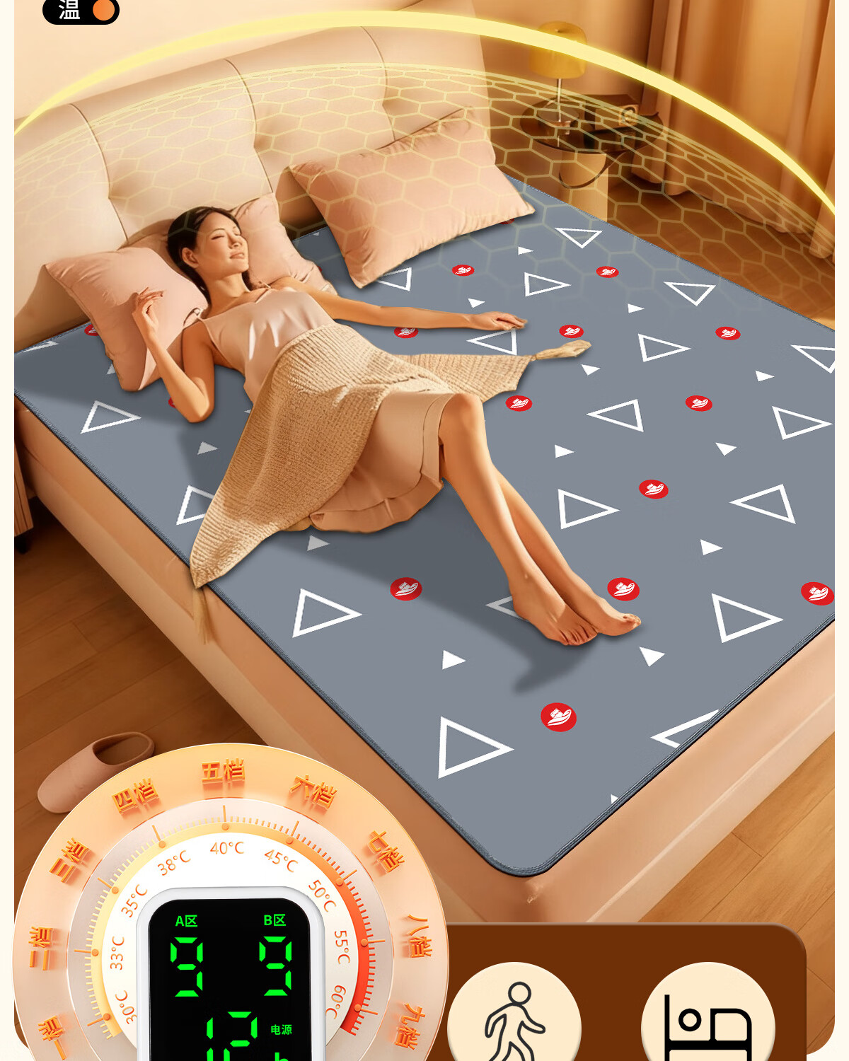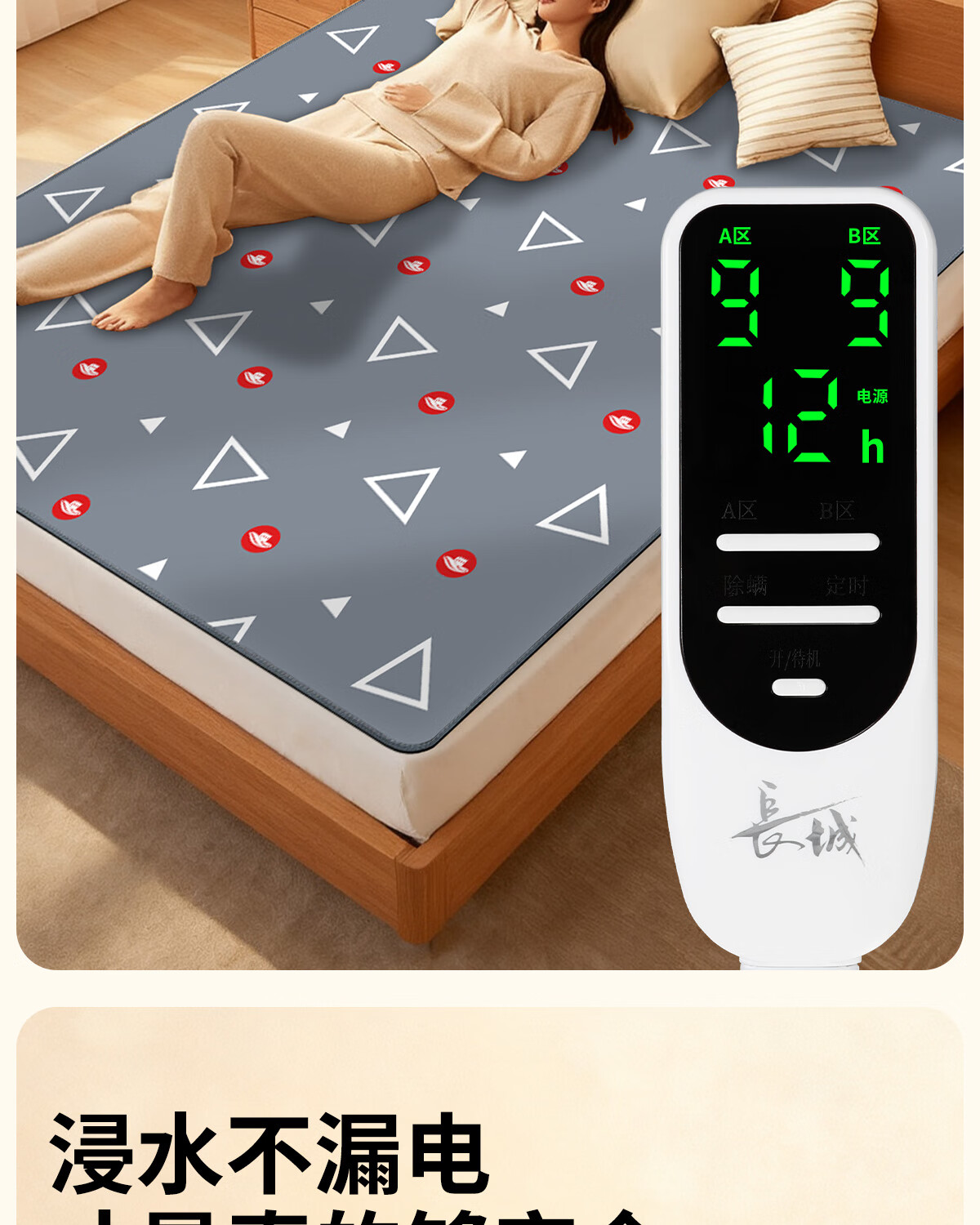 彩虹电热毯双人双控2*1.8米定时9档NTC调温可水洗加厚电褥子家用毯子 可水洗 NTC控温9档调温除菌除螨 15小时定时 2.0*1.8米