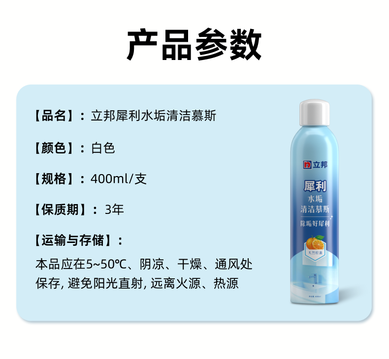 立邦环保水垢清洁剂卫浴洗手台瓷砖顽固水垢霉斑皂垢尿渍清洁泡沫慕斯 【强力溶垢】水垢清洁慕斯 400ml 2瓶