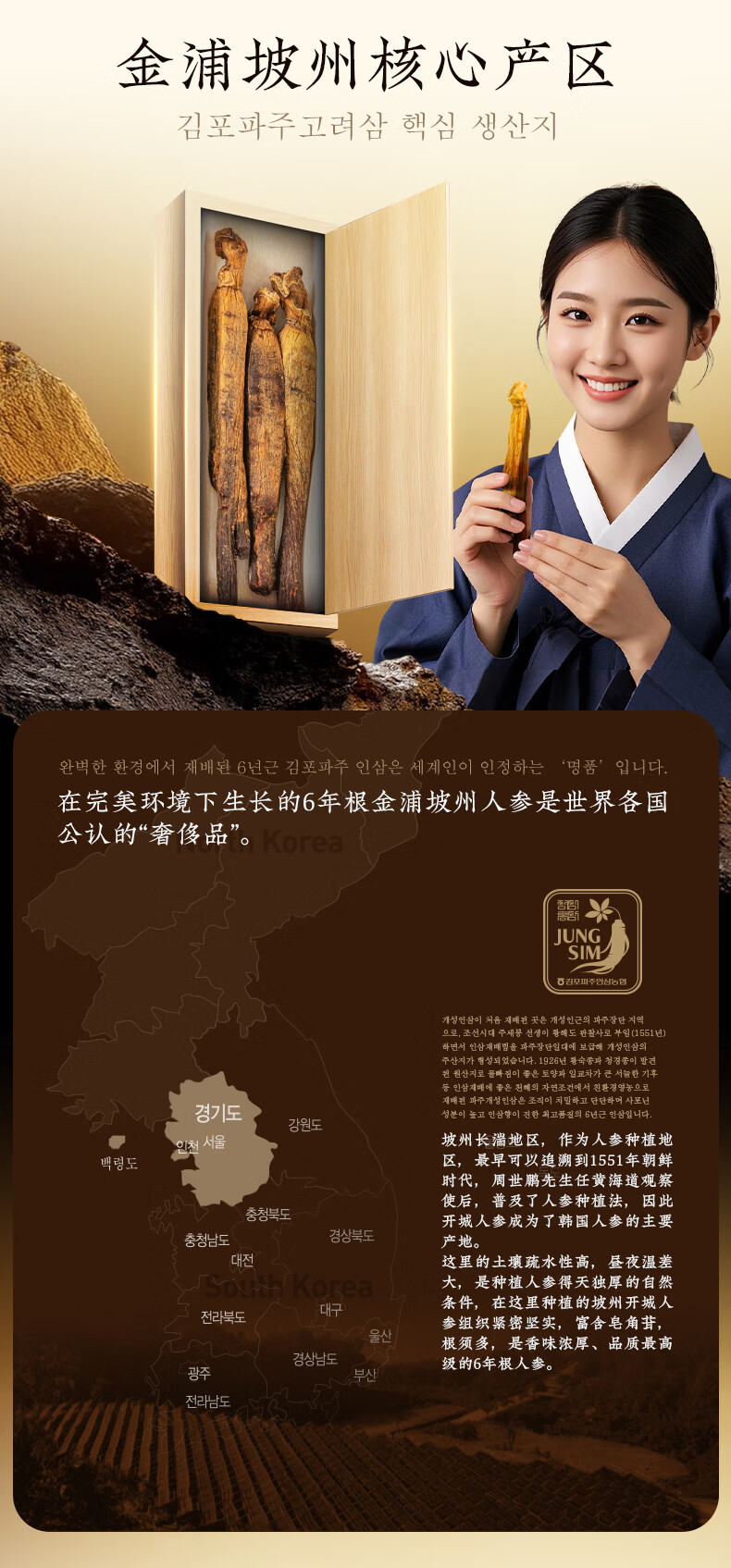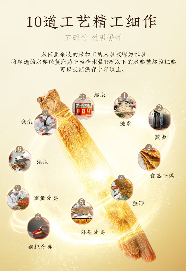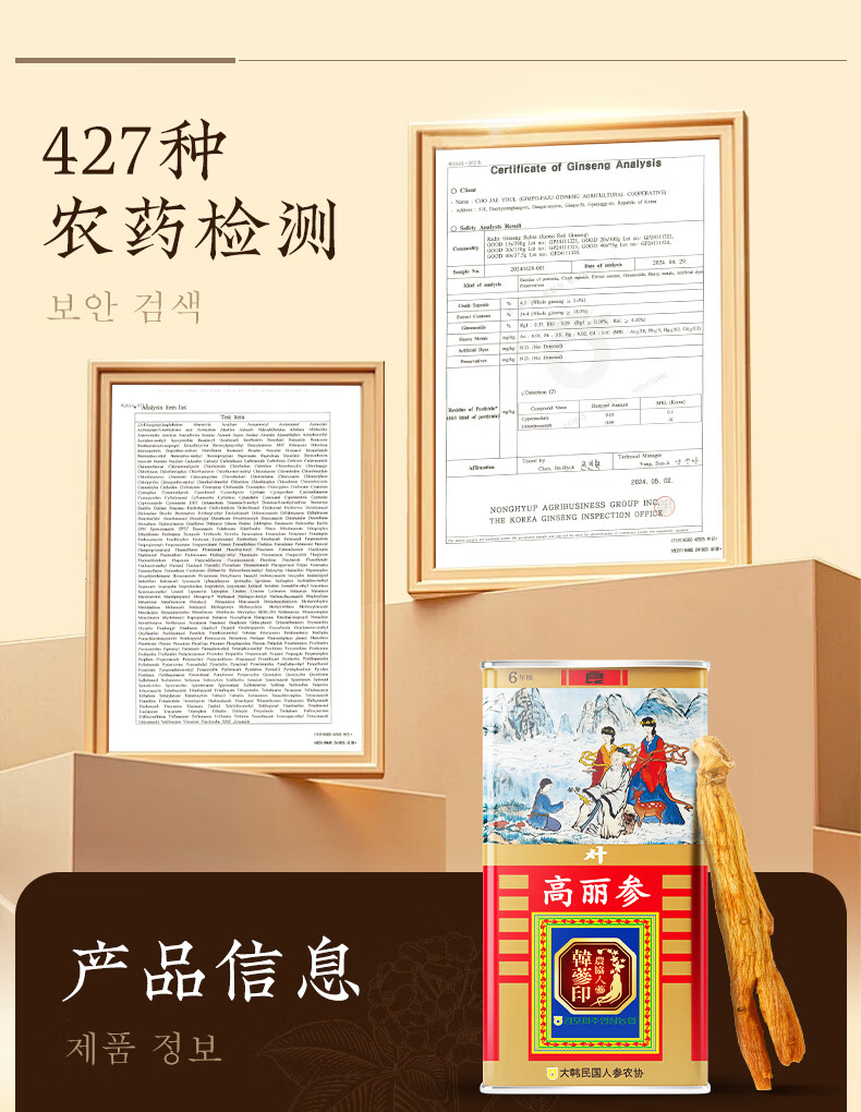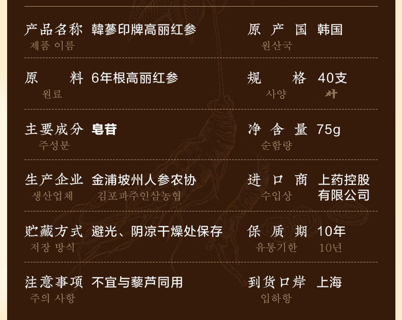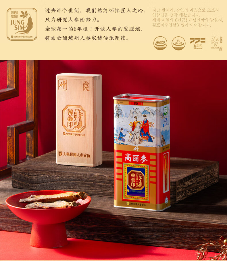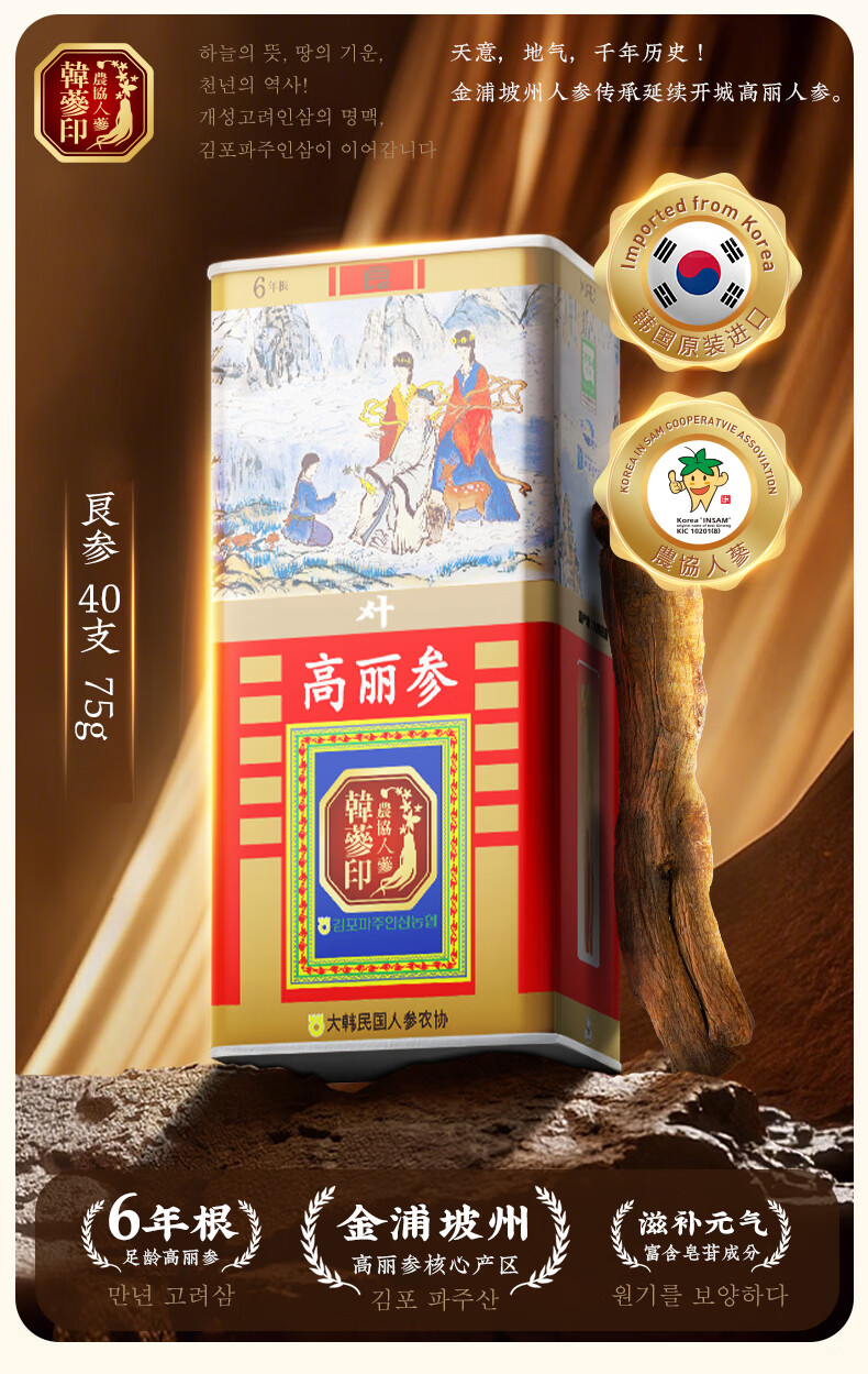 农协人参韩参印韩国原装进口六年根高丽红参礼盒送礼礼品送长辈 良参40支75克