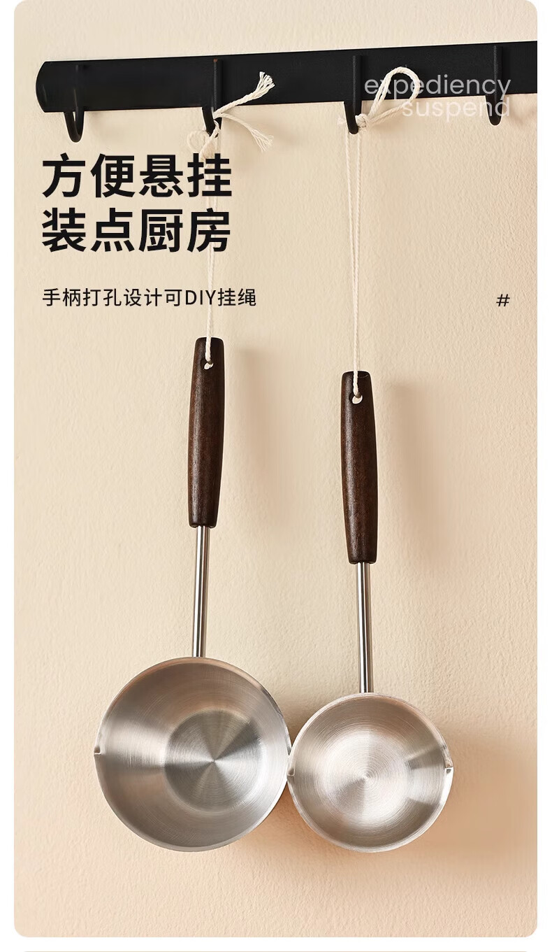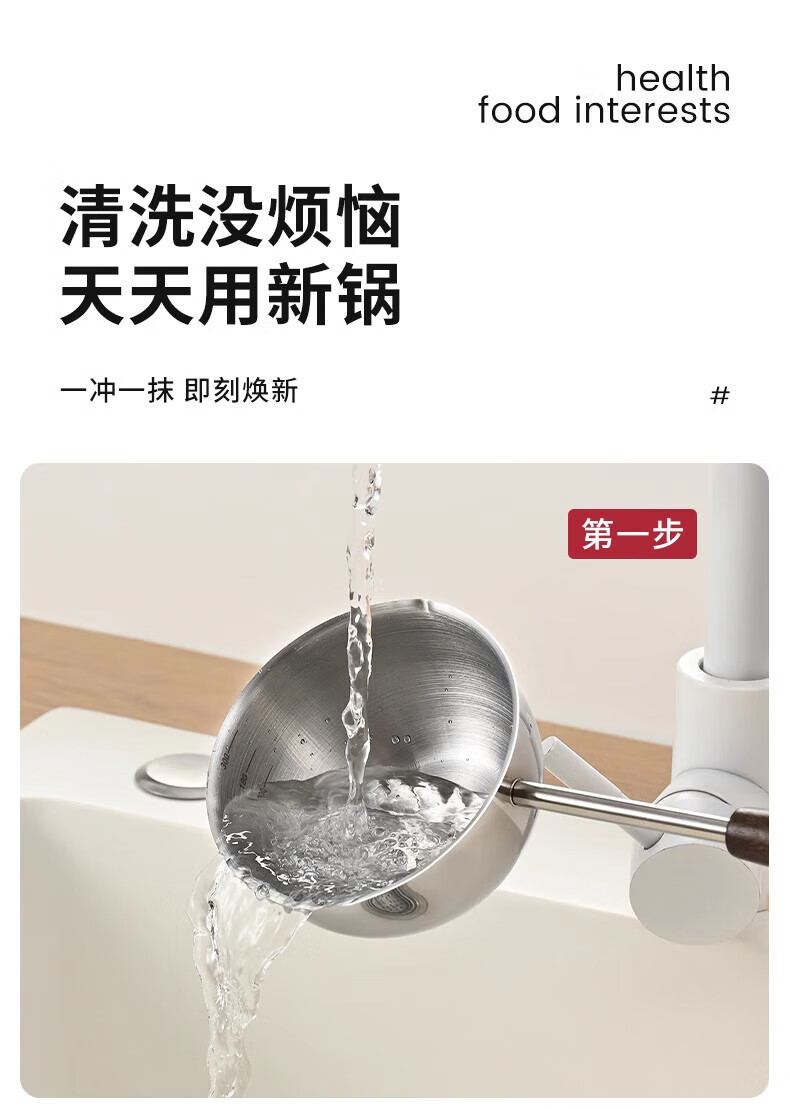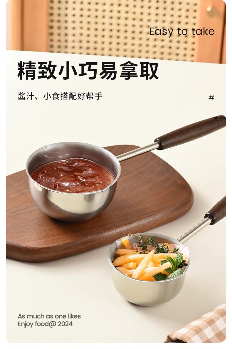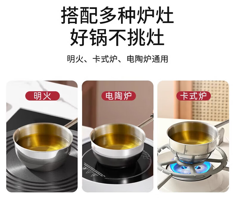 热油小锅泼油锅加厚不锈钢木柄防烫带刻度双倒流口不挂油无涂层 【木柄】爆款300ml