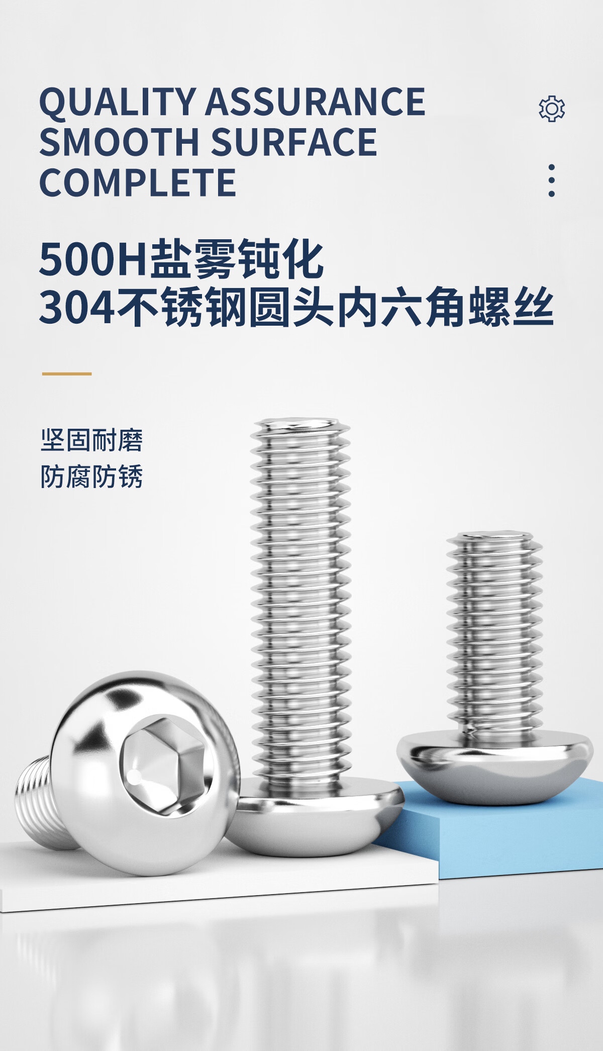 固万基(GUWANJI)304不锈钢钝化盘头内六角螺栓圆头机丝蘑菇头半圆杯内六角螺丝钉 M3x5(100只)
