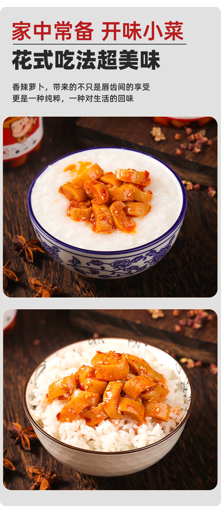 小味儿香辣萝卜干下饭菜麻辣四川湖南特产农家自制辣脆味开味咸菜罗卜丁 麻辣萝卜220g*4瓶