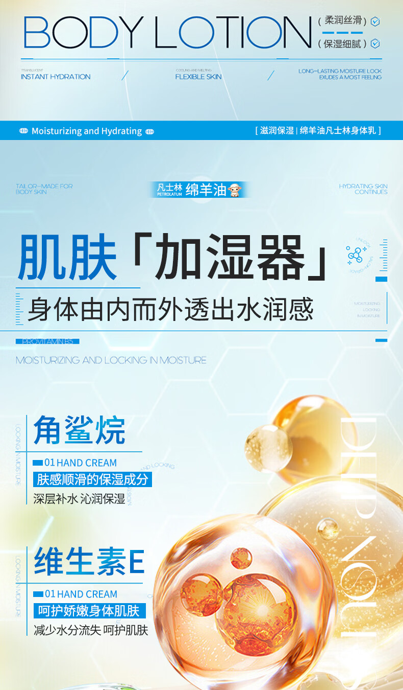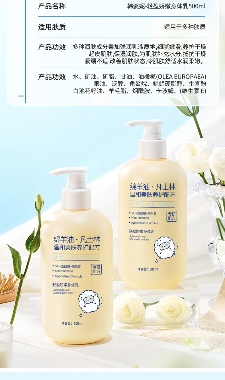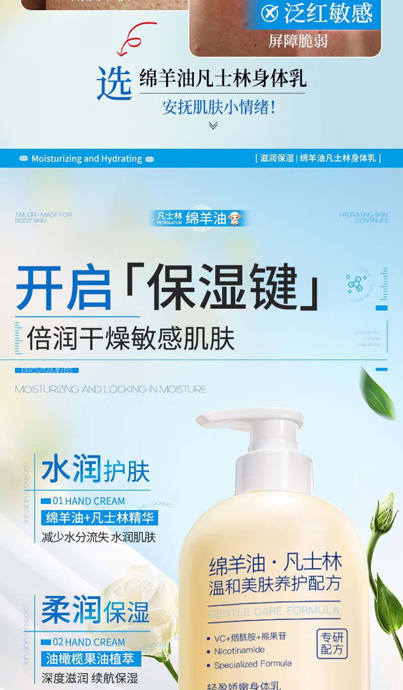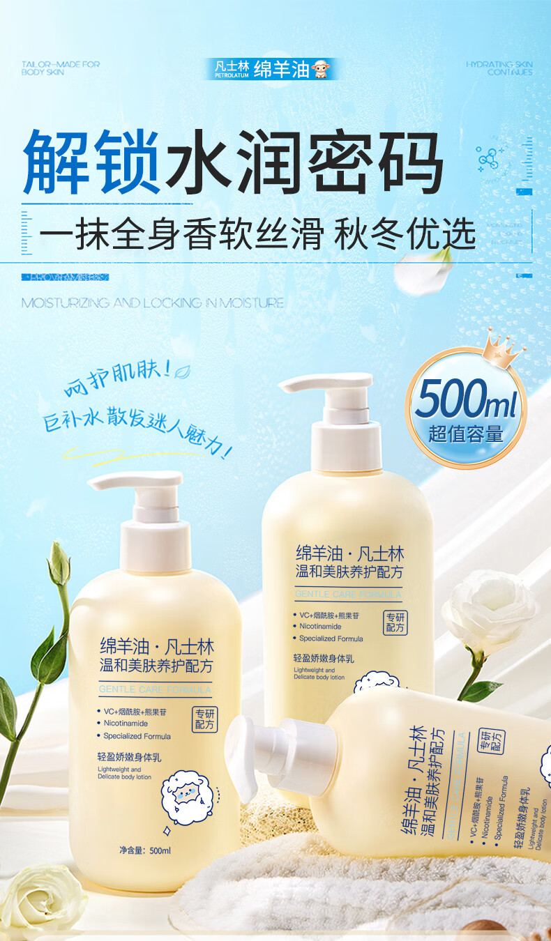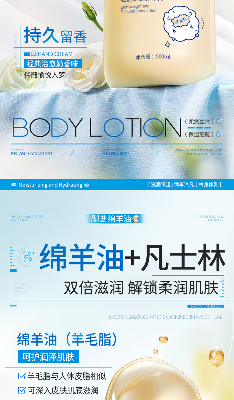ehmznv绵羊油凡士林身体乳保湿补水防干裂维E润肤乳秋冬季男女全身可用 绵羊油凡士林身体乳500ml*1瓶