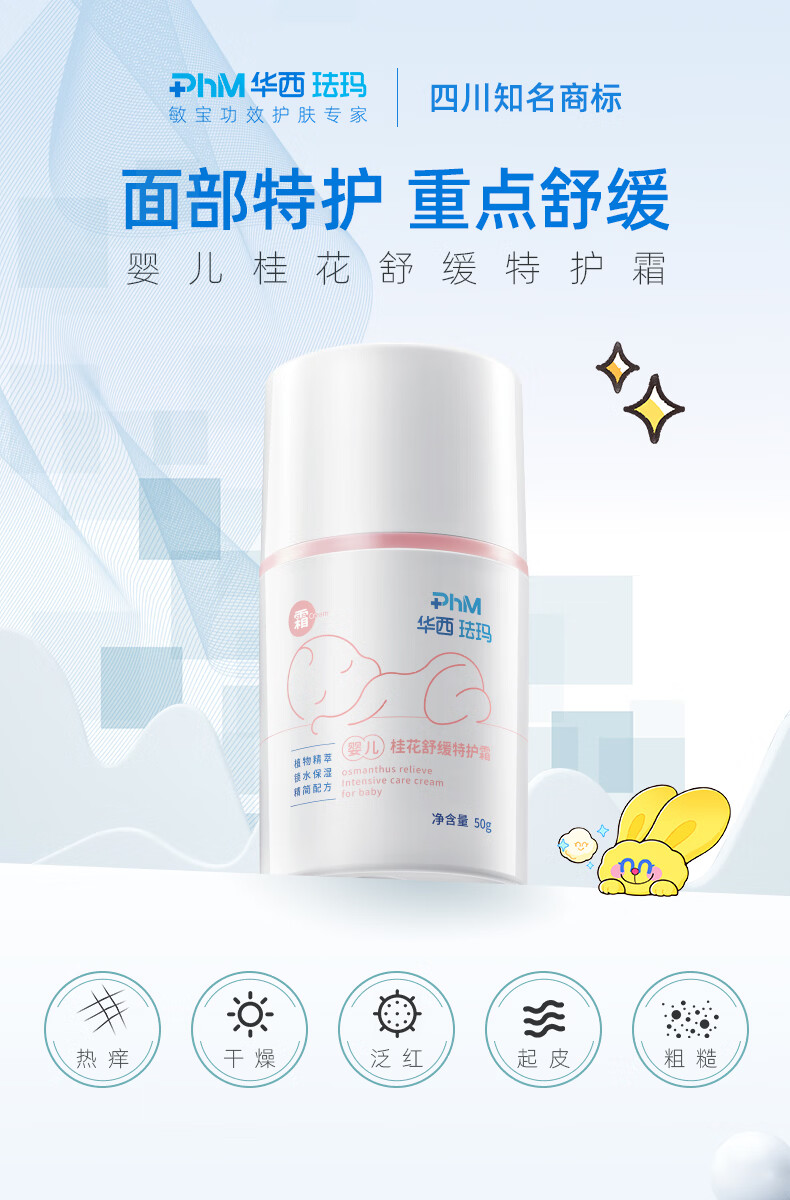 华西珐玛婴幼儿面部特护霜新生儿宝宝儿童面霜清爽保湿滋润补水 婴儿桂花霜50g*2