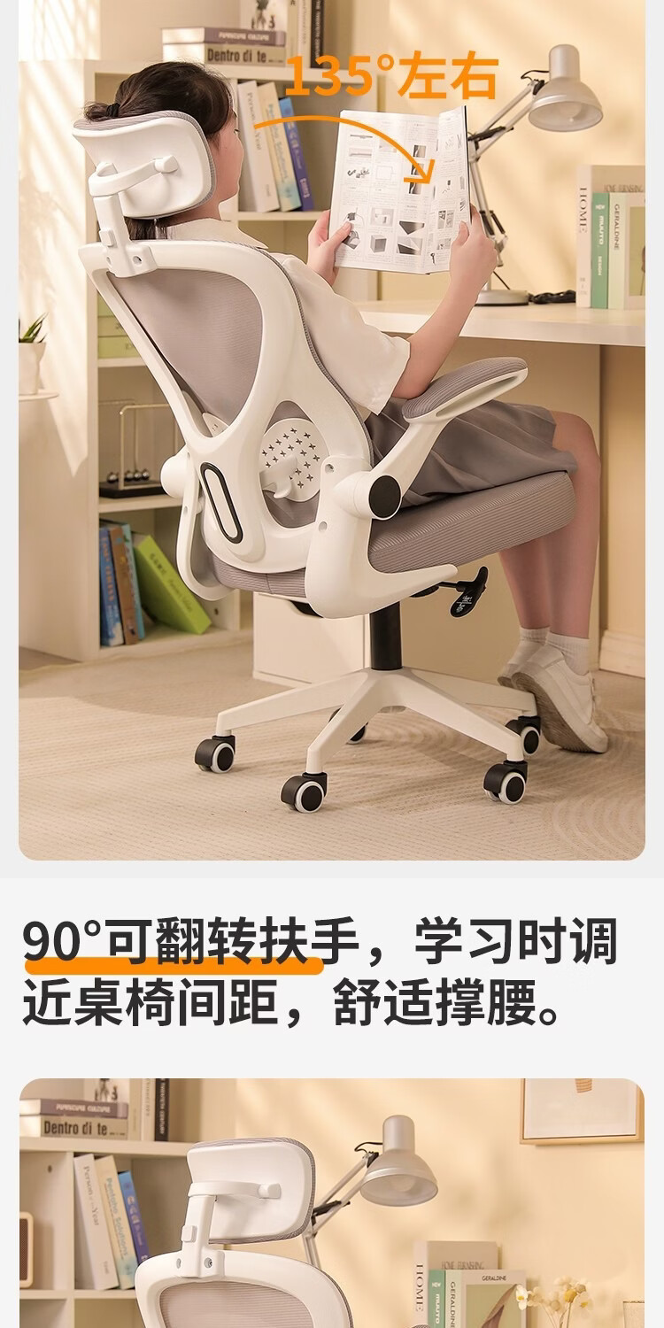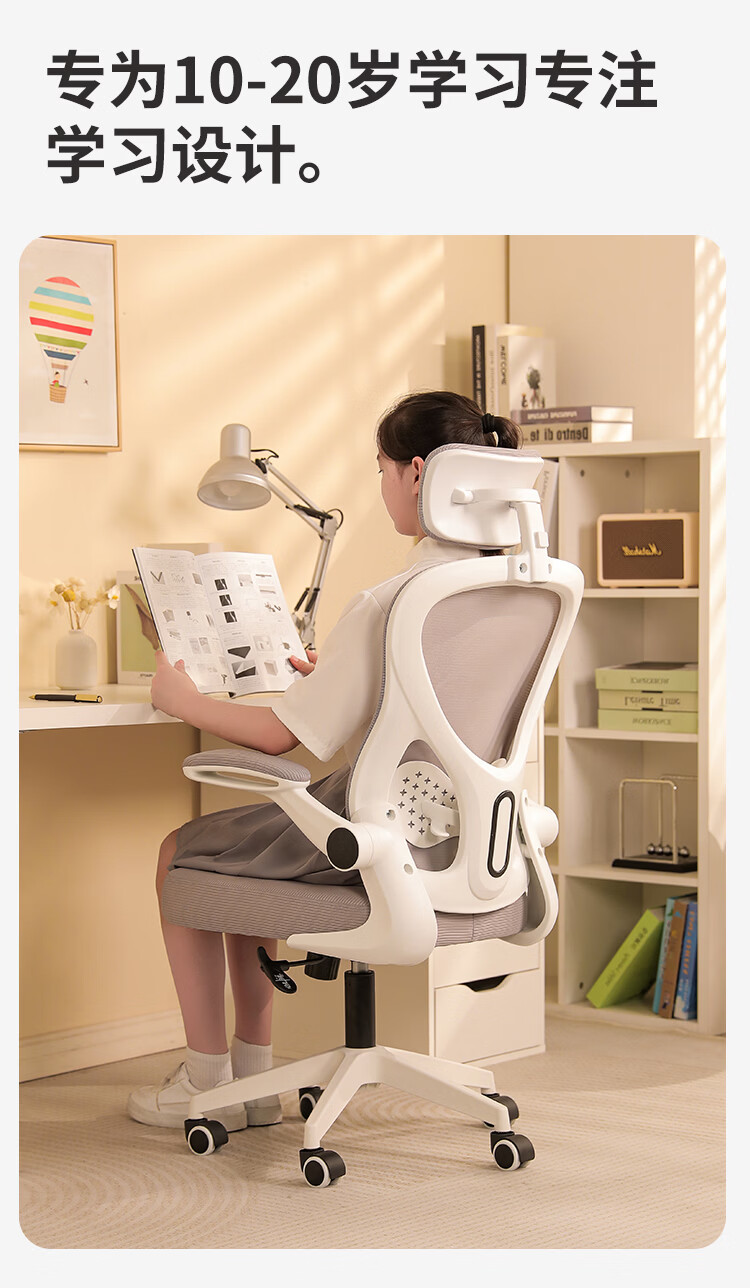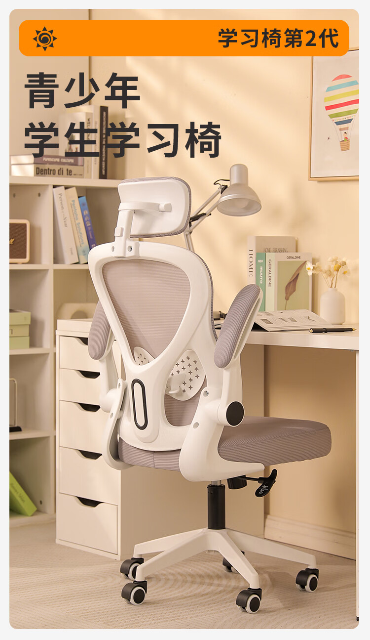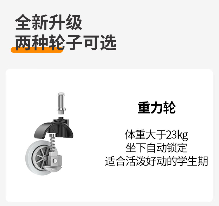 学习椅子久坐初高中小学生写作业专用椅舒适家用书桌写字儿童座椅 无头款-【白框灰网】-弓形脚 滑轮-重力轮(入座即锁)