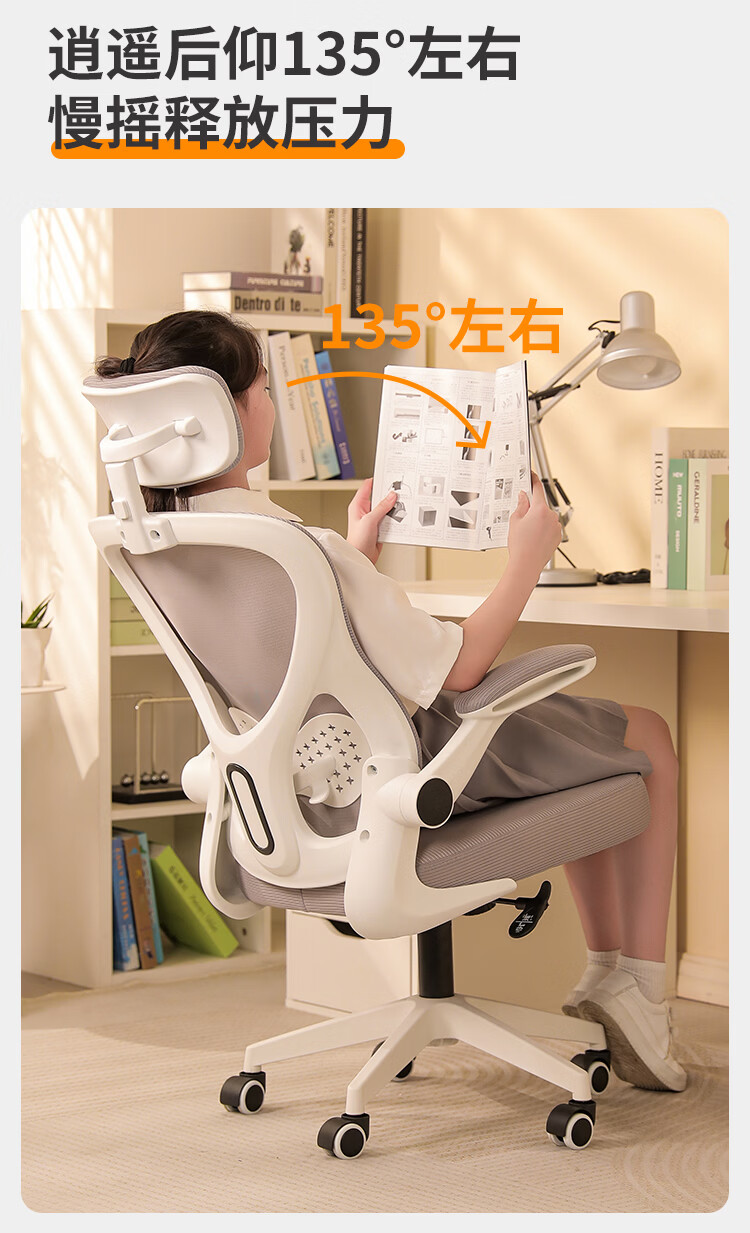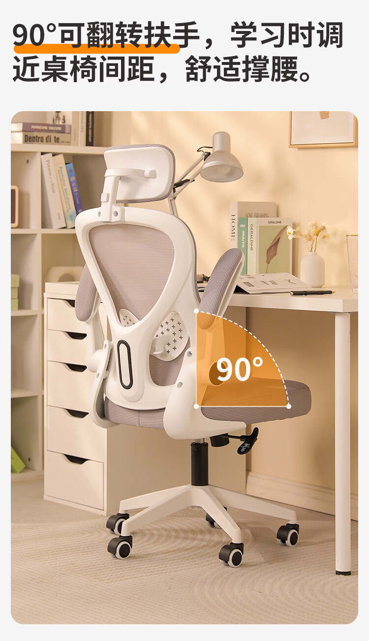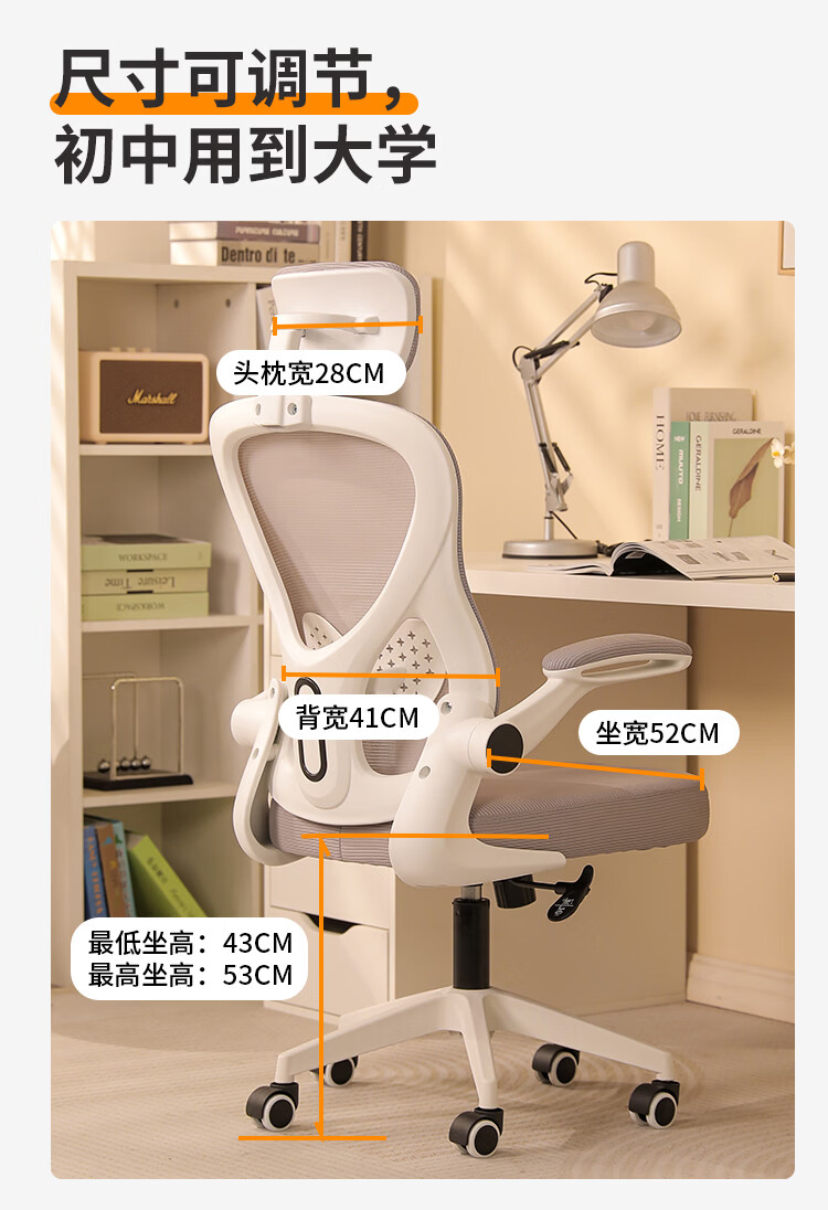 学习椅子久坐初高中小学生写作业专用椅舒适家用书桌写字儿童座椅 无头款-【白框灰网】-弓形脚 滑轮-重力轮(入座即锁)