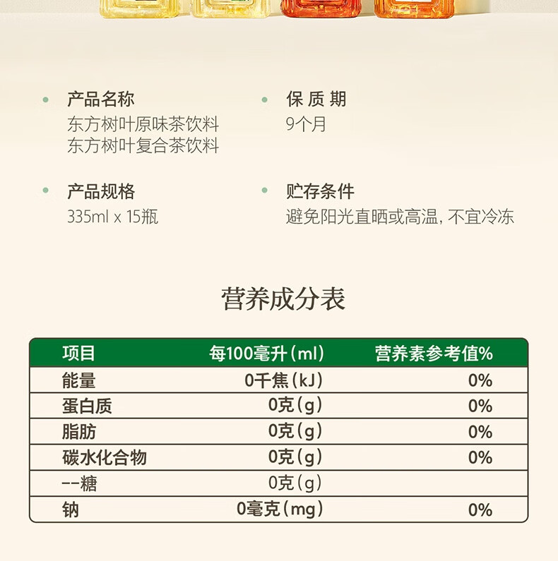 农夫山泉 东方树叶茉莉花茶335ml*15瓶无糖茶饮料0糖0脂0卡小瓶整箱装饮品