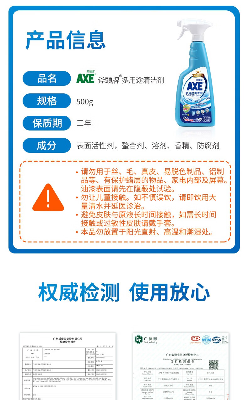 斧头AXE多用途清洁剂 厨房去油污浴室瓷砖不锈钢清洁去污垢 多用途清洁剂+洁厕液