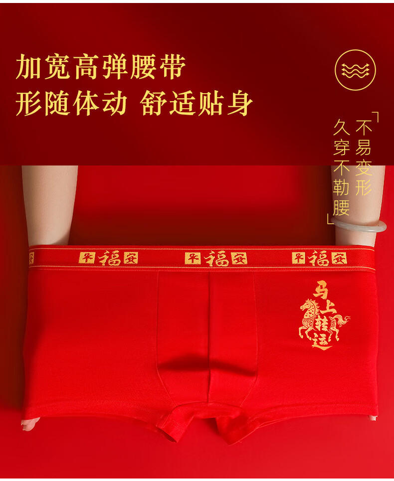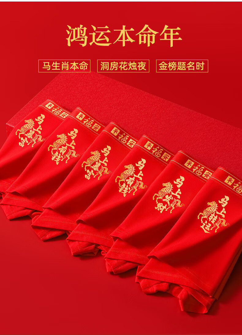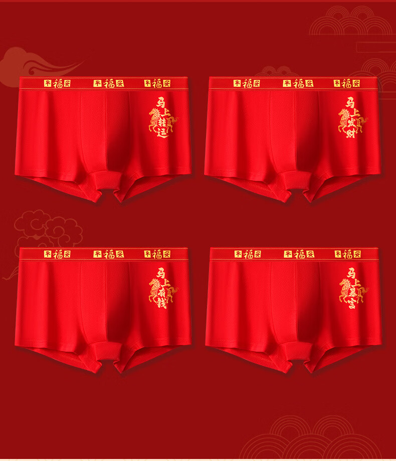 雅鹿男士内裤大红色平角裤马年本命年内裤结婚升学骐骥红礼盒 马年大红A款 【礼盒装】 4条 4XL (建议体重145-160斤)