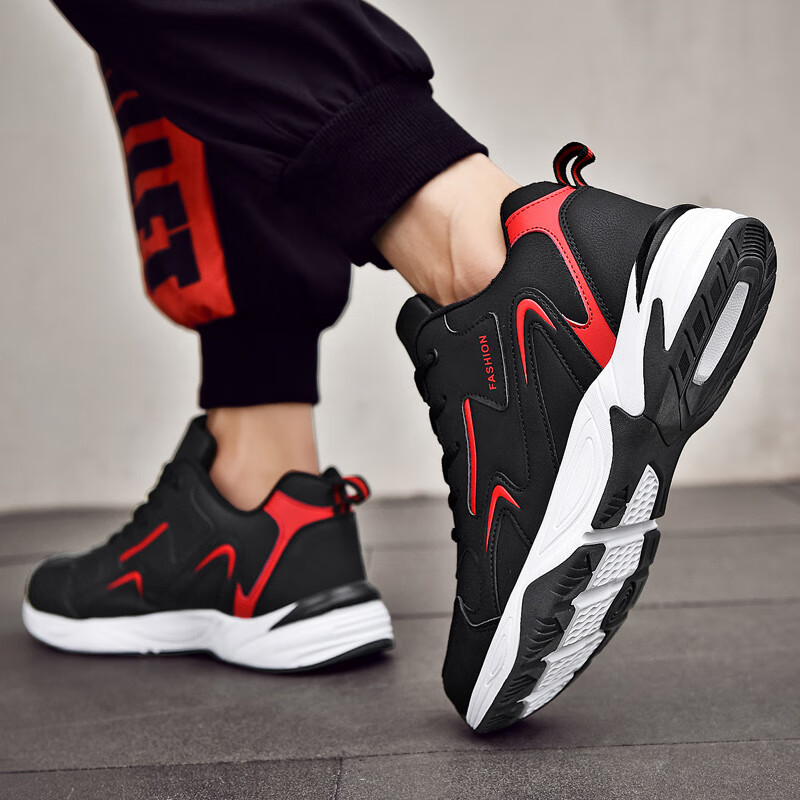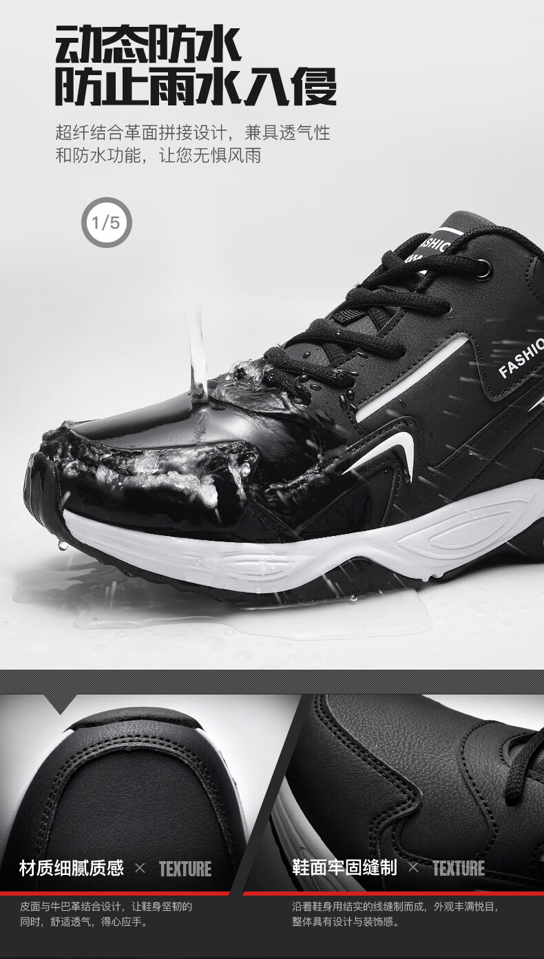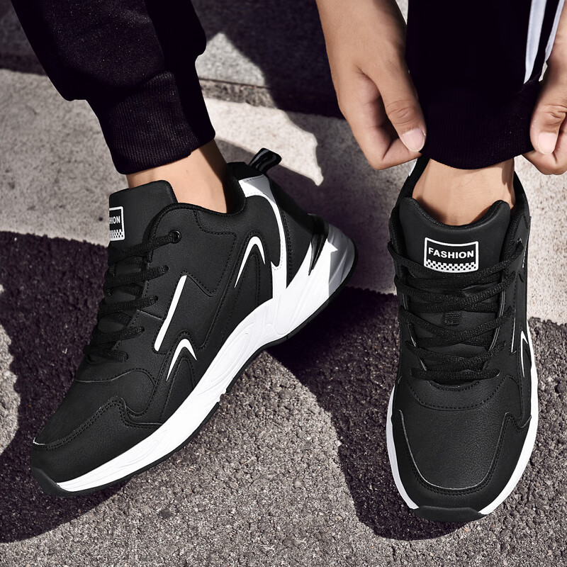 运动鞋男鞋2025秋冬季新款跑步鞋子男士透气运动鞋男加绒休闲鞋男 NK666黑白【皮面】 42