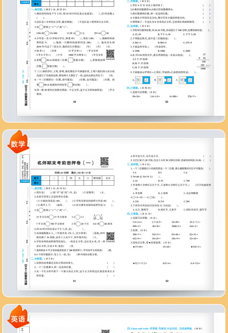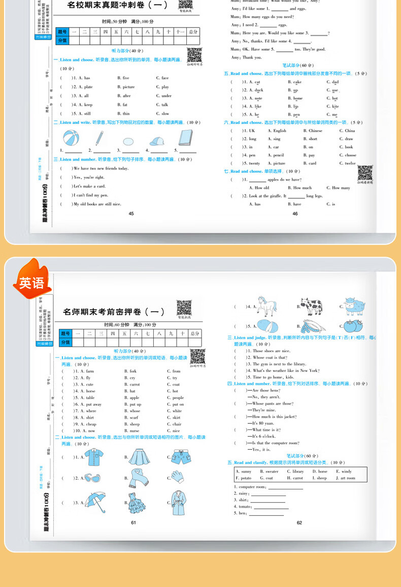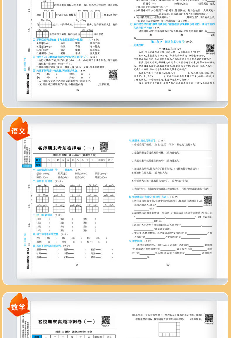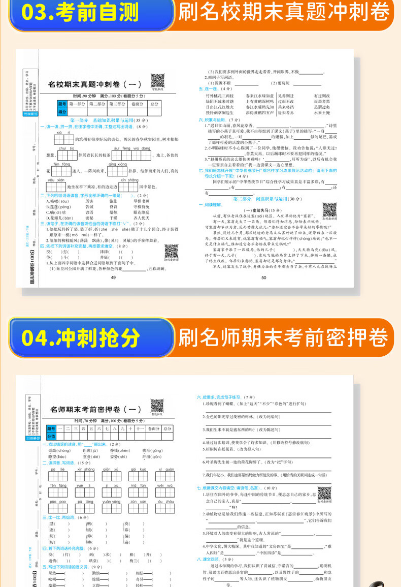 期末冲刺卷100分 1-6年级语数英上下册 一年级上册 语文