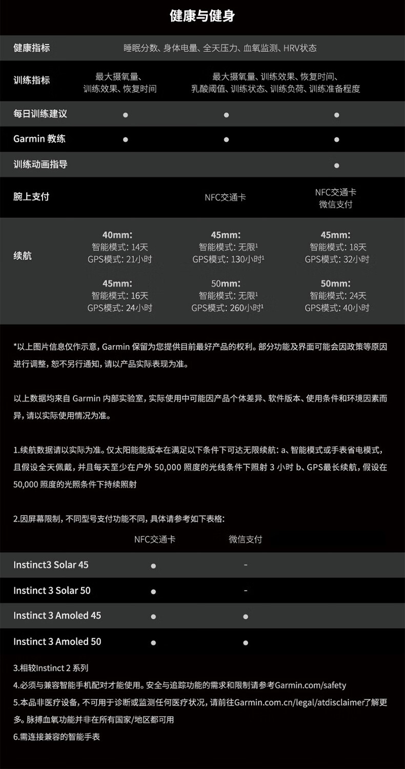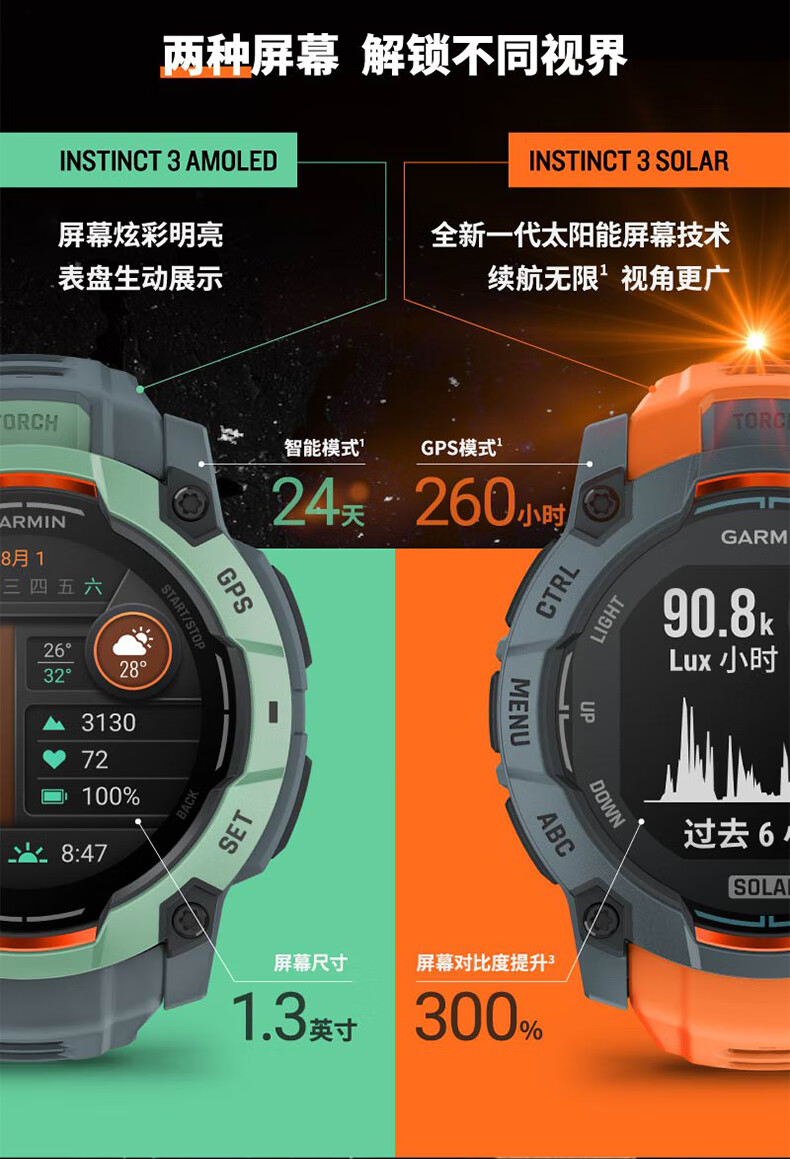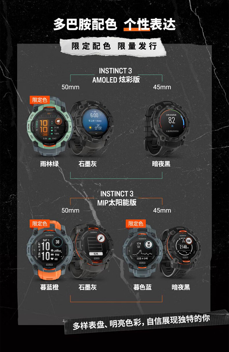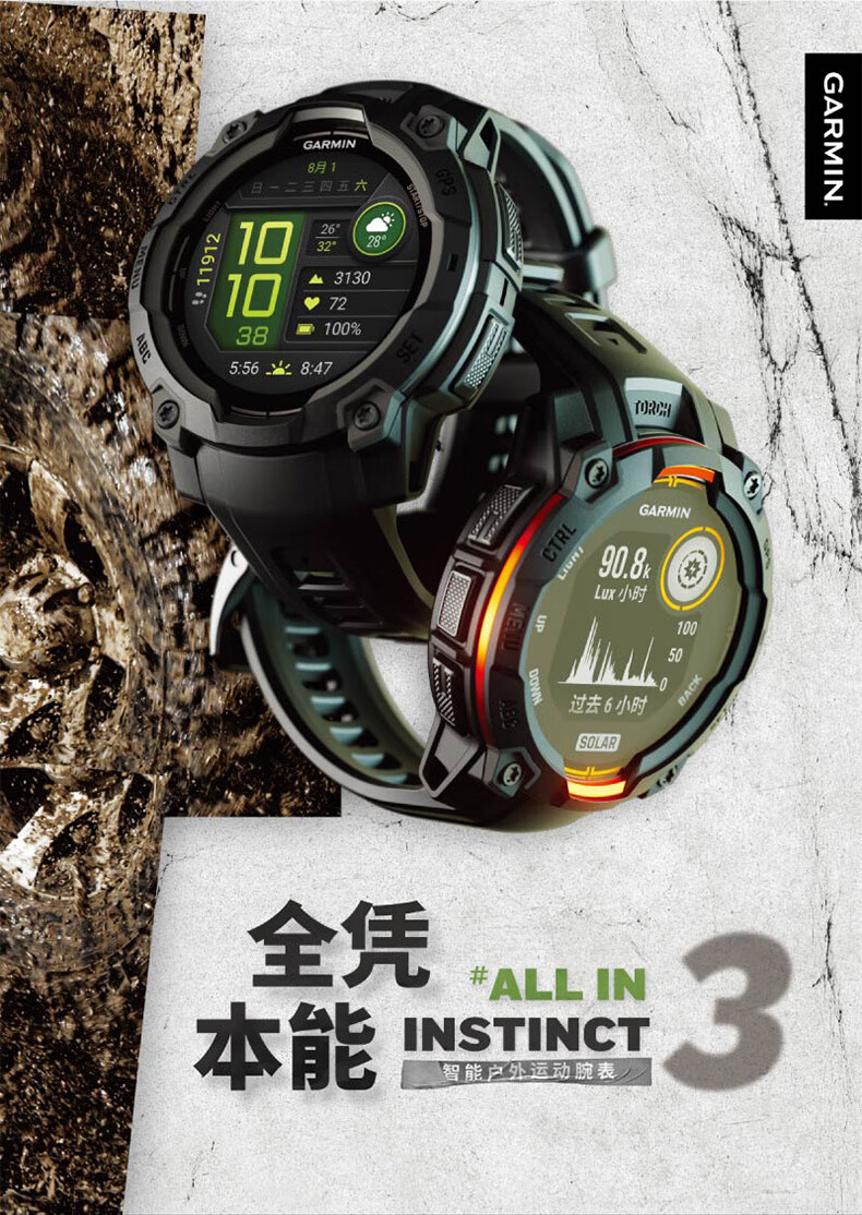 佳明(GARMIN)本能Instinct3战术版太阳能50mm户外探险GPS定位运动运动智能手表