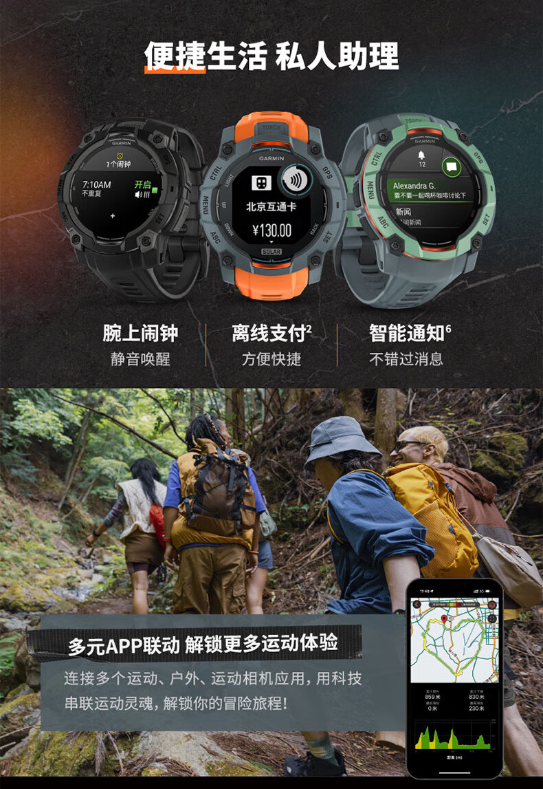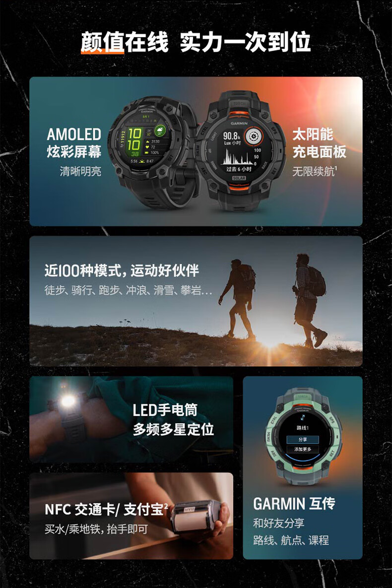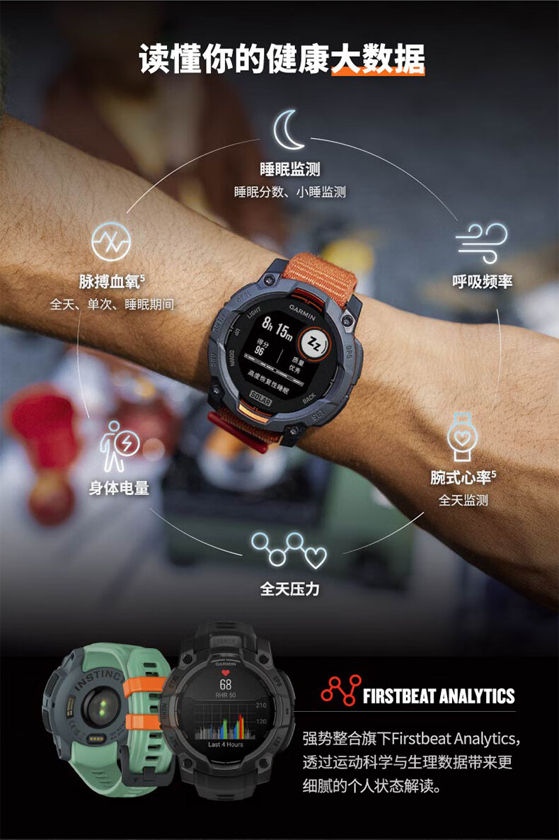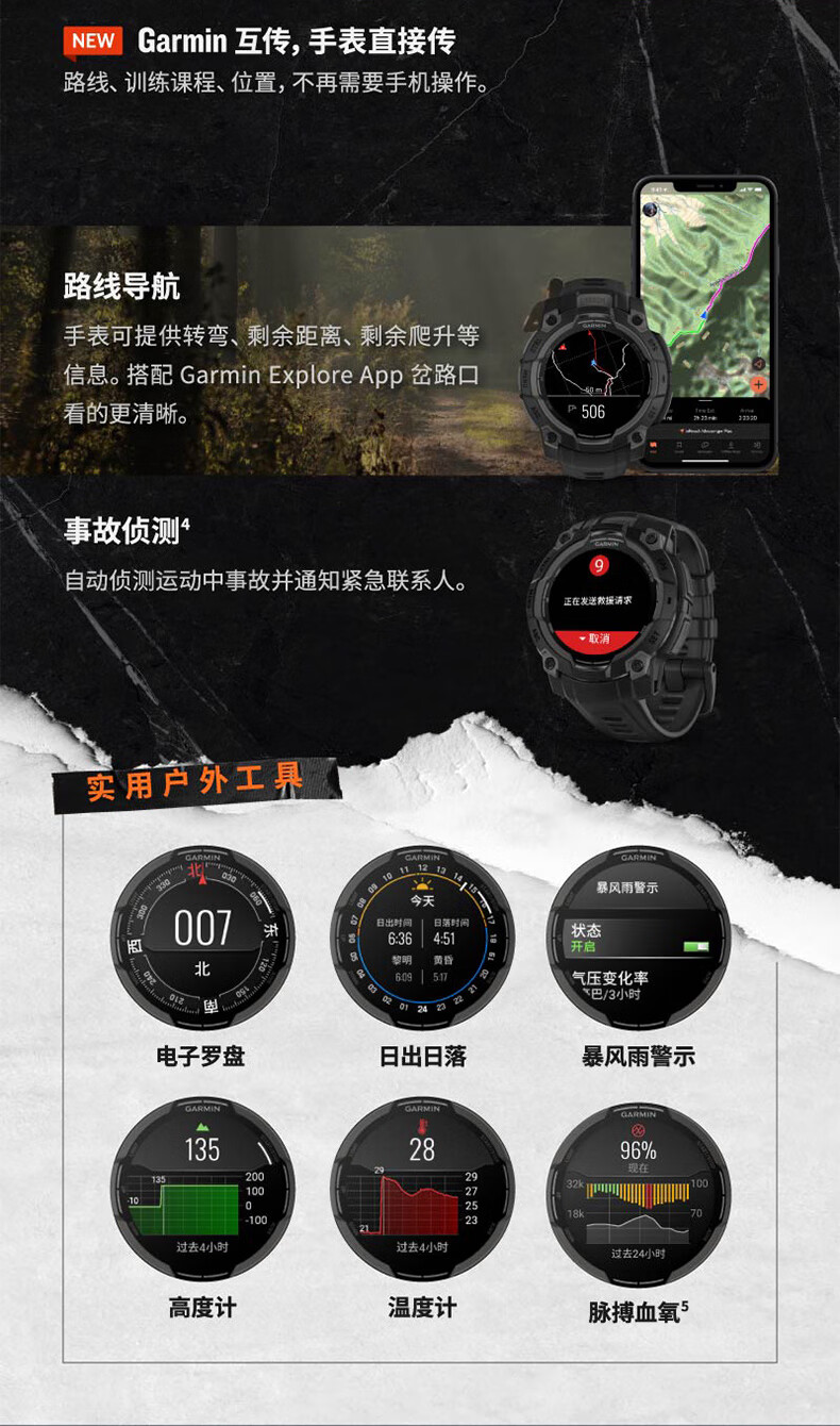 佳明(GARMIN)本能Instinct3战术版太阳能50mm户外探险GPS定位运动运动智能手表