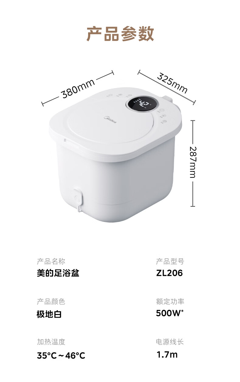 美的(Midea)泡脚桶电动按摩足浴盆加热恒温足疗按摩器洗脚盆熏泡按摩生日送长辈父母女友实用新年礼物ZL206
