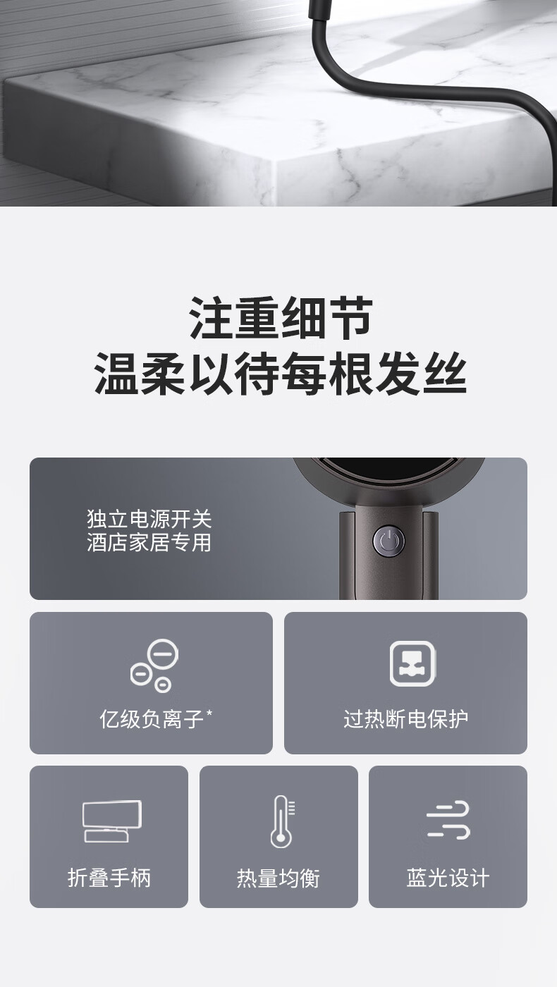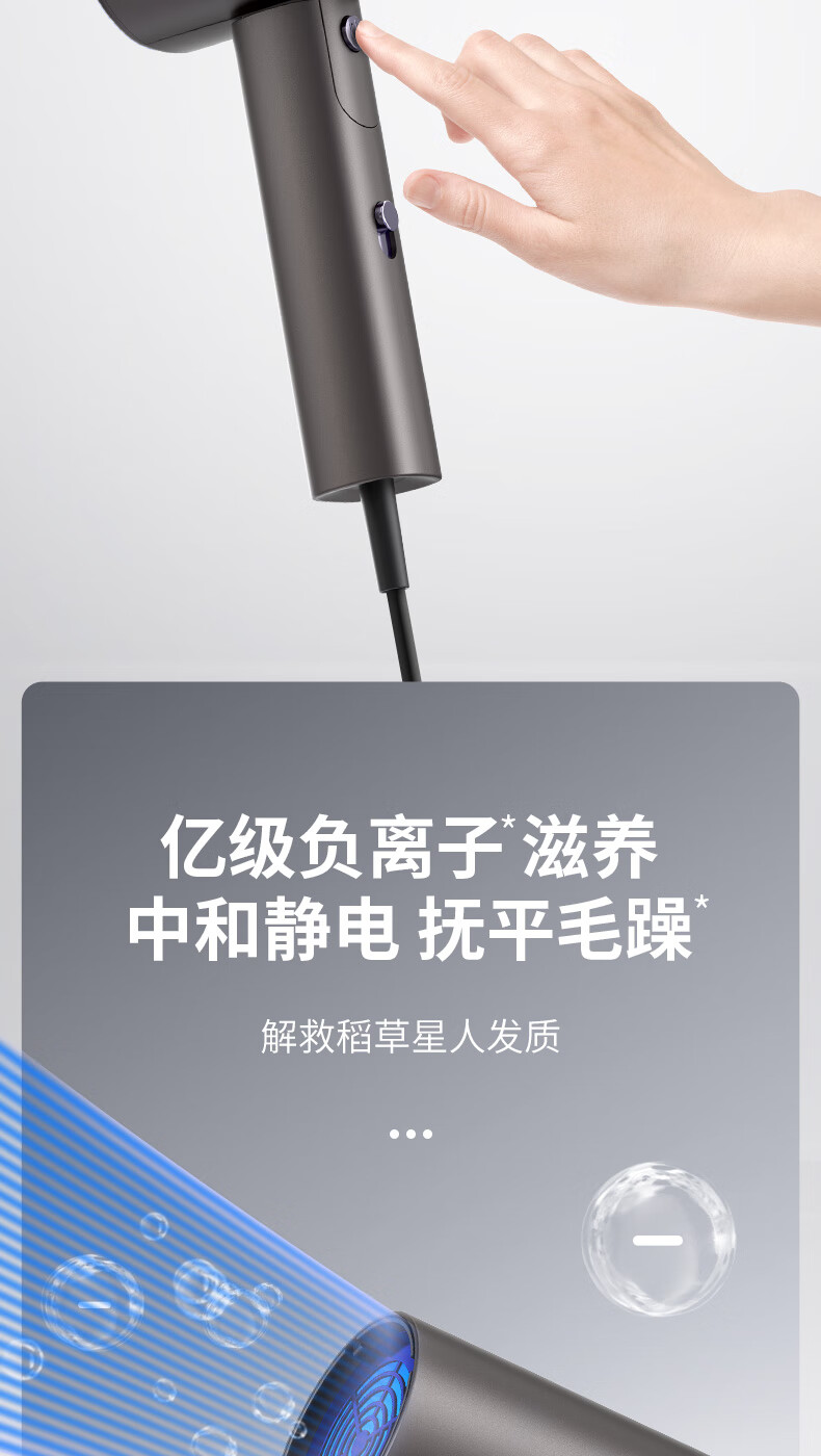 小米宝宝系列吹风机静音发廊负离子家用大功率不伤发宿舍 渐变粉【1800W】大风力+双层隔热
