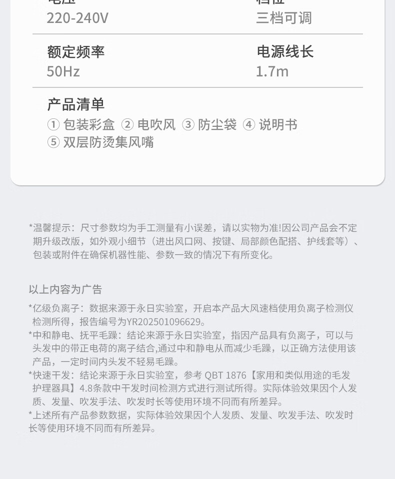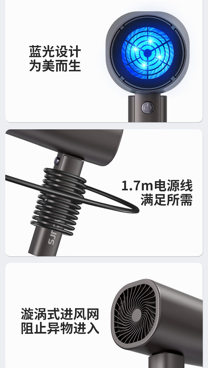 【严选】吹风机蓝光负离子家用发廊宿舍吹风筒电吹风 T1-珍珠白【带蓝光】 (1个装) 中规-220V【国内使用】