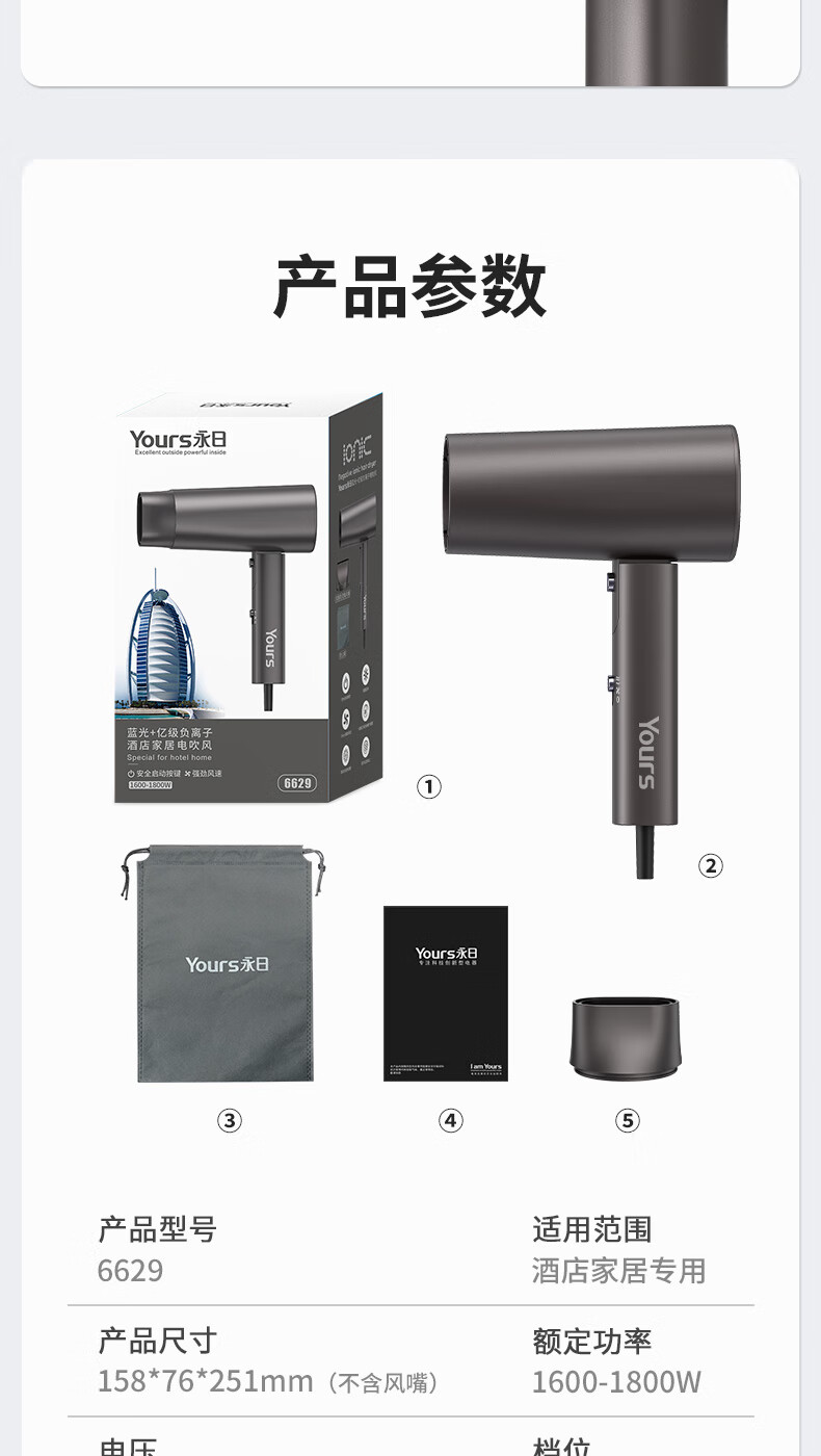 永日(yongri) 网红款1800W家用大风力吹风机旅游便携折叠电吹风机 冷热风速干吹风筒母亲节礼物 魅紫色