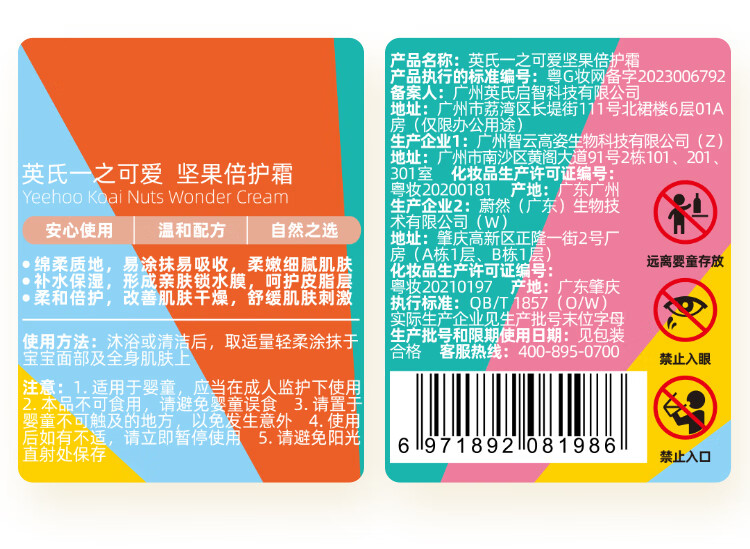 英氏(YEEHOO)坚果霜儿童面霜四季宝宝保湿霜滋润补水多效身体乳b 英氏坚果霜20g 20g